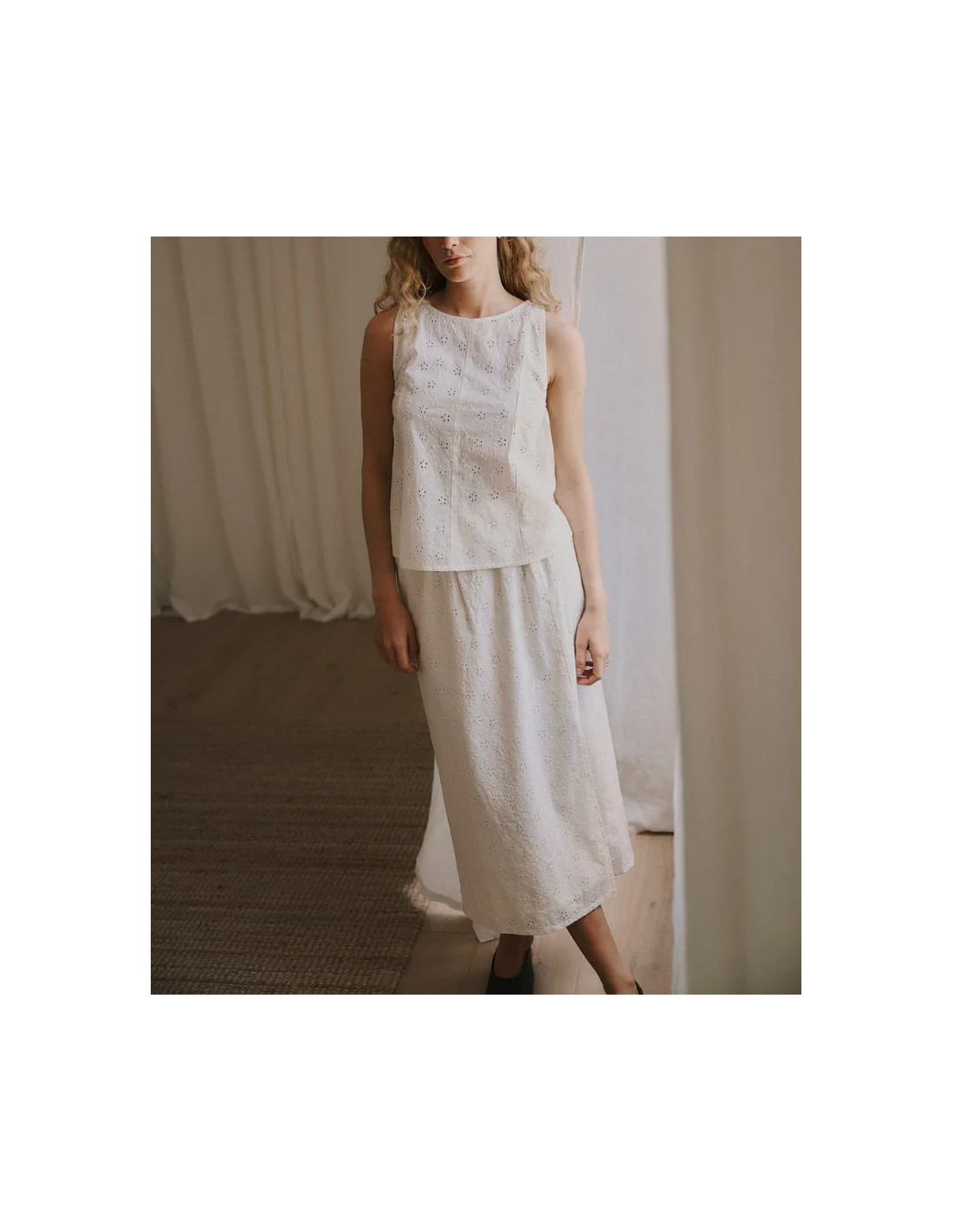 Débardeur en broderie anglaise écru