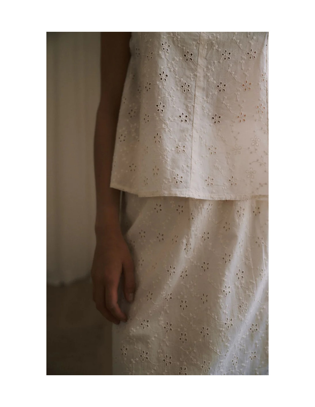 Jupe midi en broderie anglaise écru