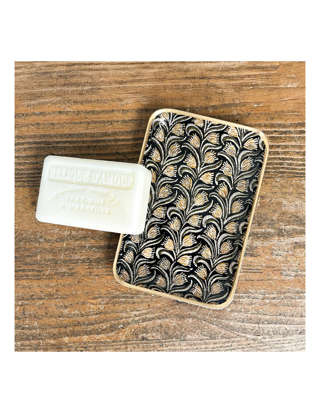 Plateau rectangulaire émaillé. Pour le service ou en déco, de jolis motifs inspirés des “block print” indiens. Imprimé Albizia.