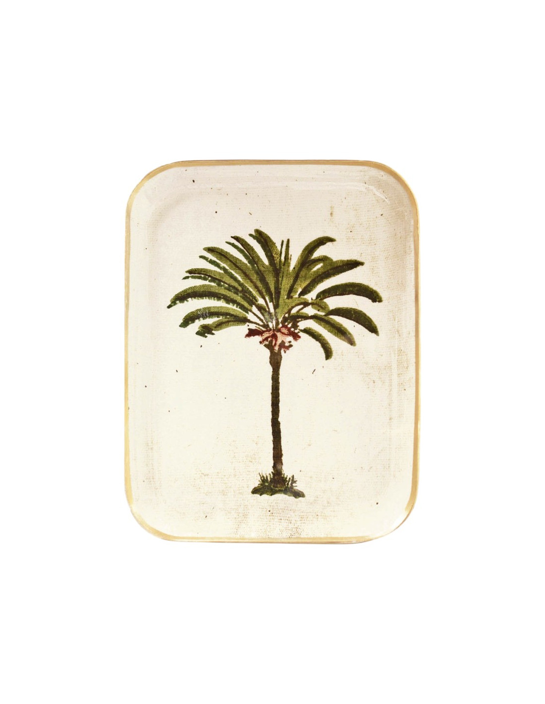 Plateau rectangulaire émaillé. Pour le service ou en déco, de jolis motifs inspirés des “block print” indiens. Imprimé Palmier.