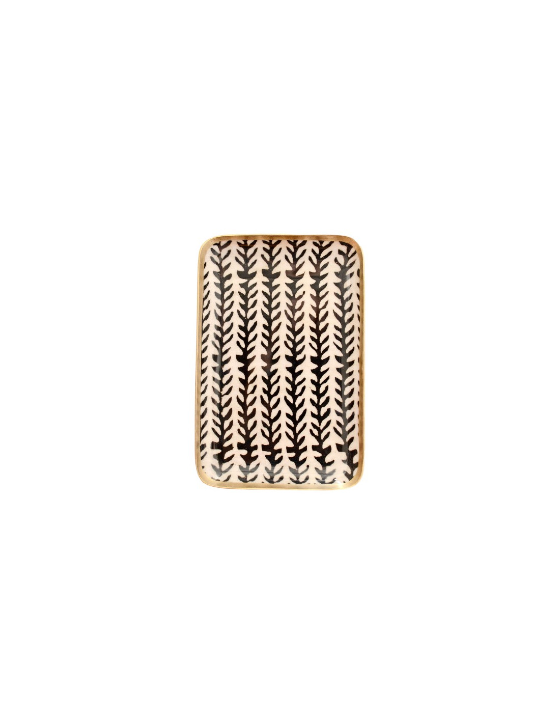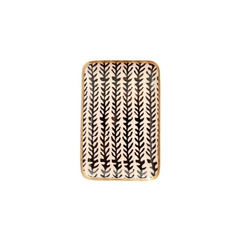 Plateau rectangulaire émaillé. Pour le service ou en déco, de jolis motifs inspirés des “block print” indiens. Imprimé Epine.