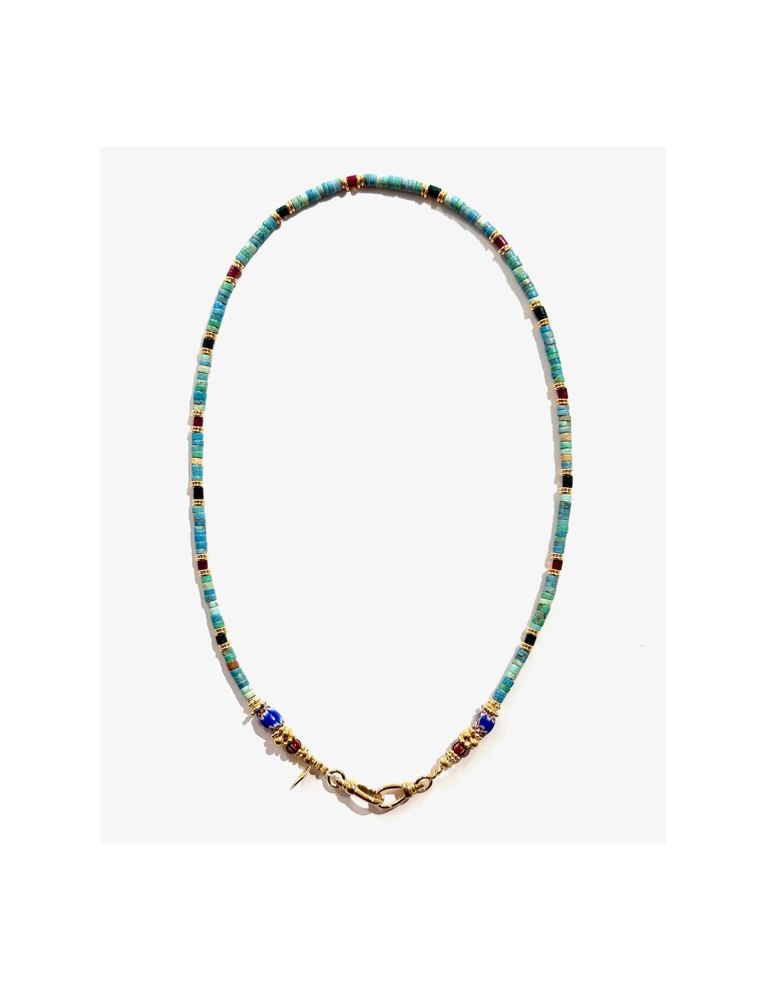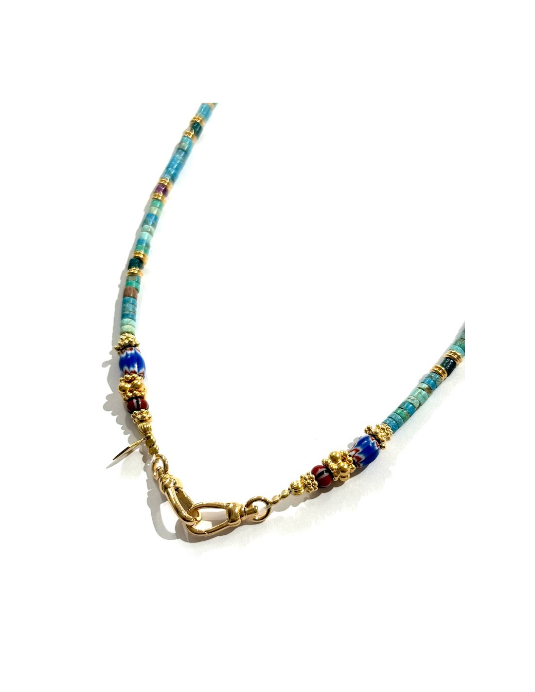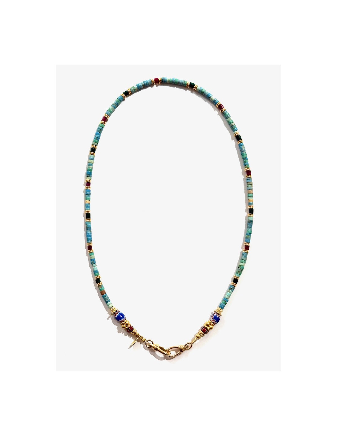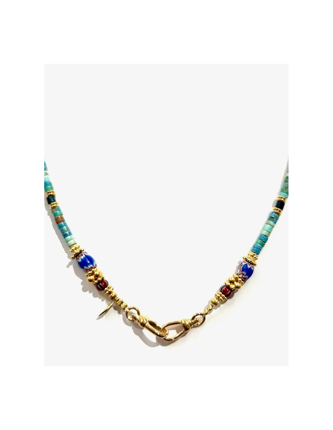 Collier serti d'un mélange de différentes turquoises, plaqué or 18 carats.