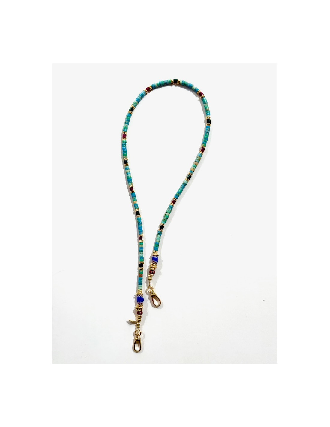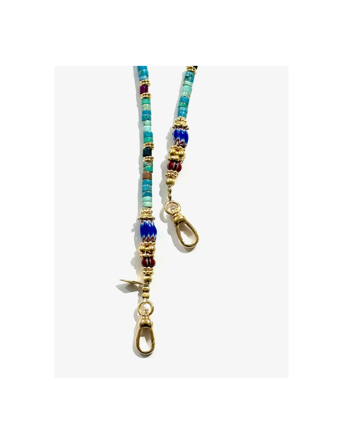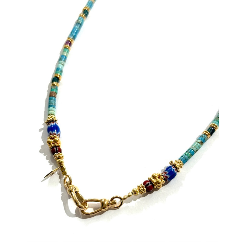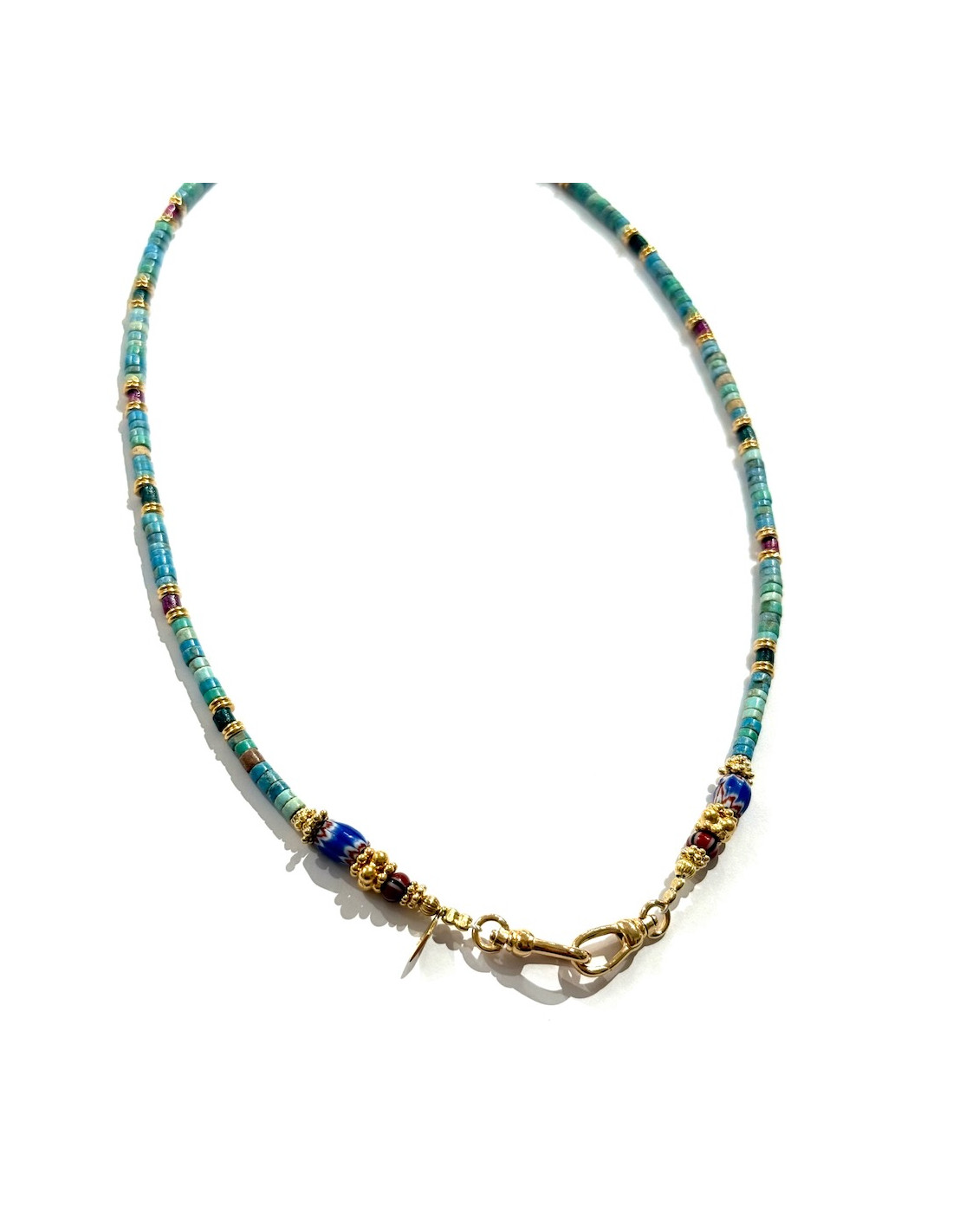 Collier serti d'un mélange de différentes turquoises, plaqué or 18 carats.