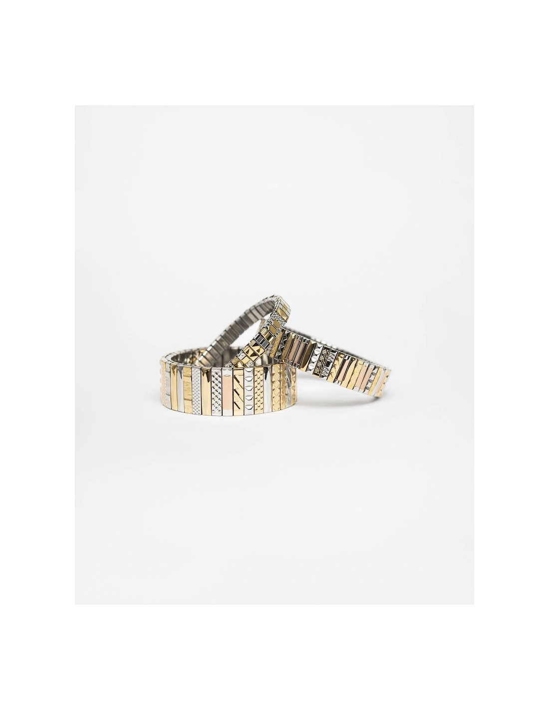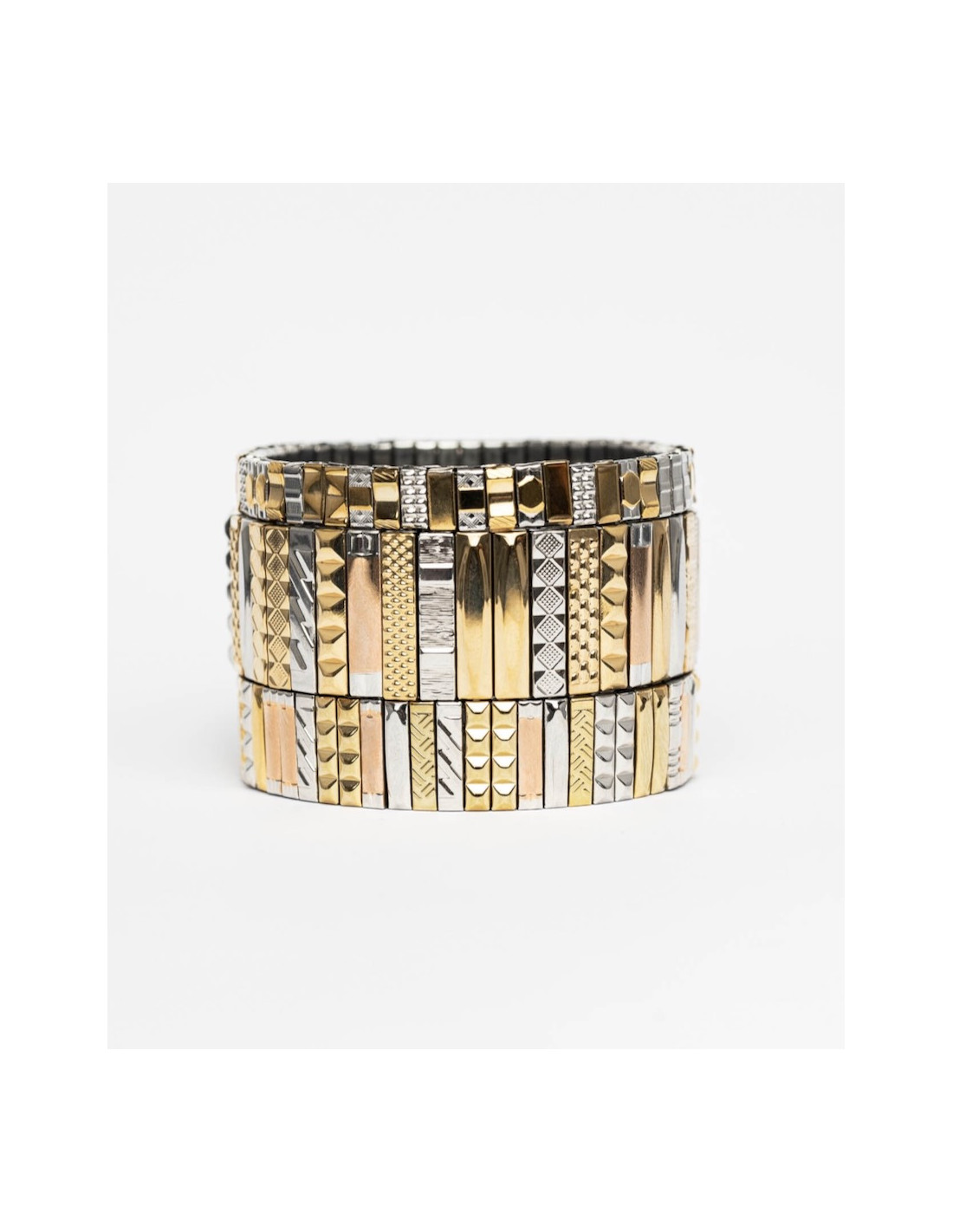 Chaque bracelet est fabriqué avec une méthode d'assemblage pointilleuse, avec un mélange de maillons dorés et de maillons argentés.