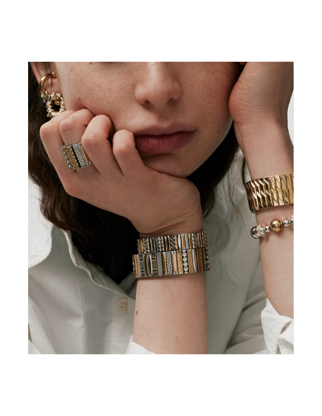 Le bracelet SIG 12 Gold and Silver est un iconique de la marque Sigal. C'est un bracelet composé de maillons de montre.