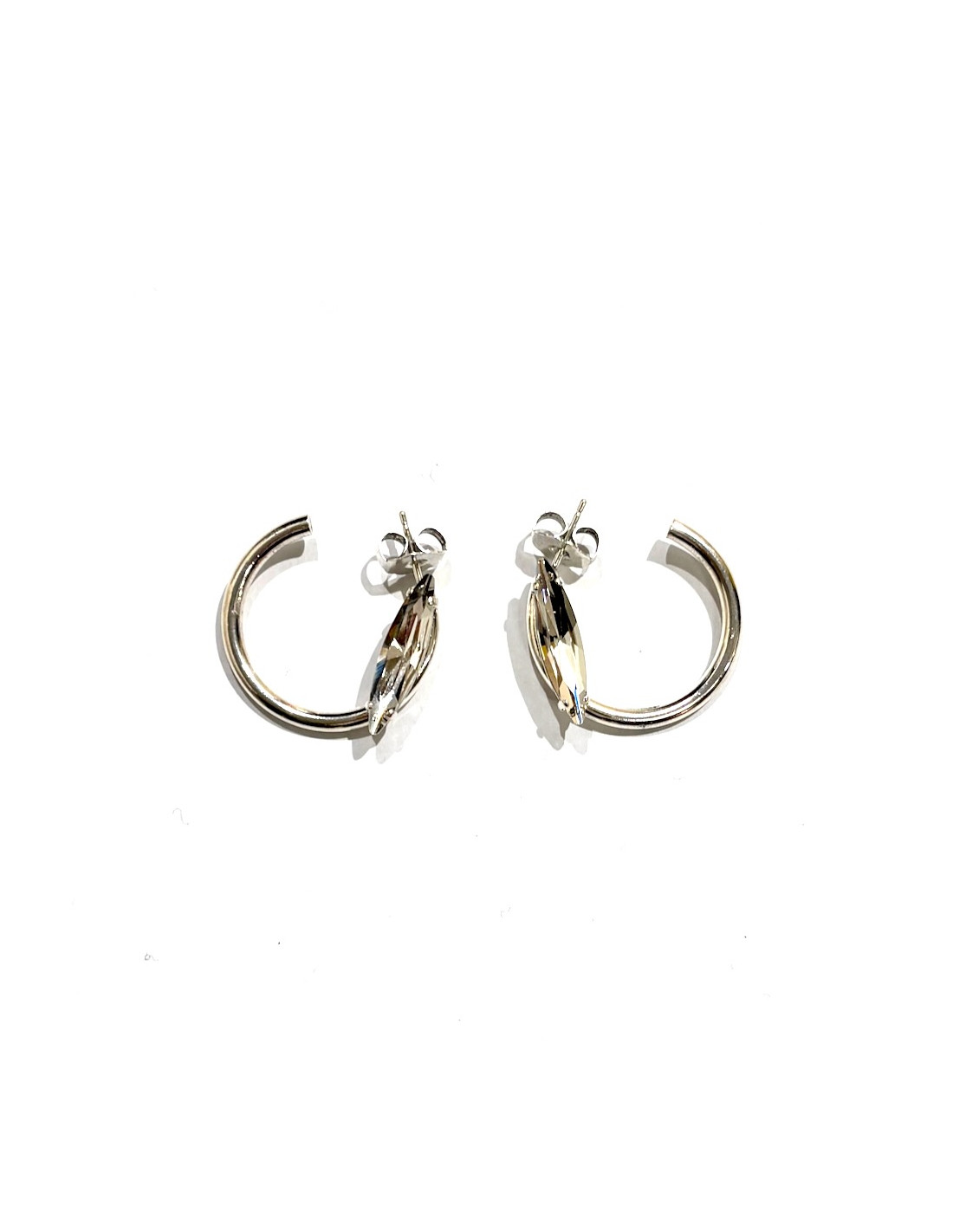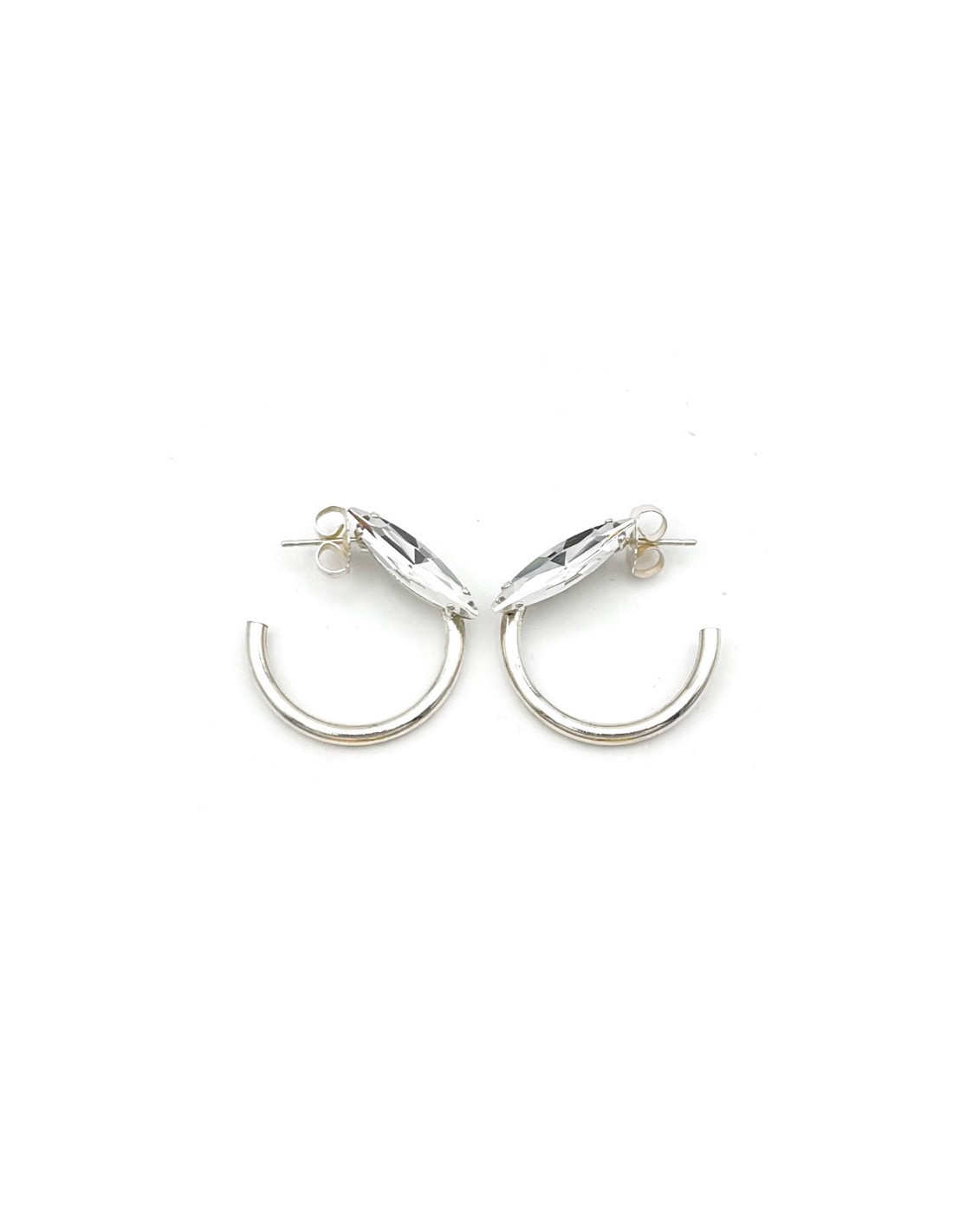 Boucles d'oreille creoles en laiton plaqué argent et cristal