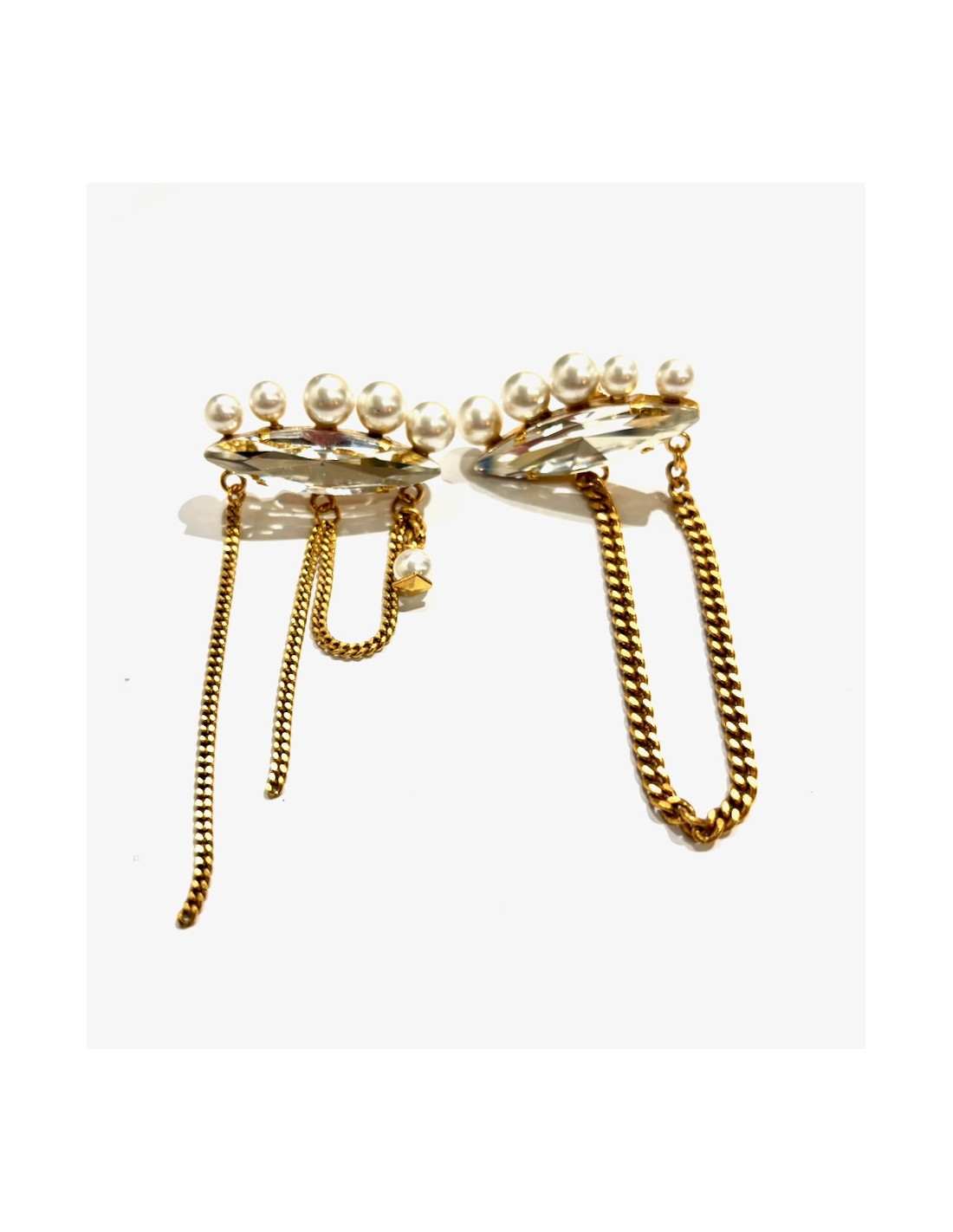 Boucles d'oreille en laiton plaqué or, perles et cristal