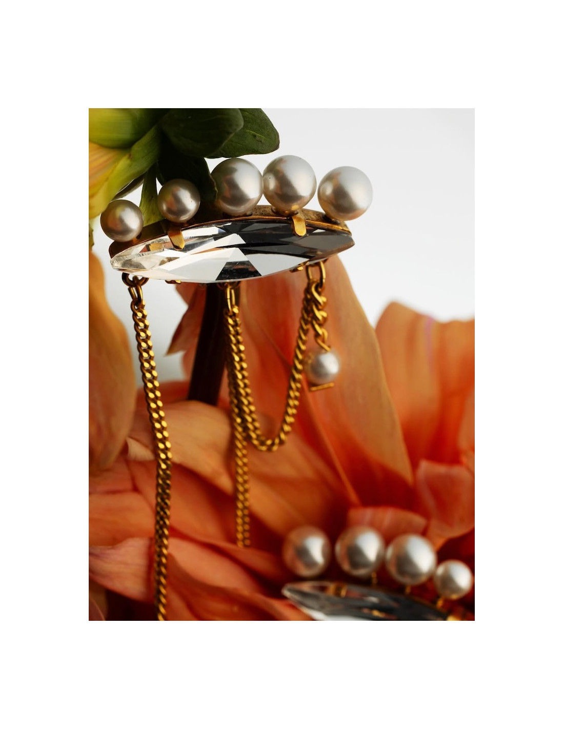 Boucles d'oreilles ornées d'une navette en cristal et de perles