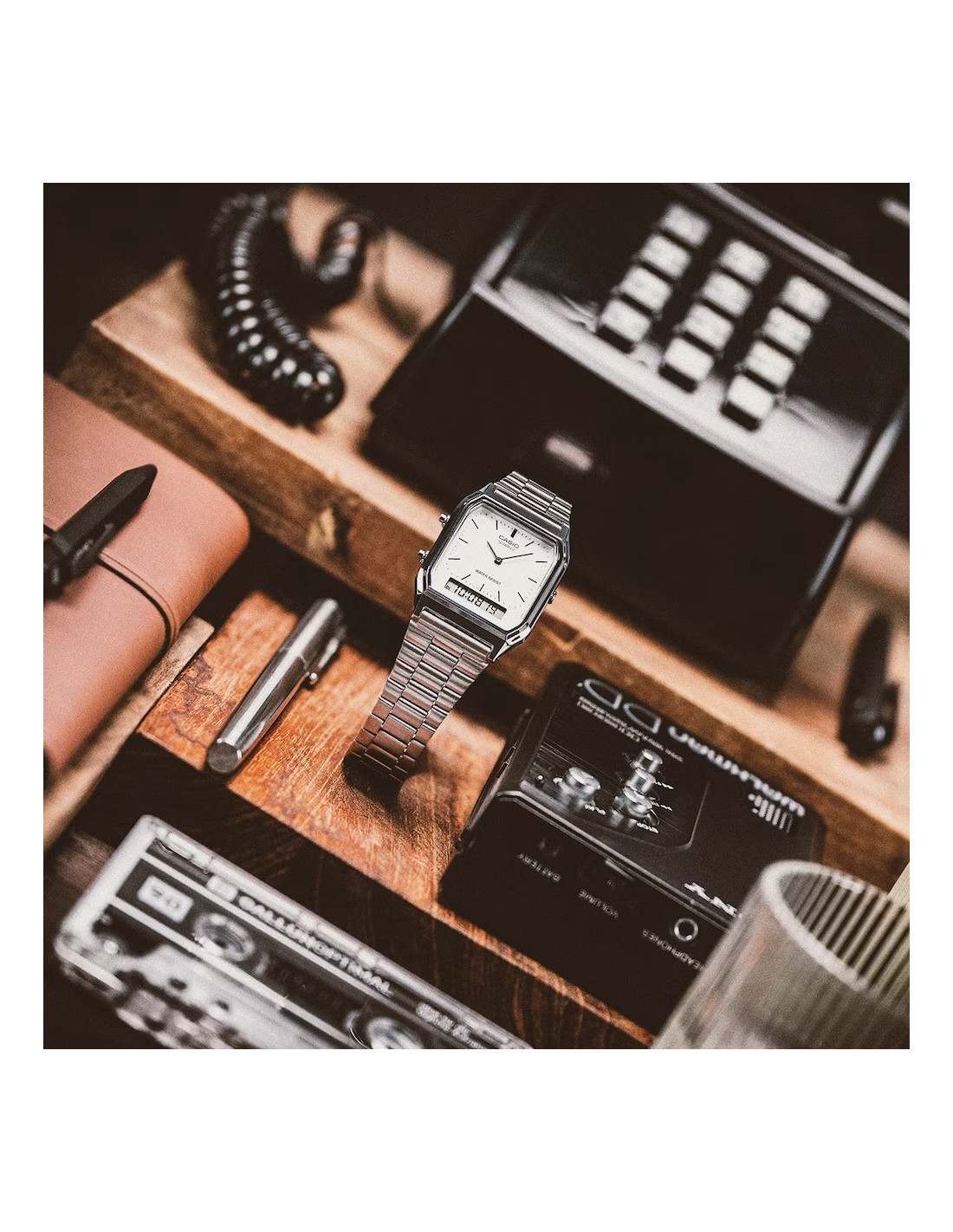 Seconde heure • Chronomètre à 1/100e de seconde • Affichage du jour et de la date à 6 heures