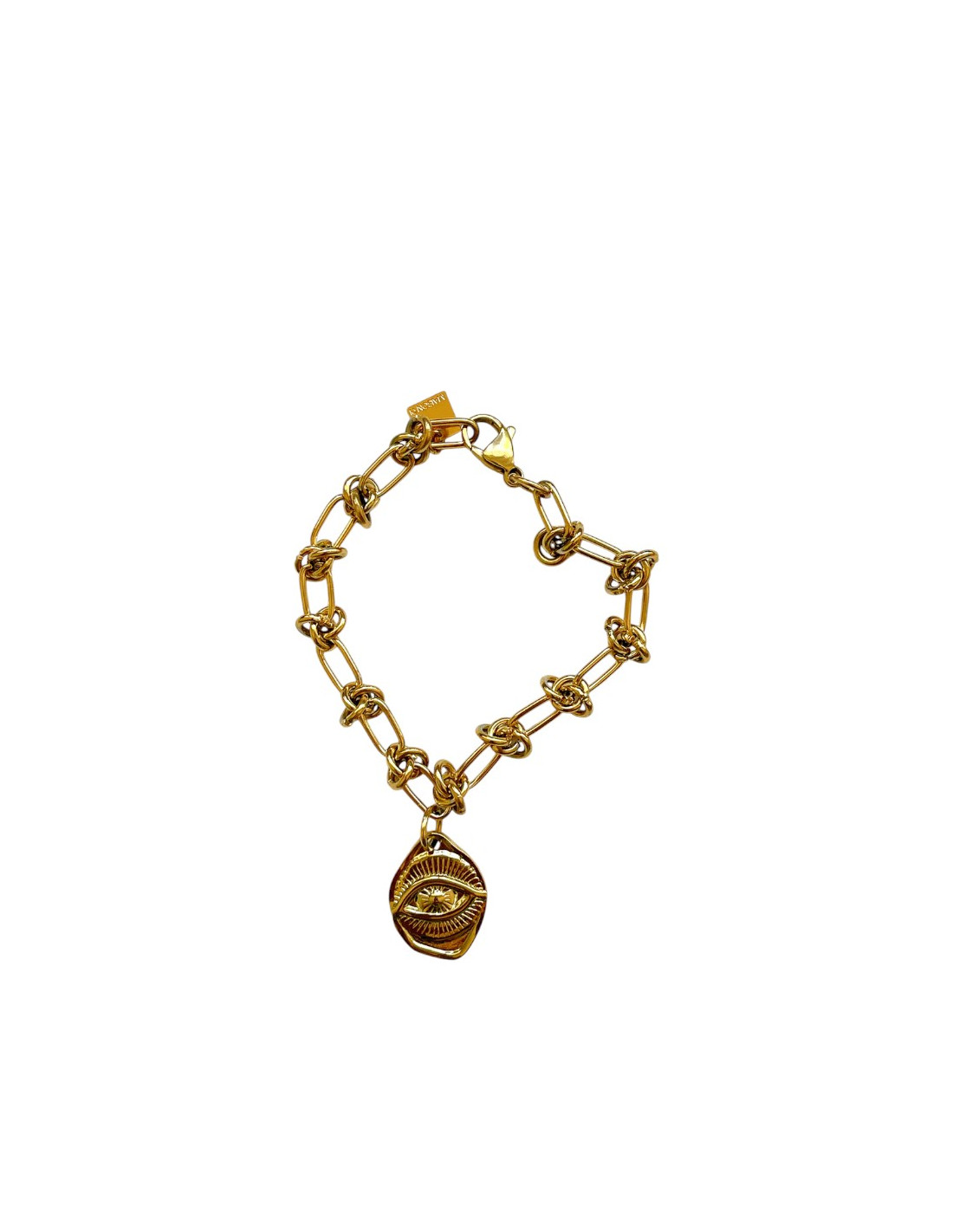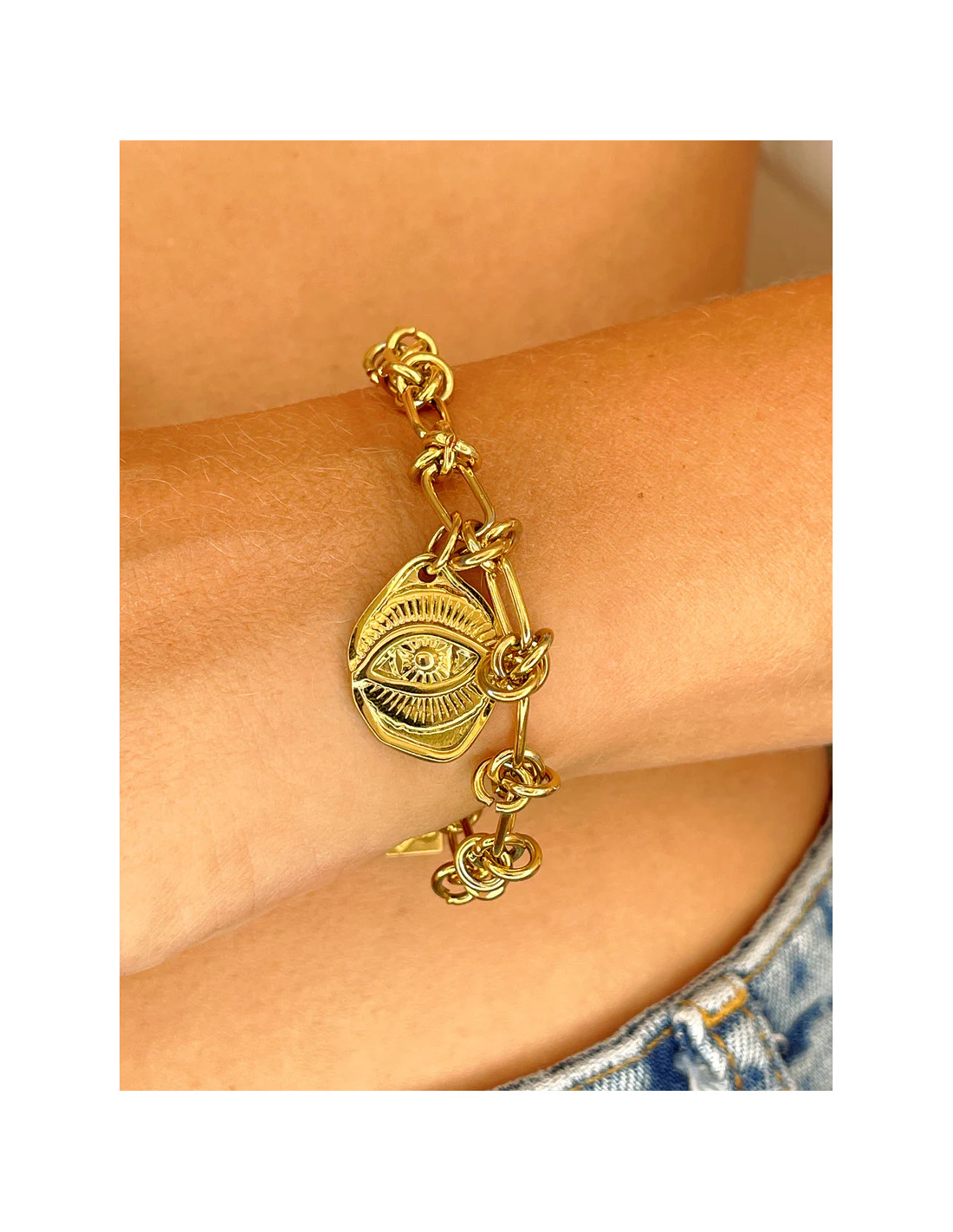 Bracelet oeil protecteur sur chaîne dorée en maillons XXL en forme de noeuds