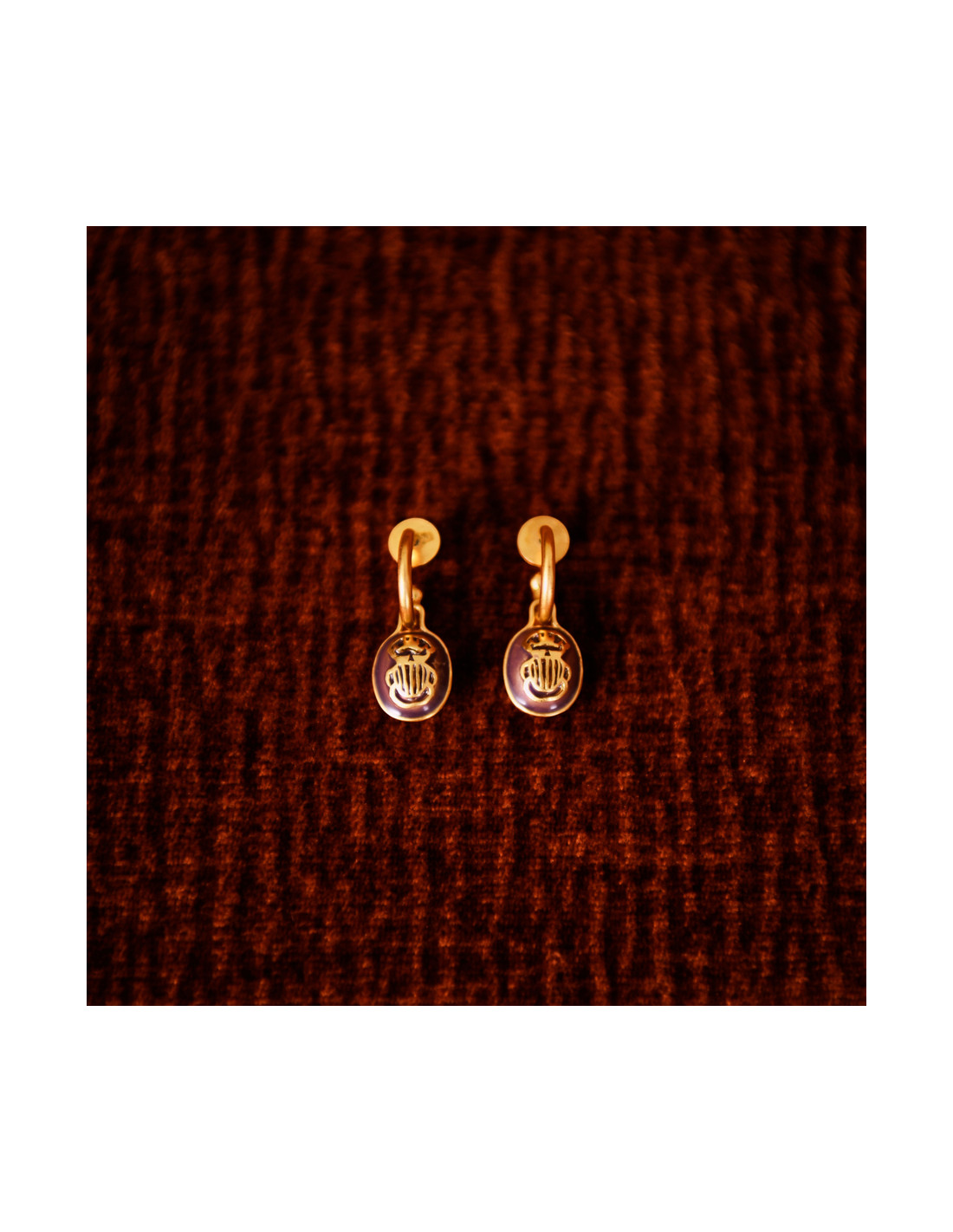 Boucles d'oreilles pendantes scarabée émaillées aubergine