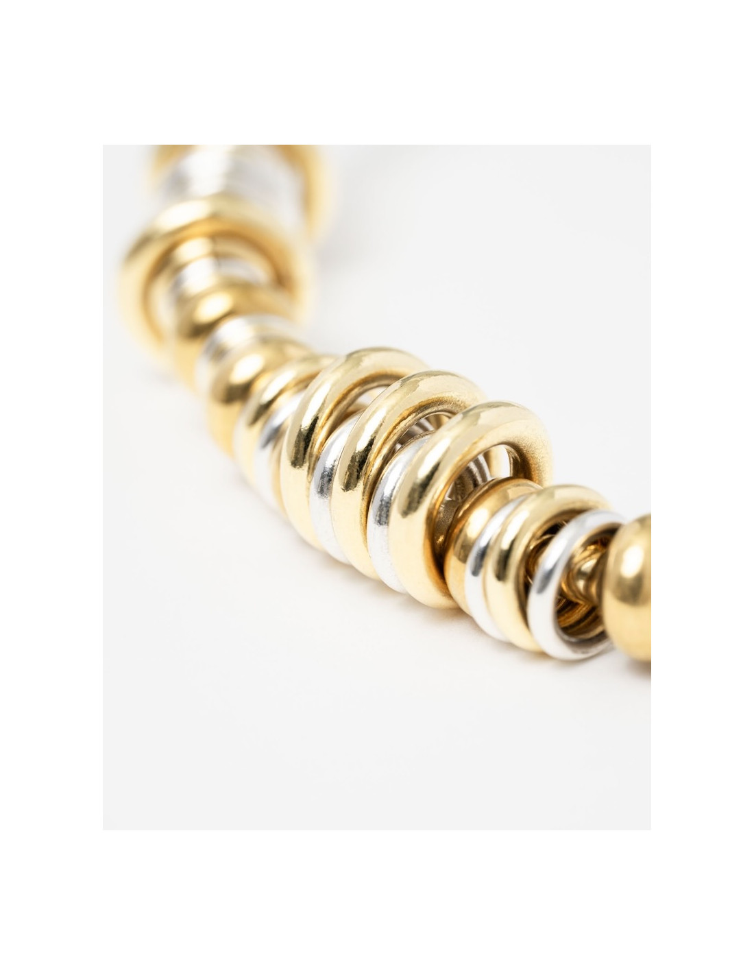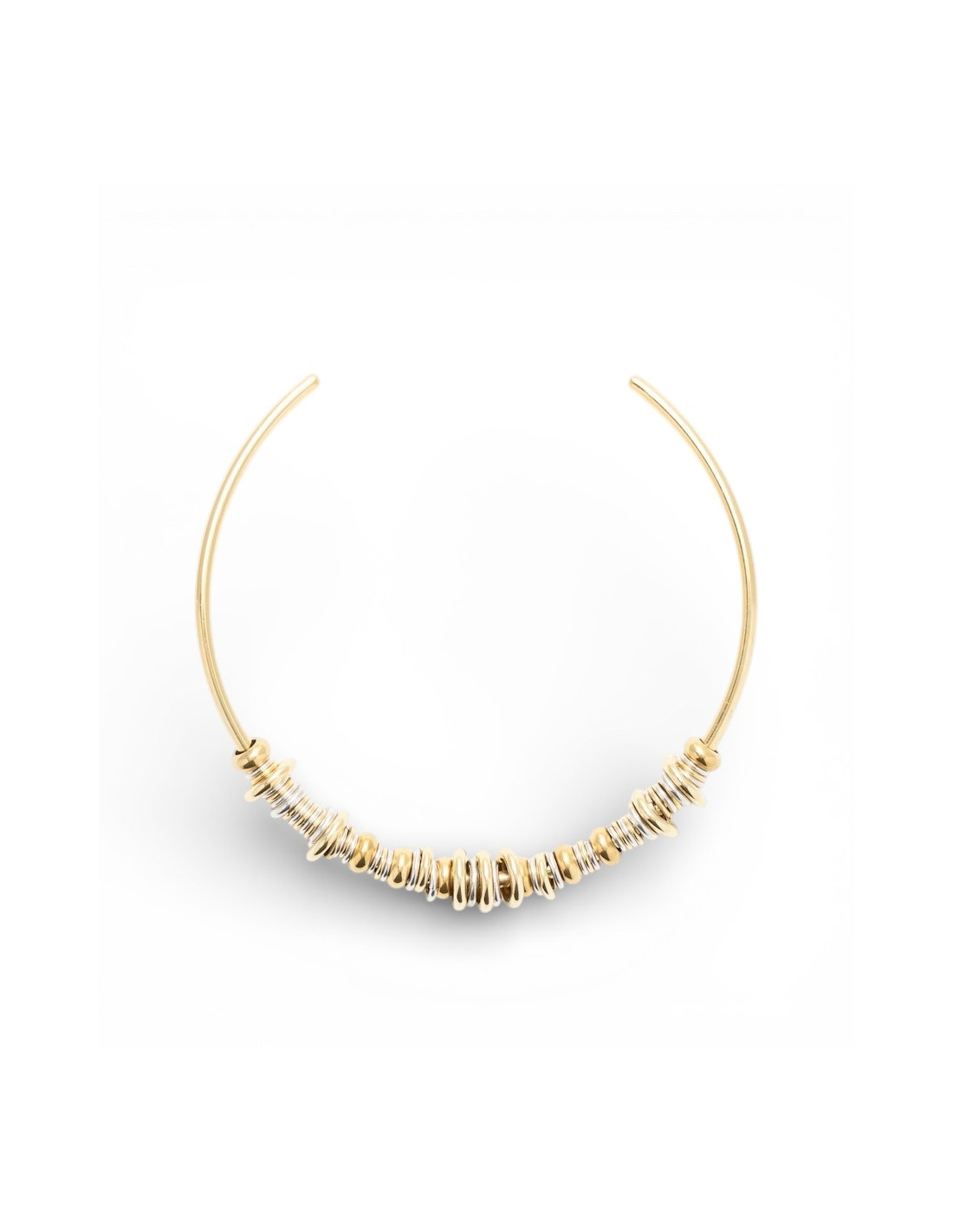 Collier torque en plaqué or, composé anneaux dorés et argentés.