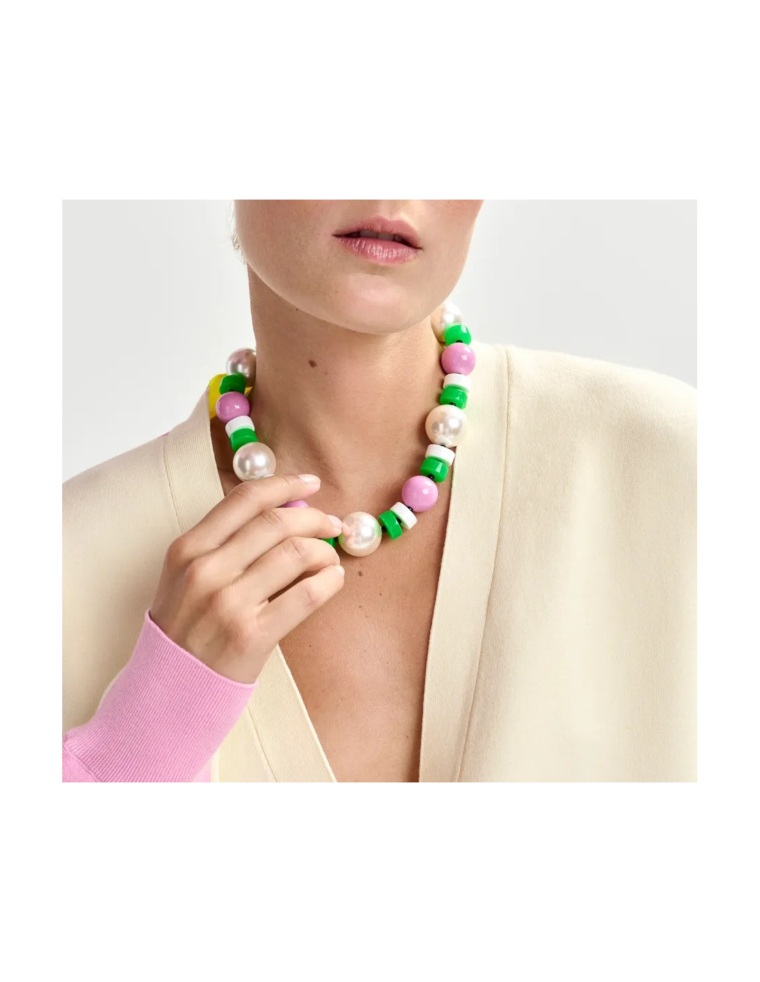 Collier composé de perles en résine brillante de couleurs vives et nacrées.