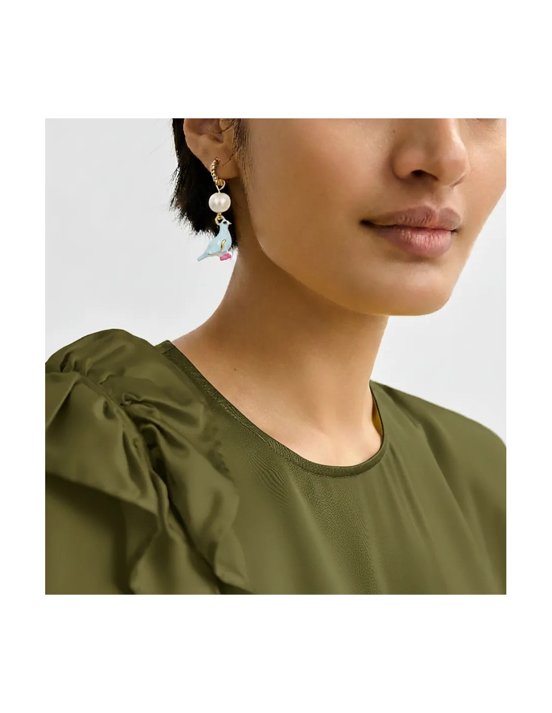 Boucle d'oreilles avec oiseau bleu et lèvres jaunes