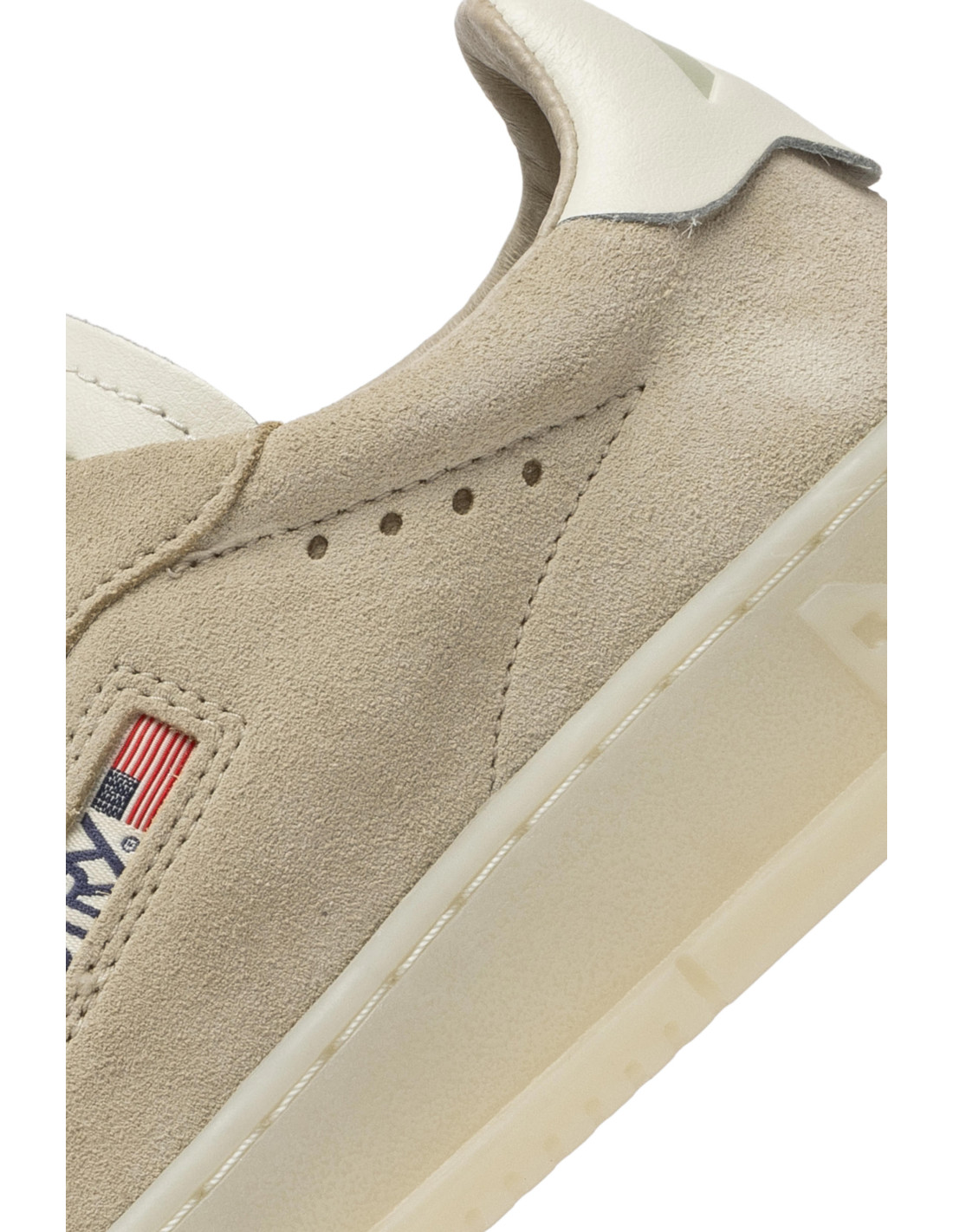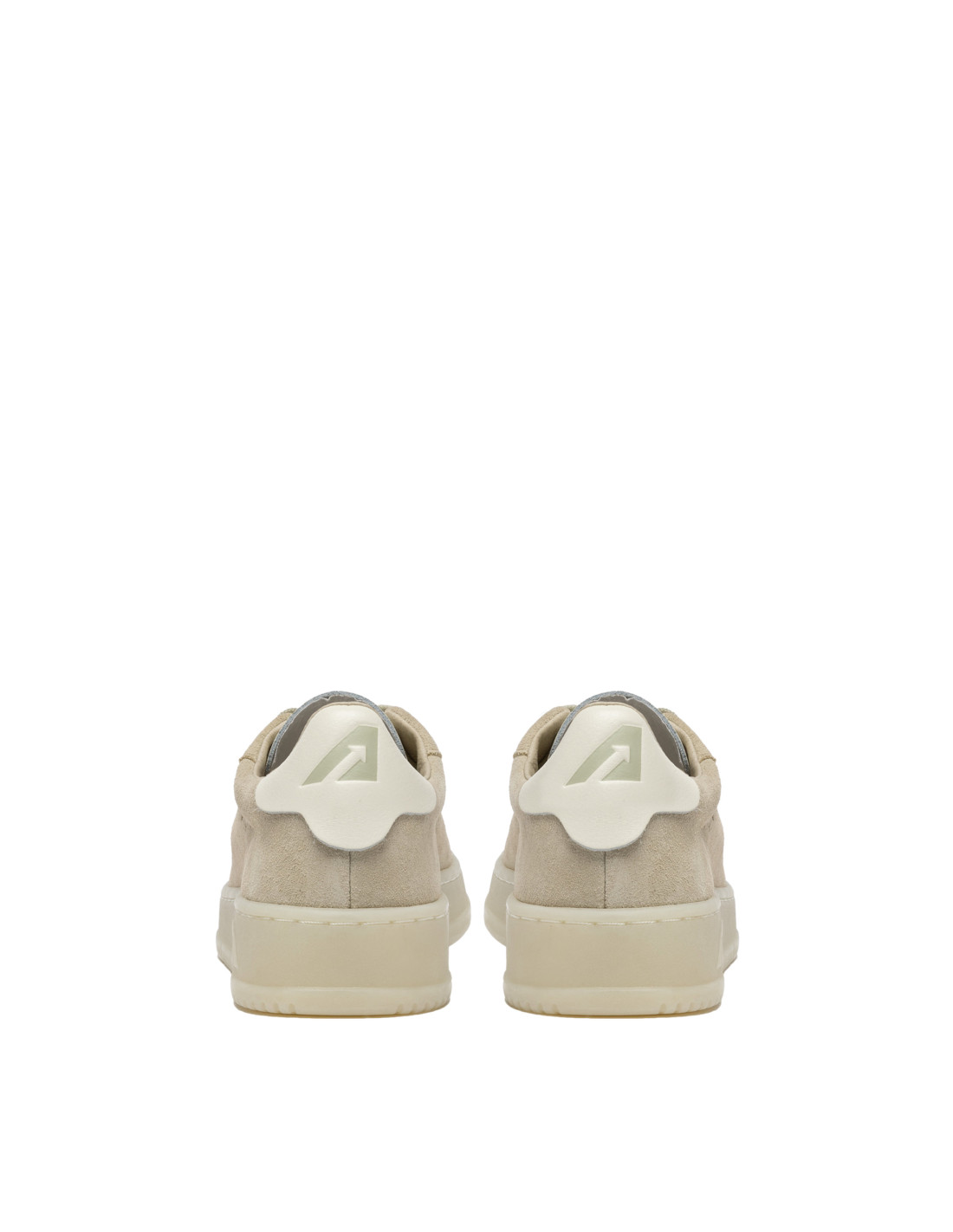Tige en cuir suède beige avec insert logo et talon arrière avec logo embossé.