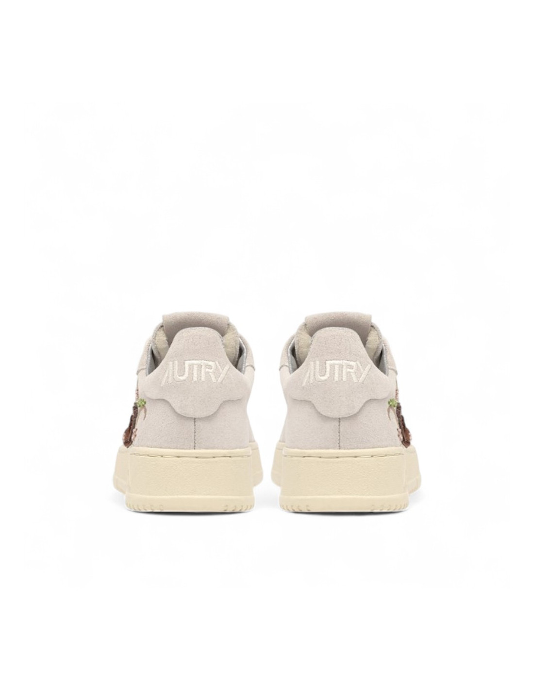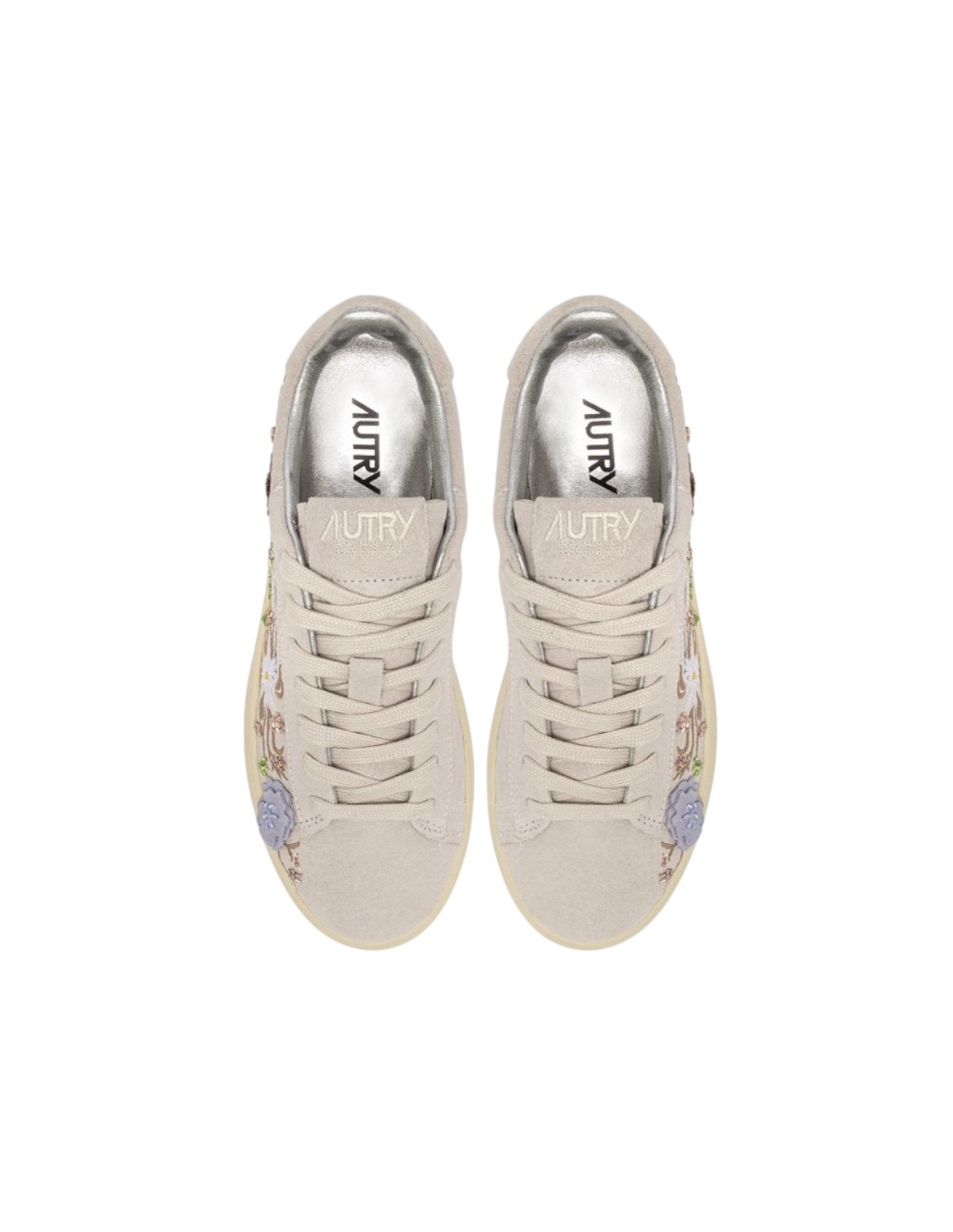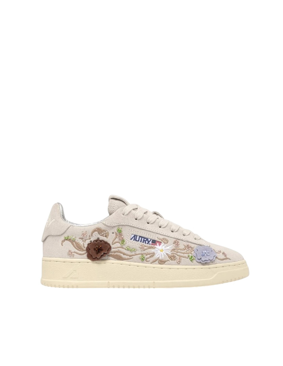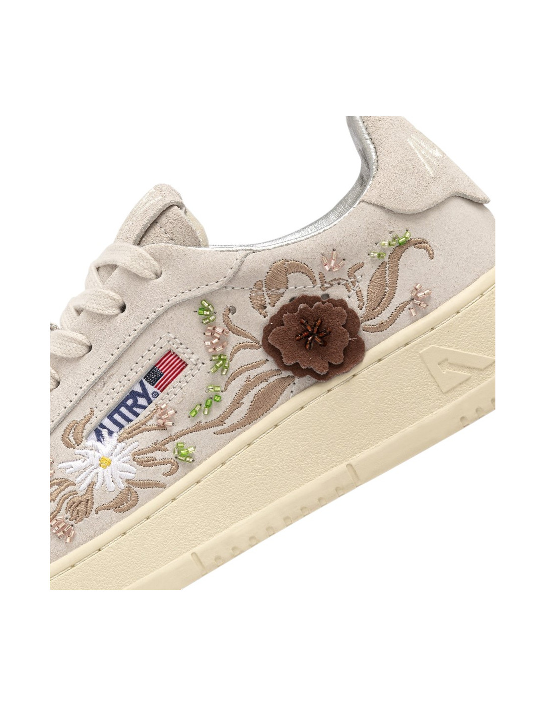 Baskets basses en cuir suede beige brodé ADLW-EY02