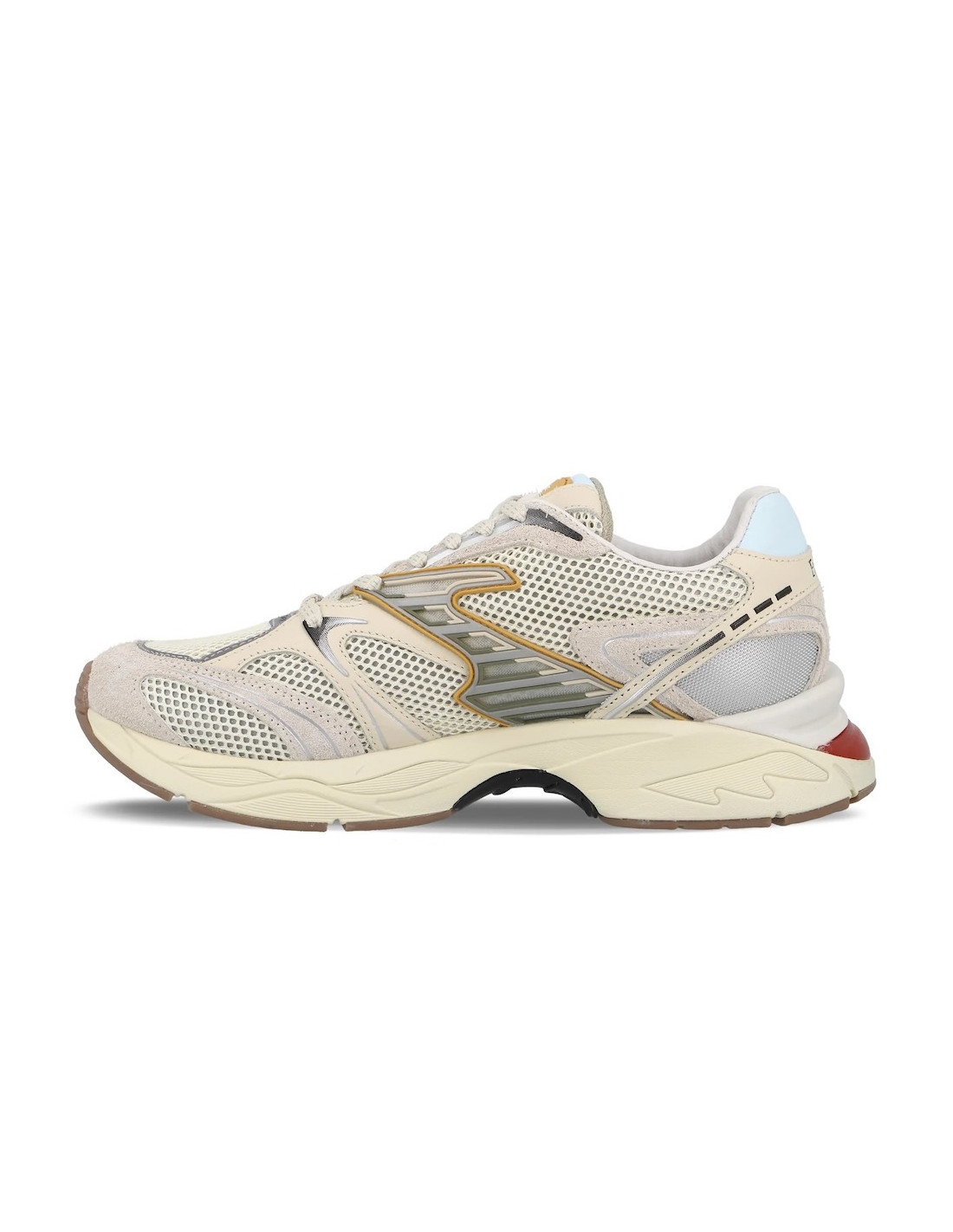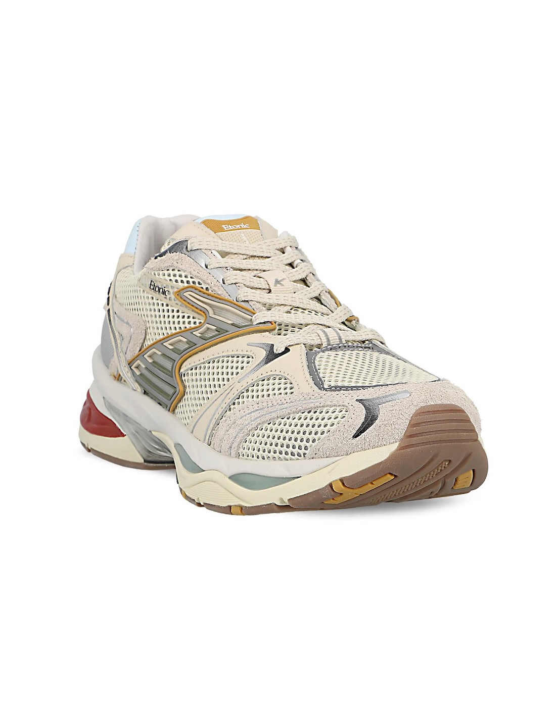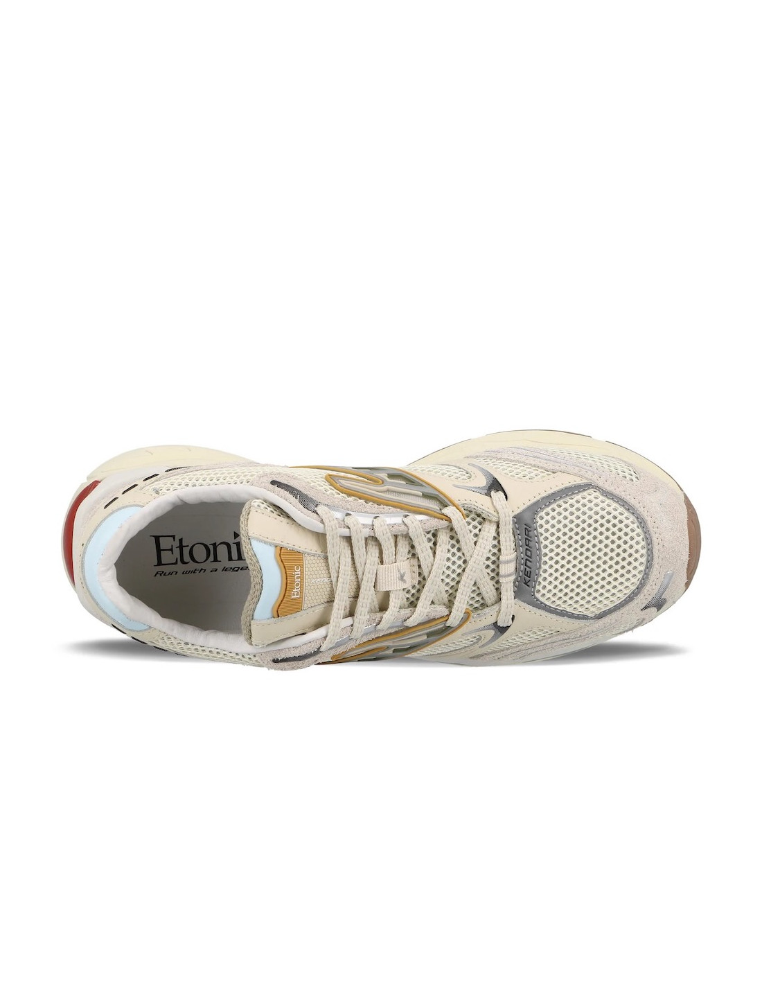 Baskets Etonic Kendari 3.0 en mesh écru, cuir ecru et beige, lacets beiges, détails rouges et or.