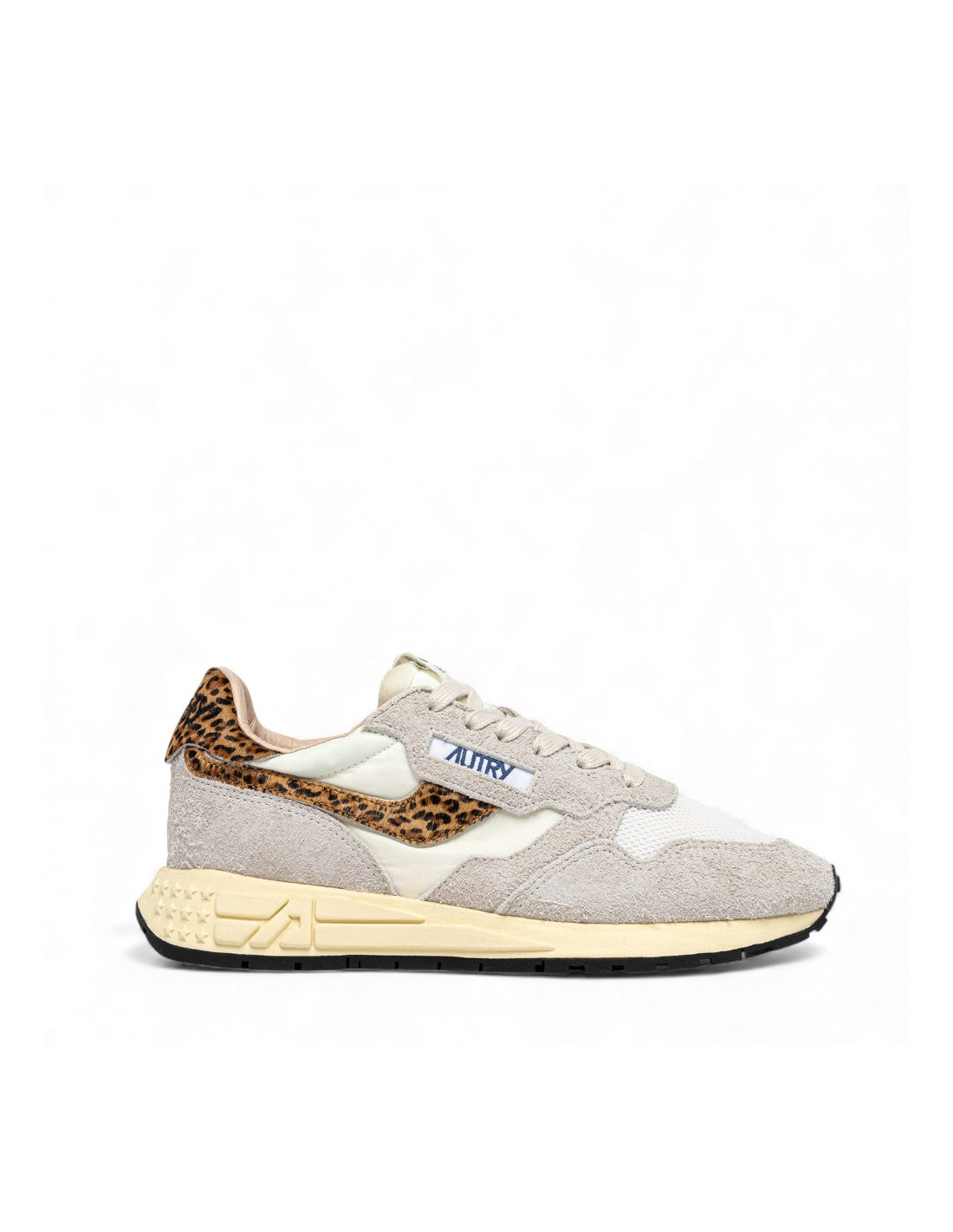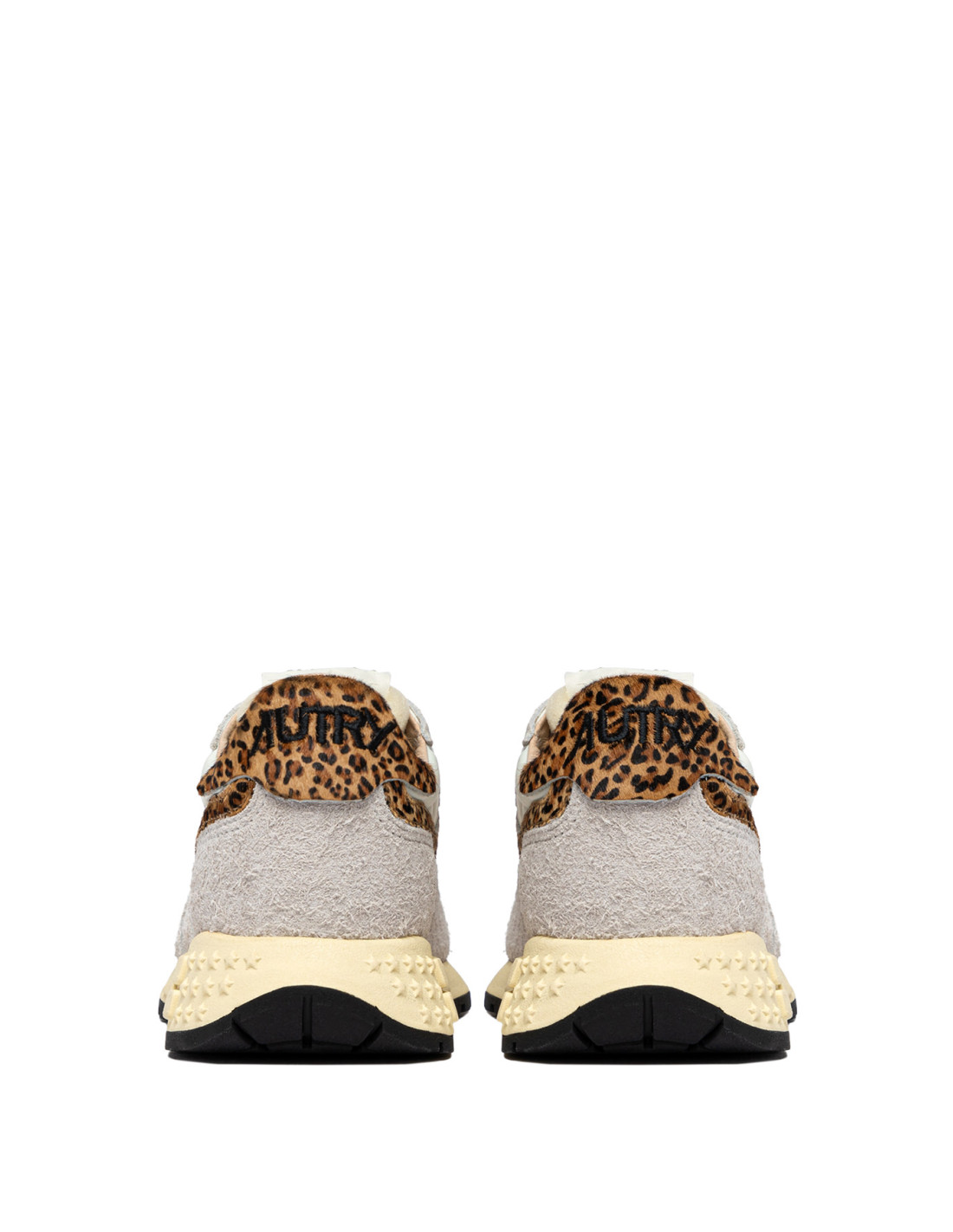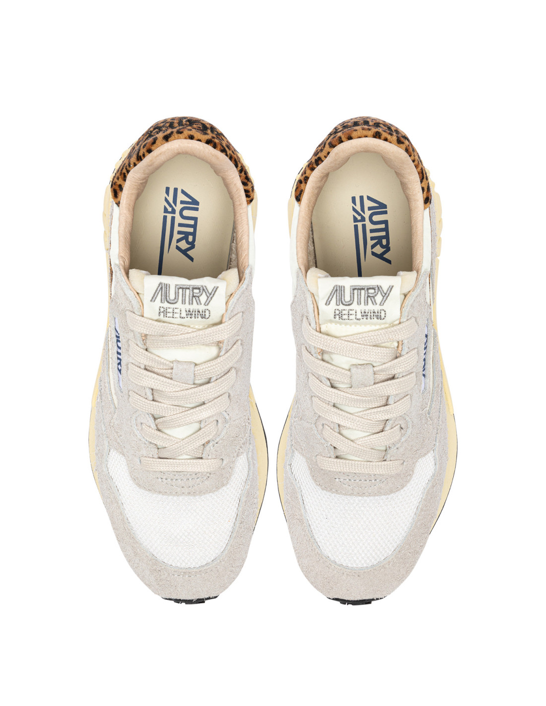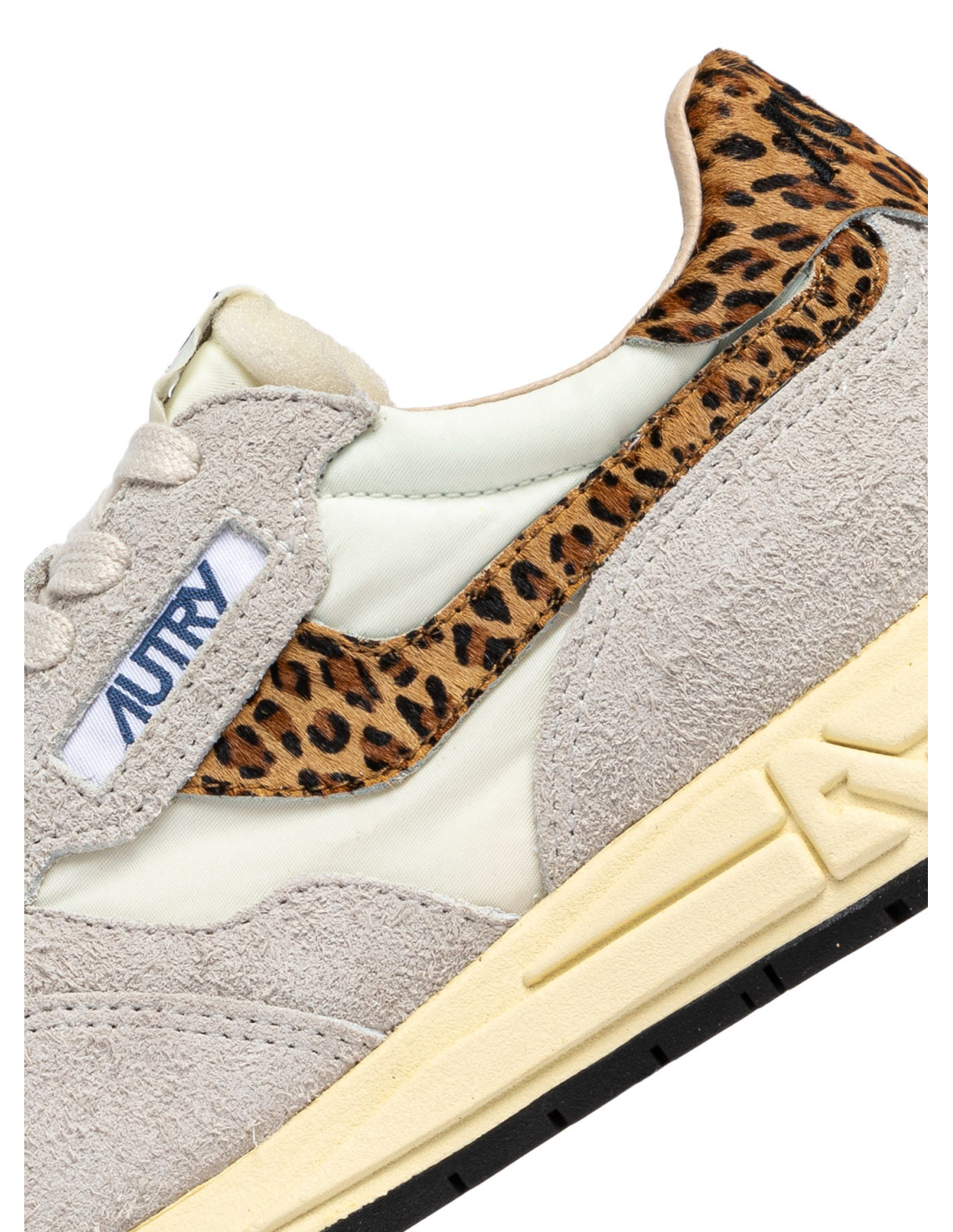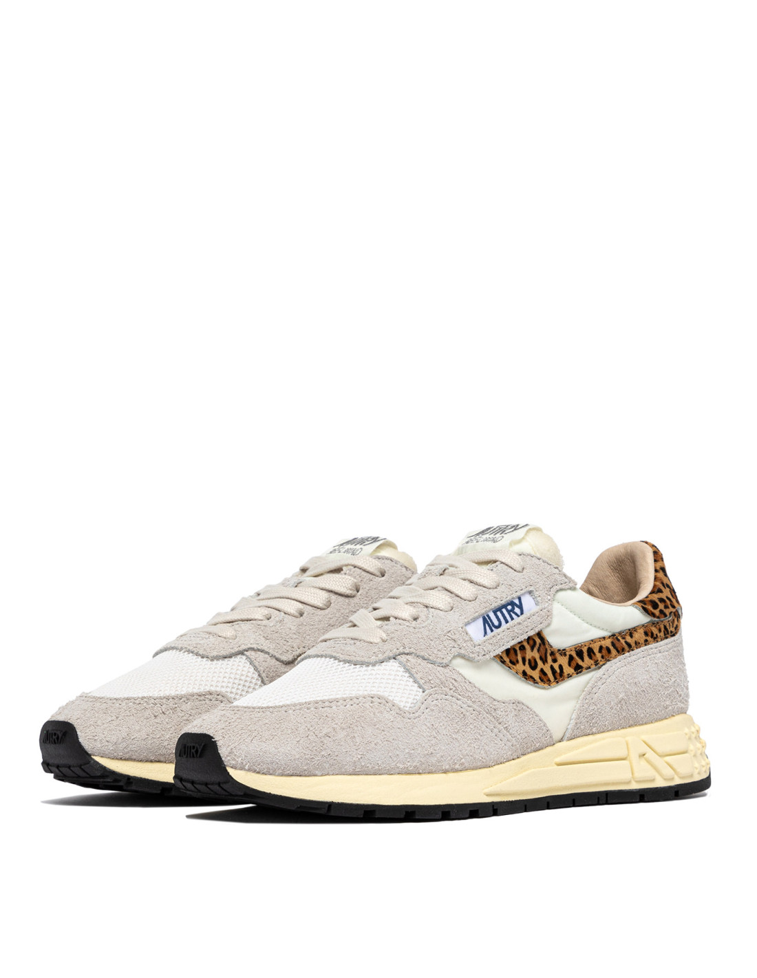 Innovantes, légères et d'une extrême souplesse, la sneakers Reelwind Autry s'inspire du monde du running. Le modèle est realisé dans une combinaison de mesh blanc, de suède gris avec empiècements en cuir pony léopard