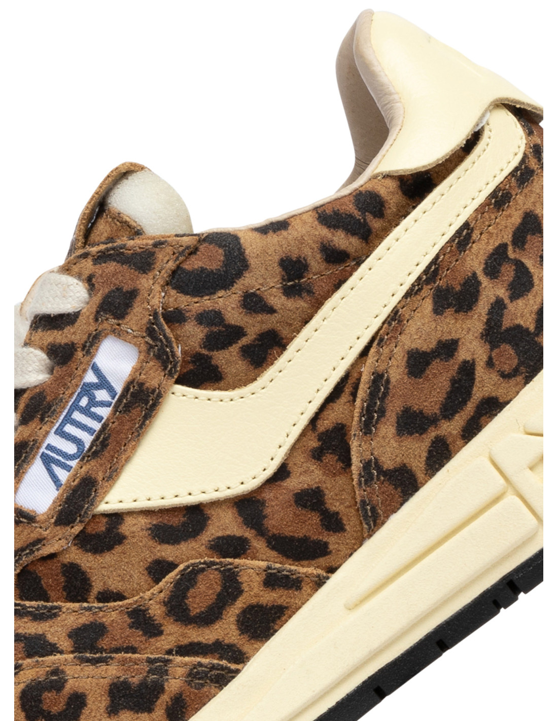 Innovantes, légères et d'une extrême souplesse, la sneakers Reelwind Autry s'inspire du monde du running. Le modèle est realisé dans une combinaison de cuir pony léopard et de cuir blanc avec logo embossé à l'arrière du talon