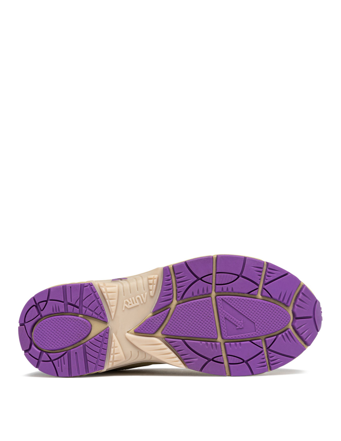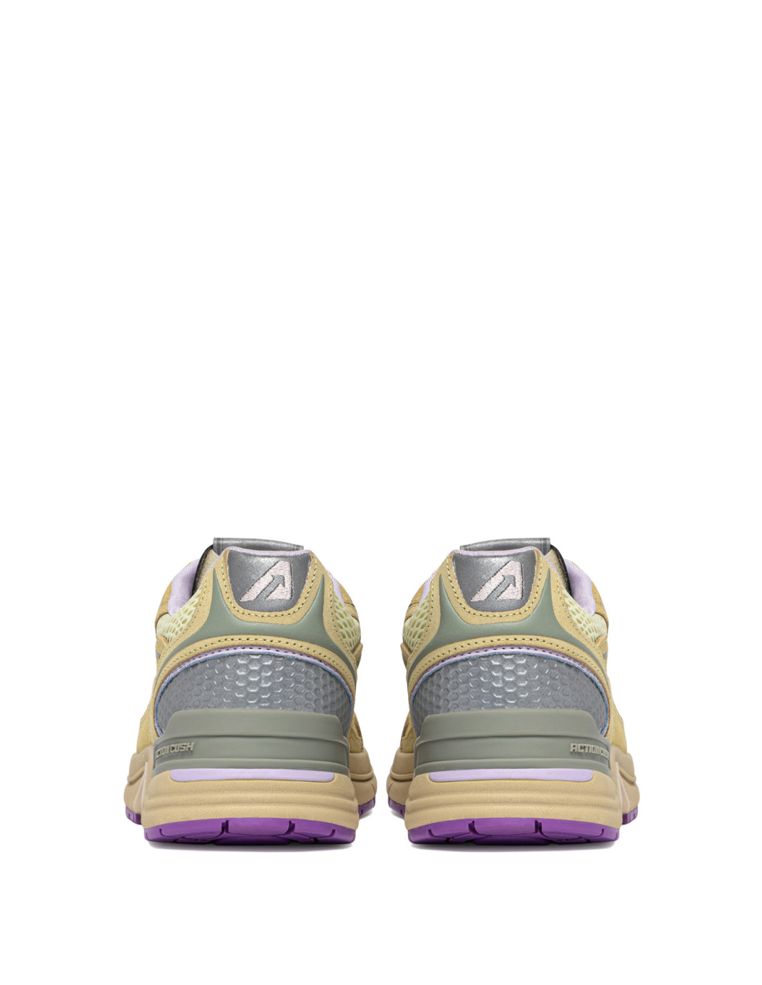 - Tige en daim et en mesh beige avec détails gris et violet