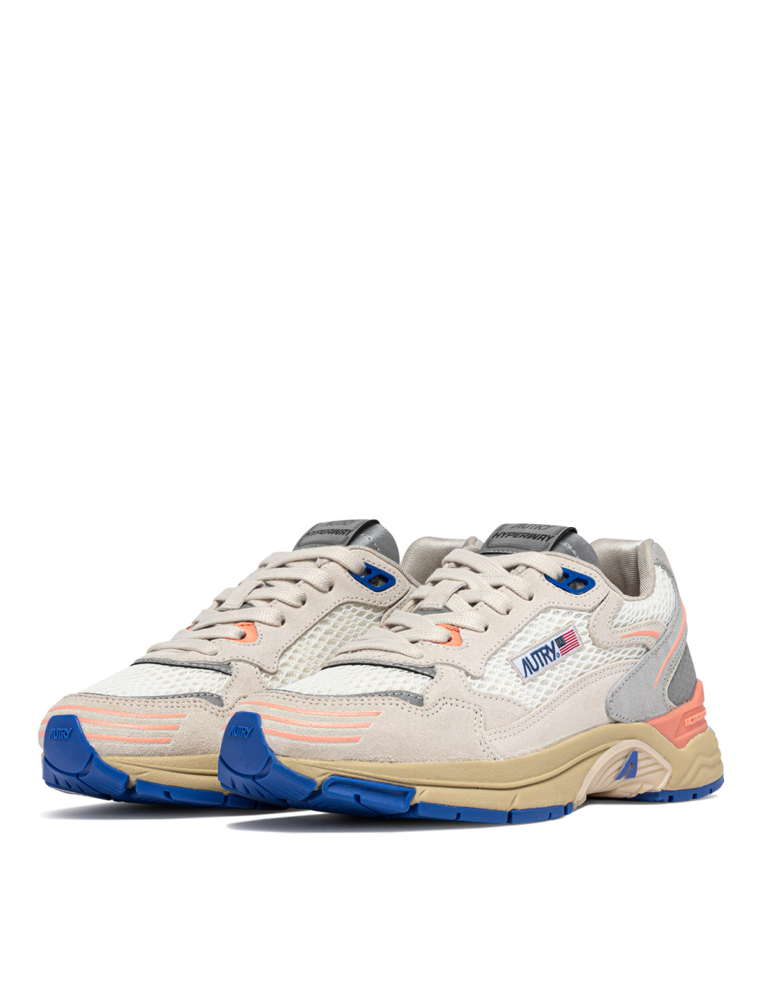 Baskets en mesh et daim blanc/gris/corail HYLW-HU02
