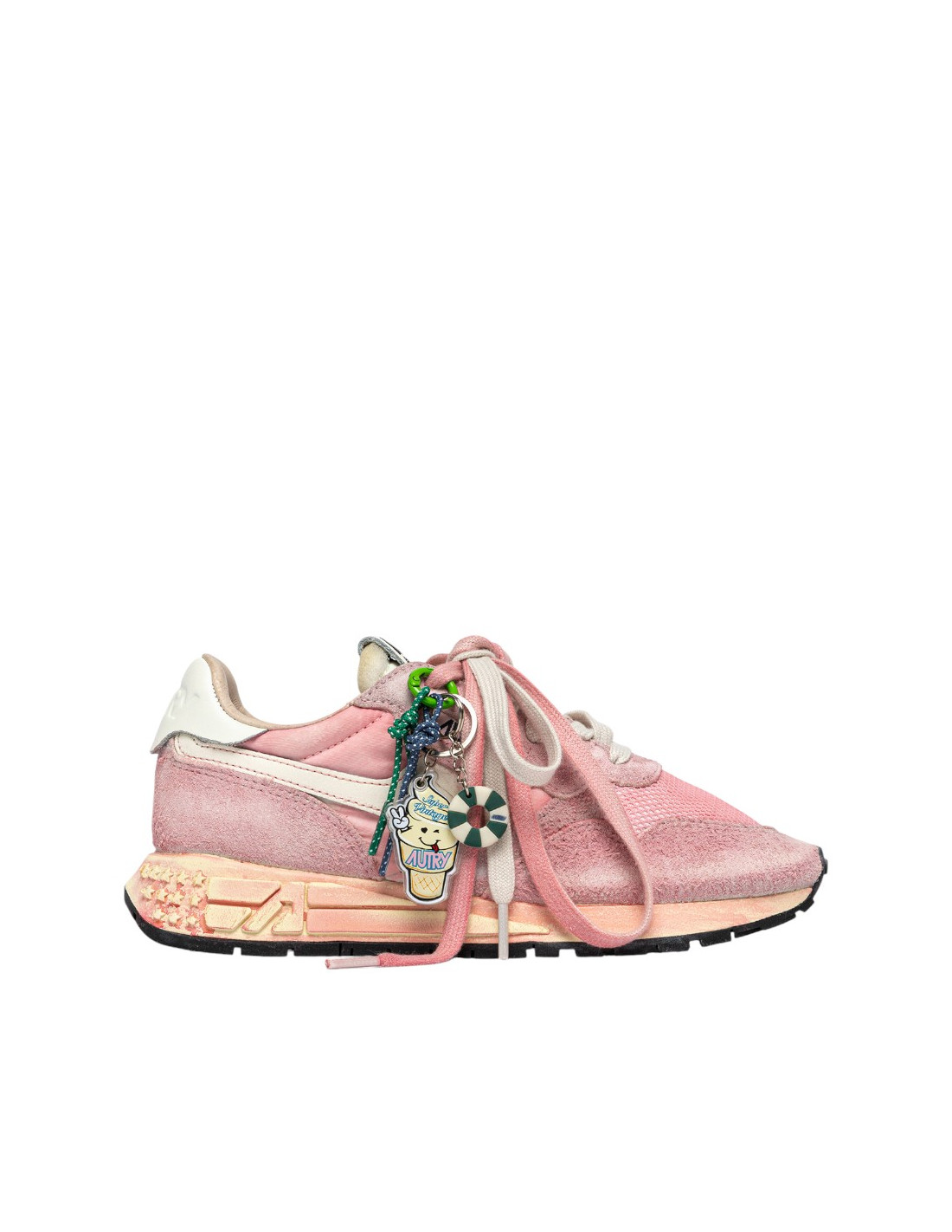 - Lacets plats blancs et lacets rose vieillis avec charm fantaisie amovible accroché à un des oeillets