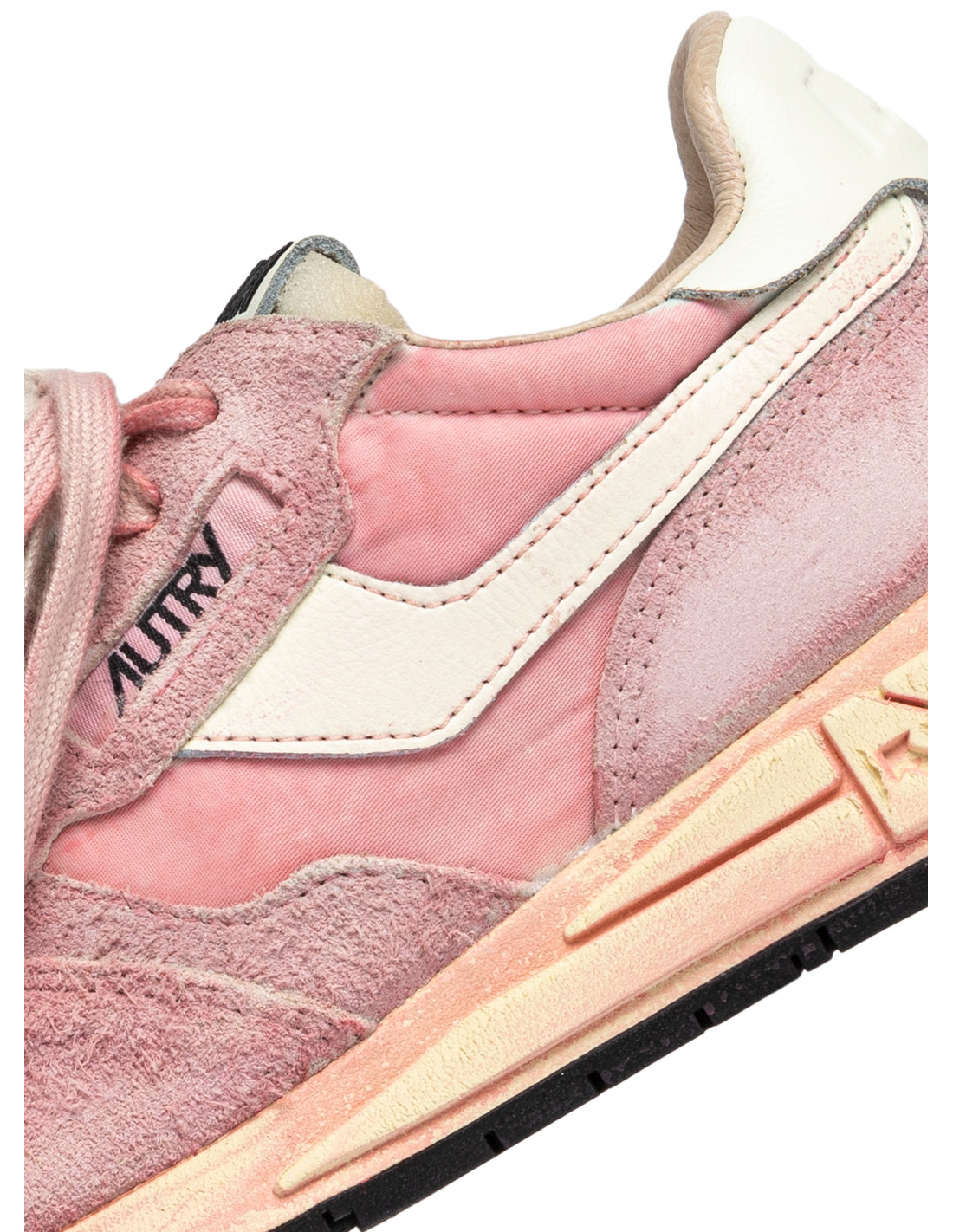- Tige en nylon et cuir suédé rose avec empiècement cuir blanc