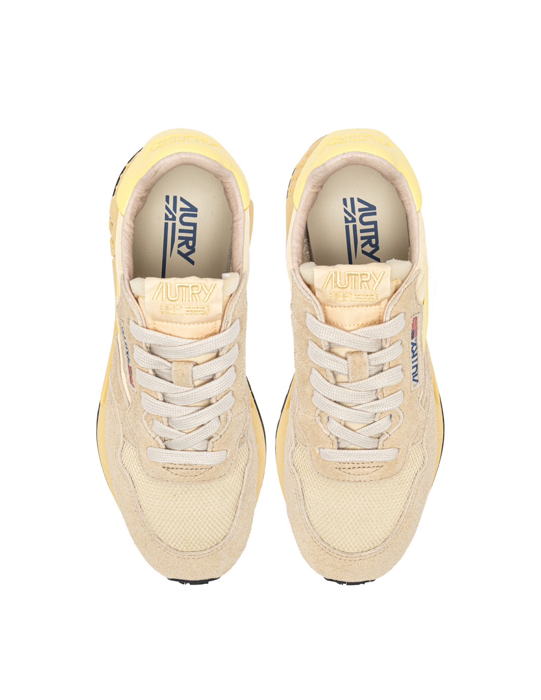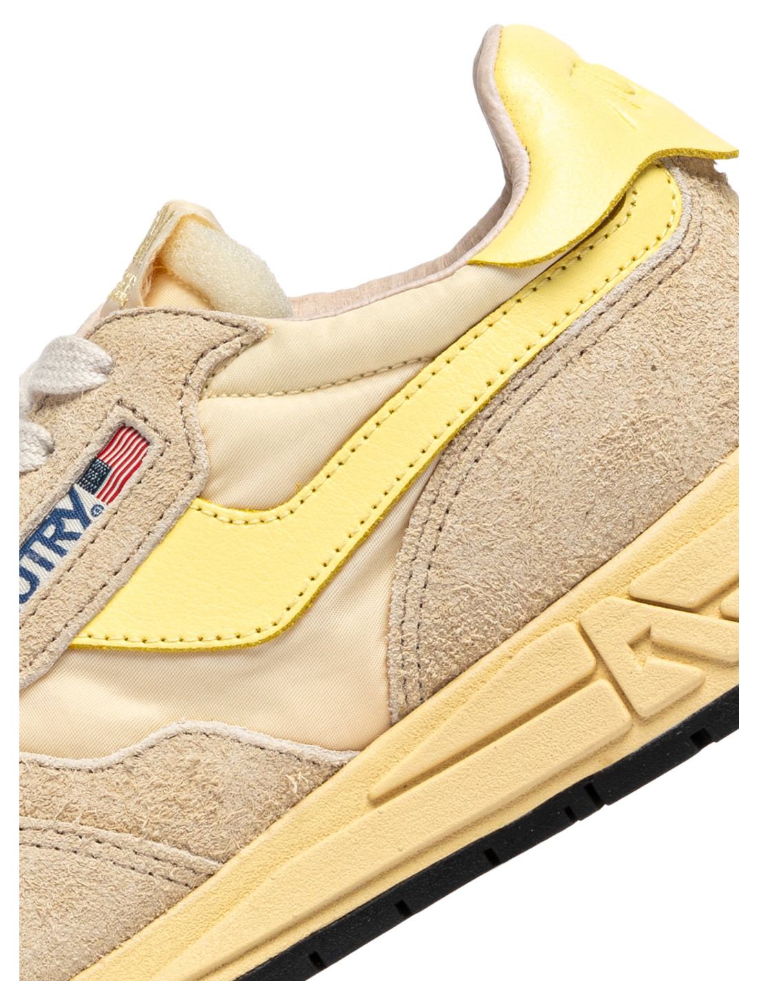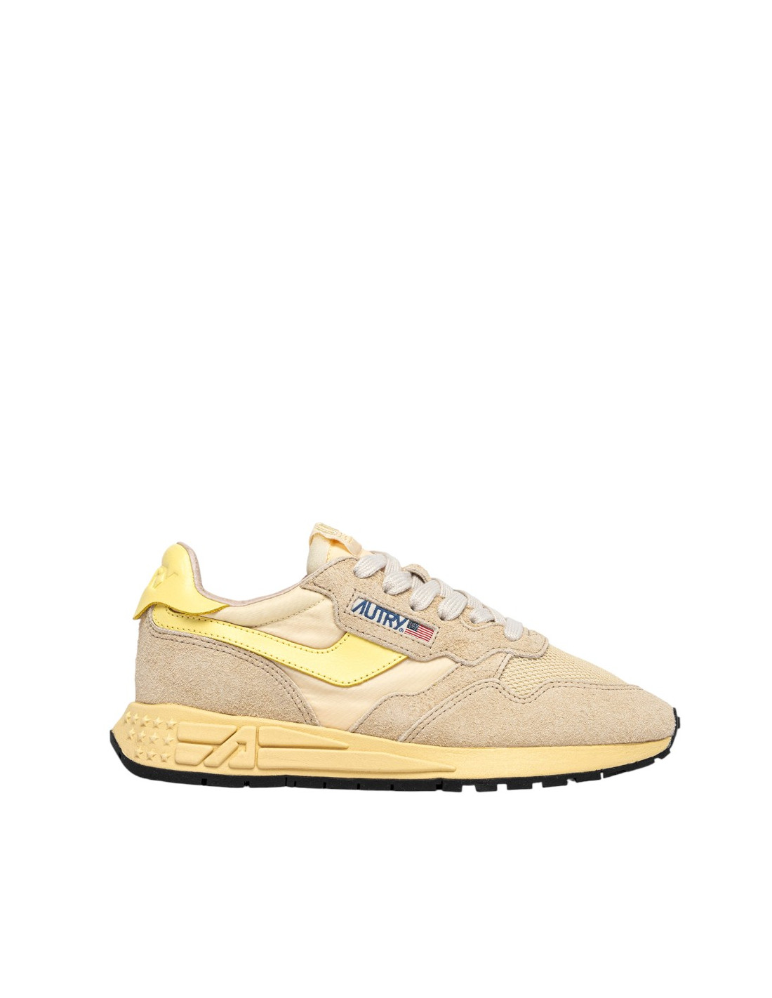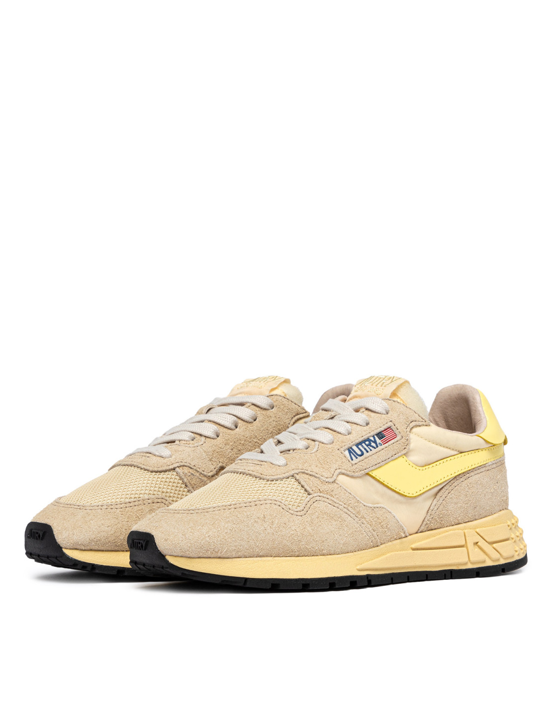 Innovantes, légères et d'une extrême souplesse, la sneakers Reelwind Autry s'inspire du monde du running. Le modèle est realisé dans une combinaison de mesh, de cuir suédé écru, et cuir jaune avec logo embossé à l'arrière du talon