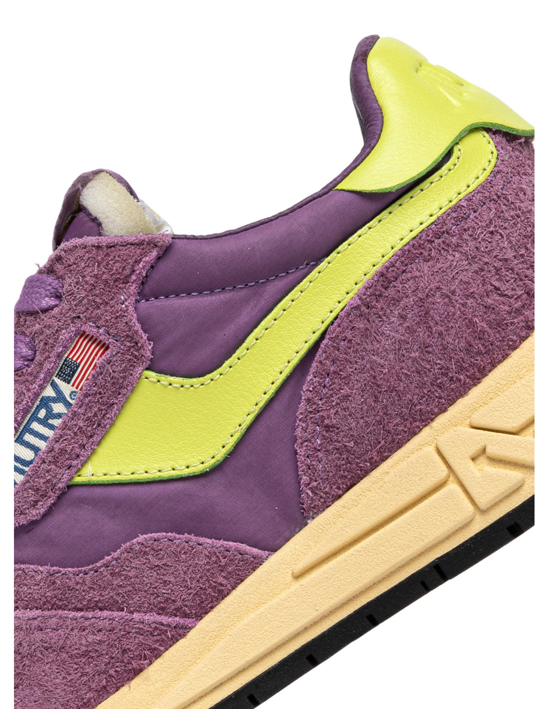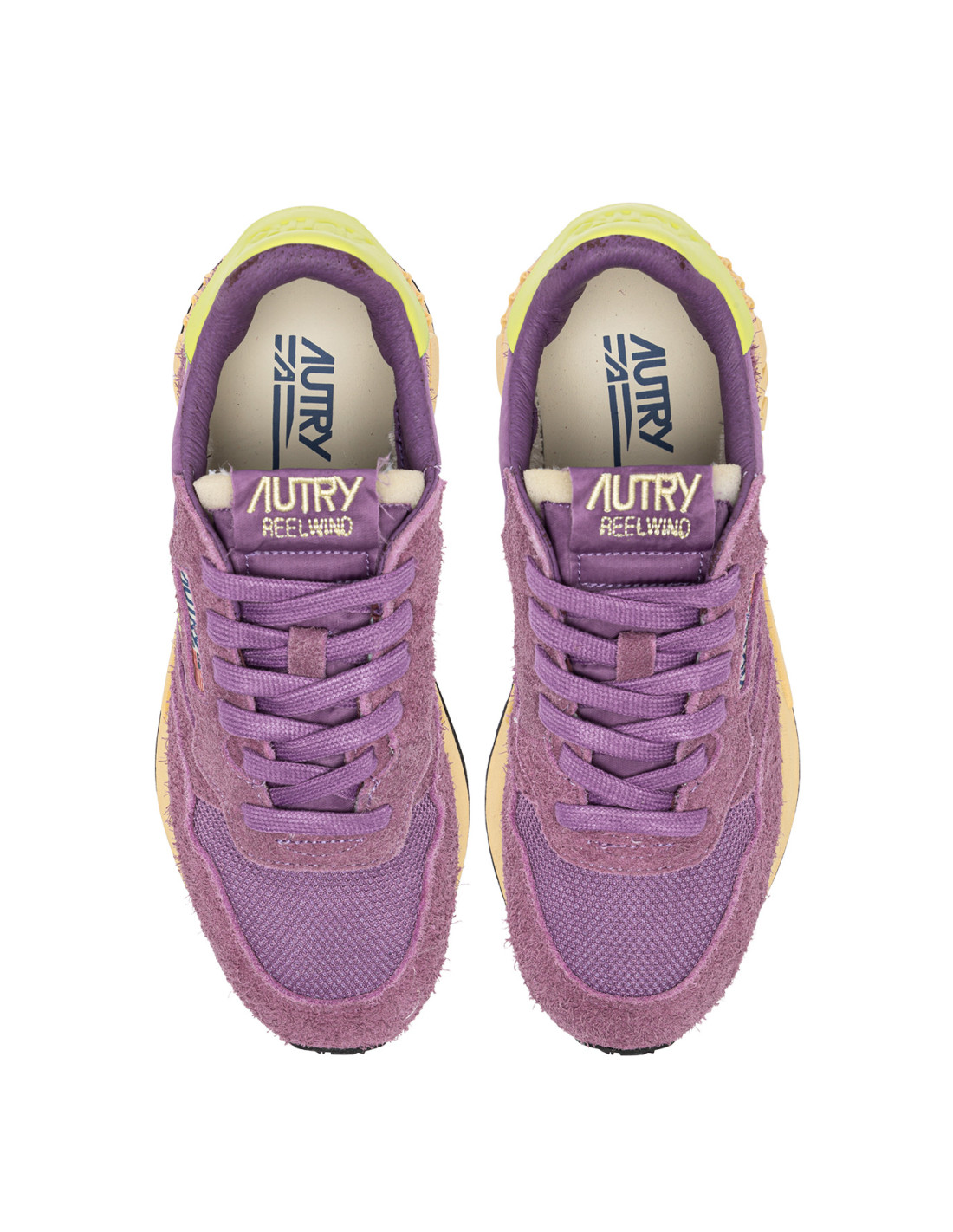 Innovantes, légères et d'une extrême souplesse, la sneakers Reelwind Autry s'inspire du monde du running. Le modèle est realisé dans une combinaison de mesh, de cuir suédé violet, et cuir vert anis avec logo embossé à l'arrière du talon