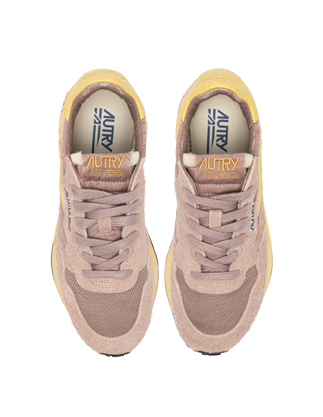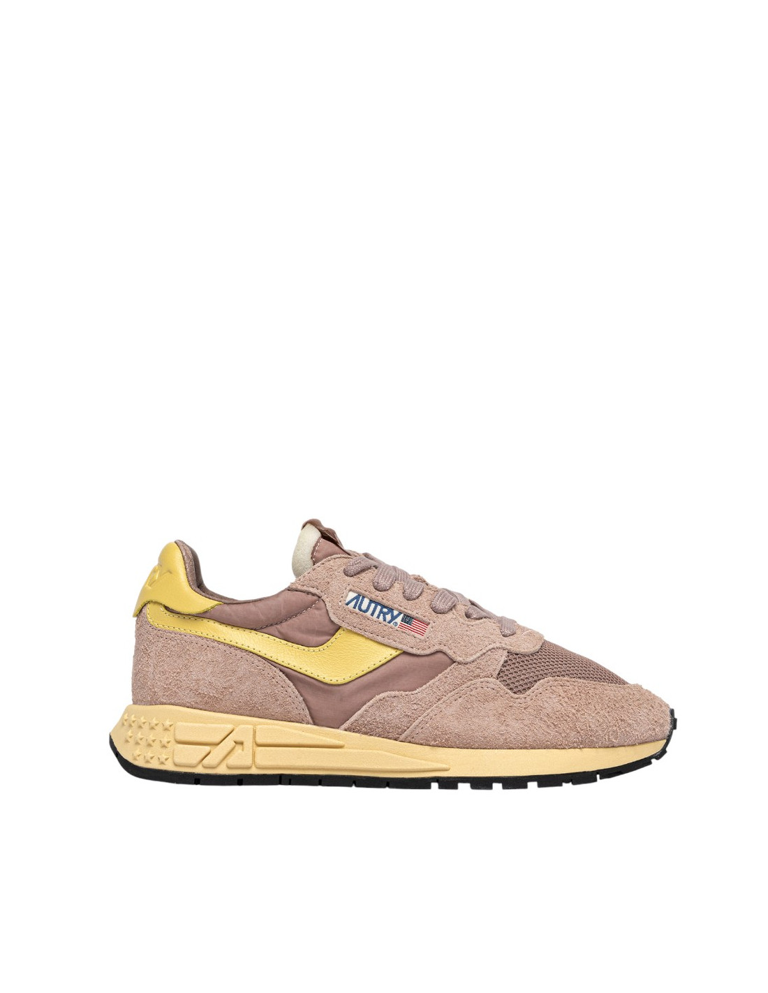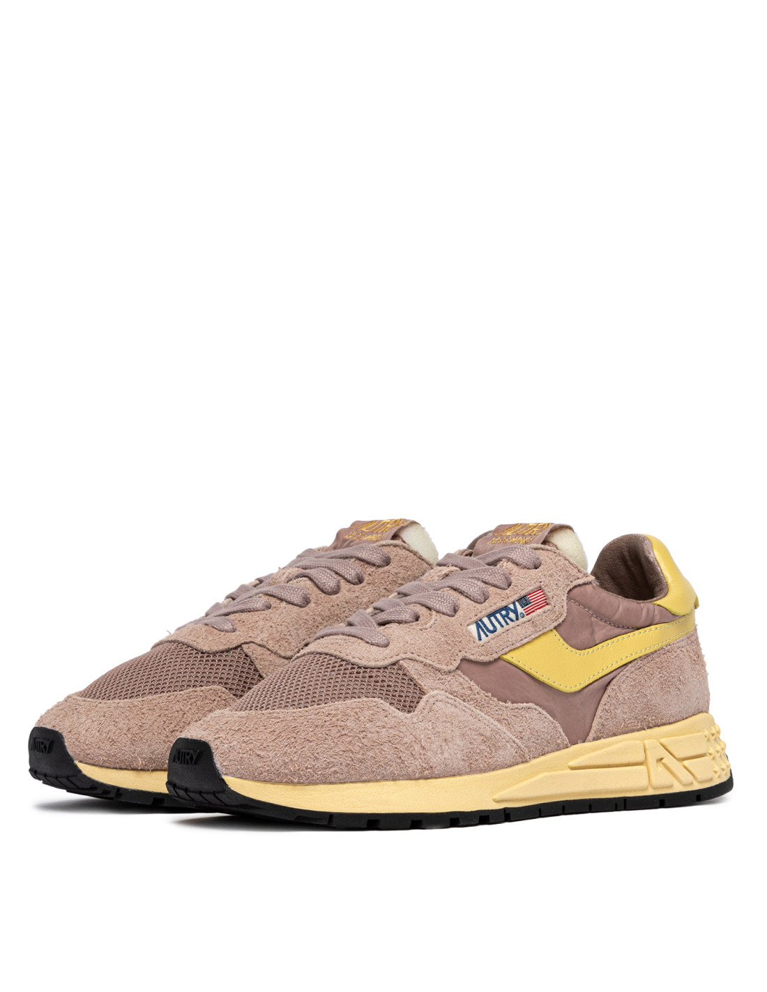 Innovantes, légères et d'une extrême souplesse, la sneakers Reelwind Autry s'inspire du monde du running. Le modèle est realisé dans une combinaison de mesh, de cuir suédé vieux rose, et cuir jaune avec logo embossé à l'arrière du talon