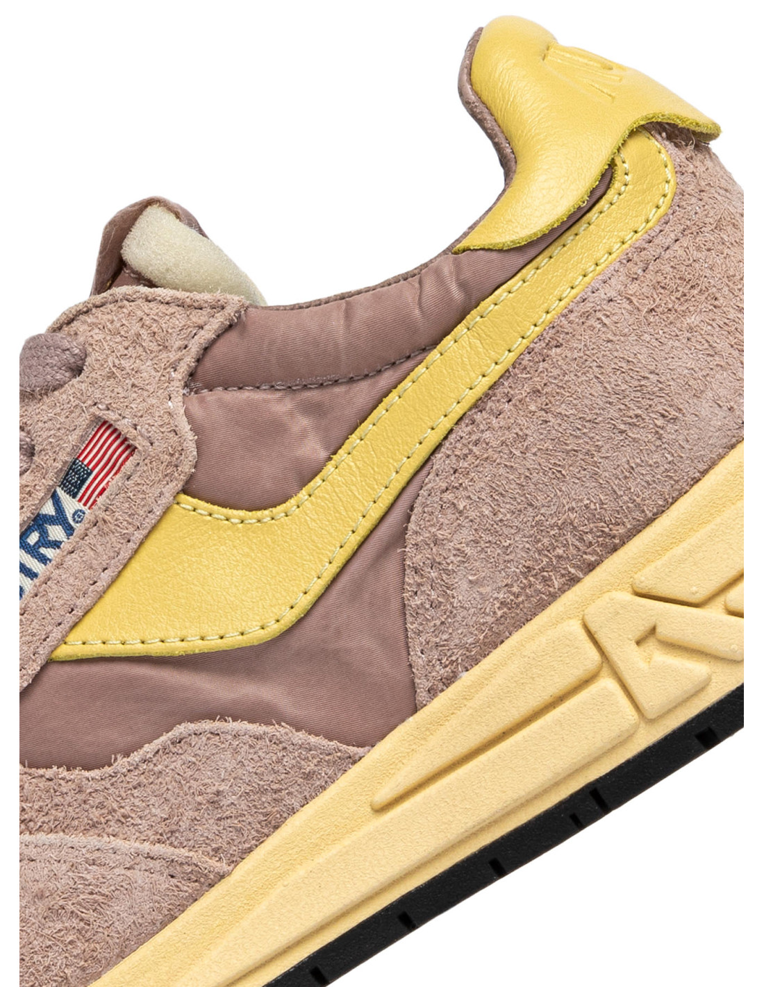- Tige en mesh et cuir suédé vieux rose avec empiècements jaune