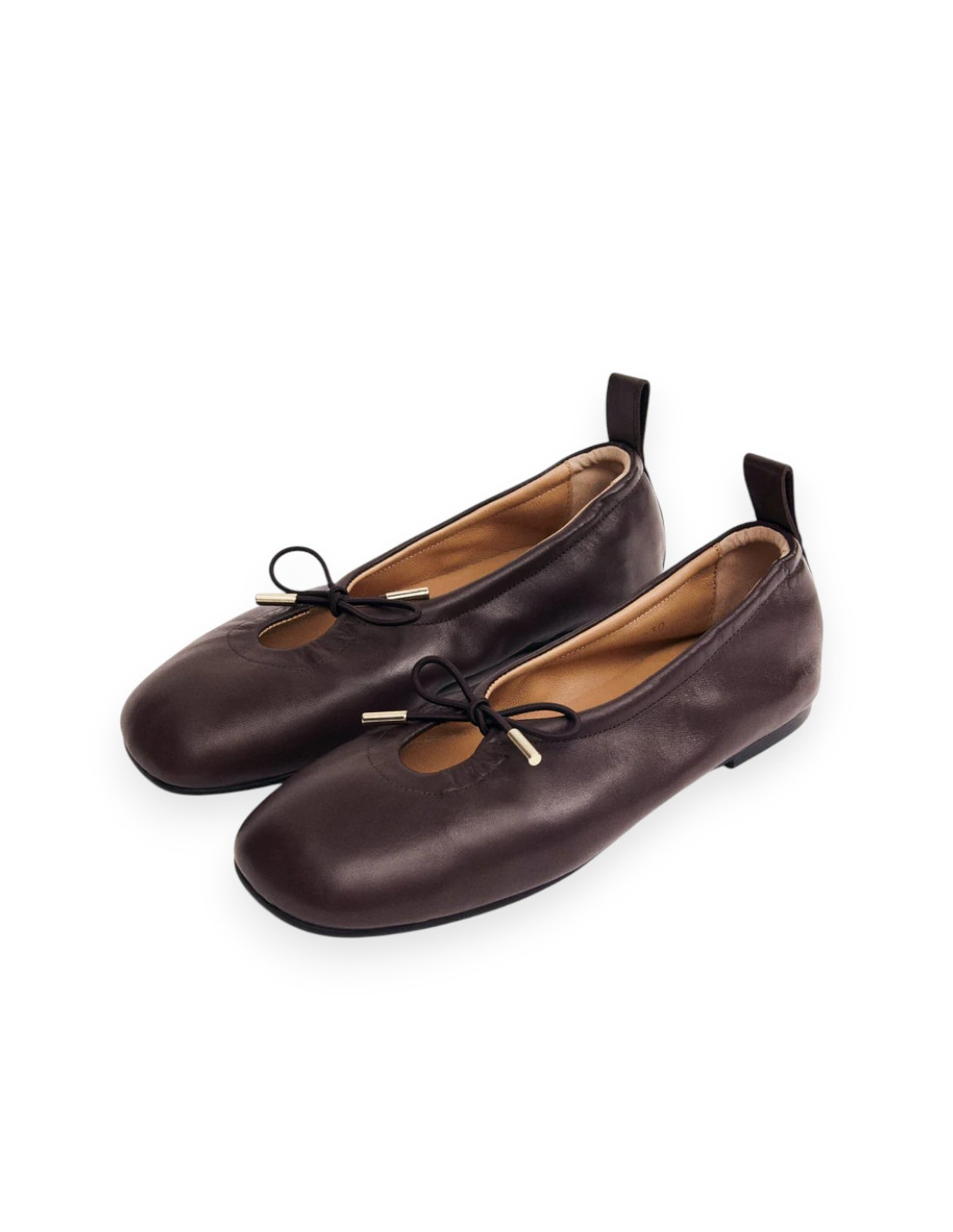 Ballerines en cuir marron souple avec semelles souples et talon élastiqué
