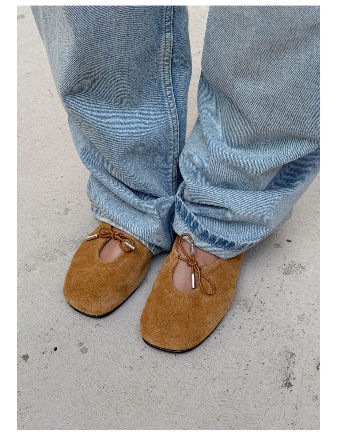 Ballerines en cuir suede souple avec semelles souples et talon élastiqué