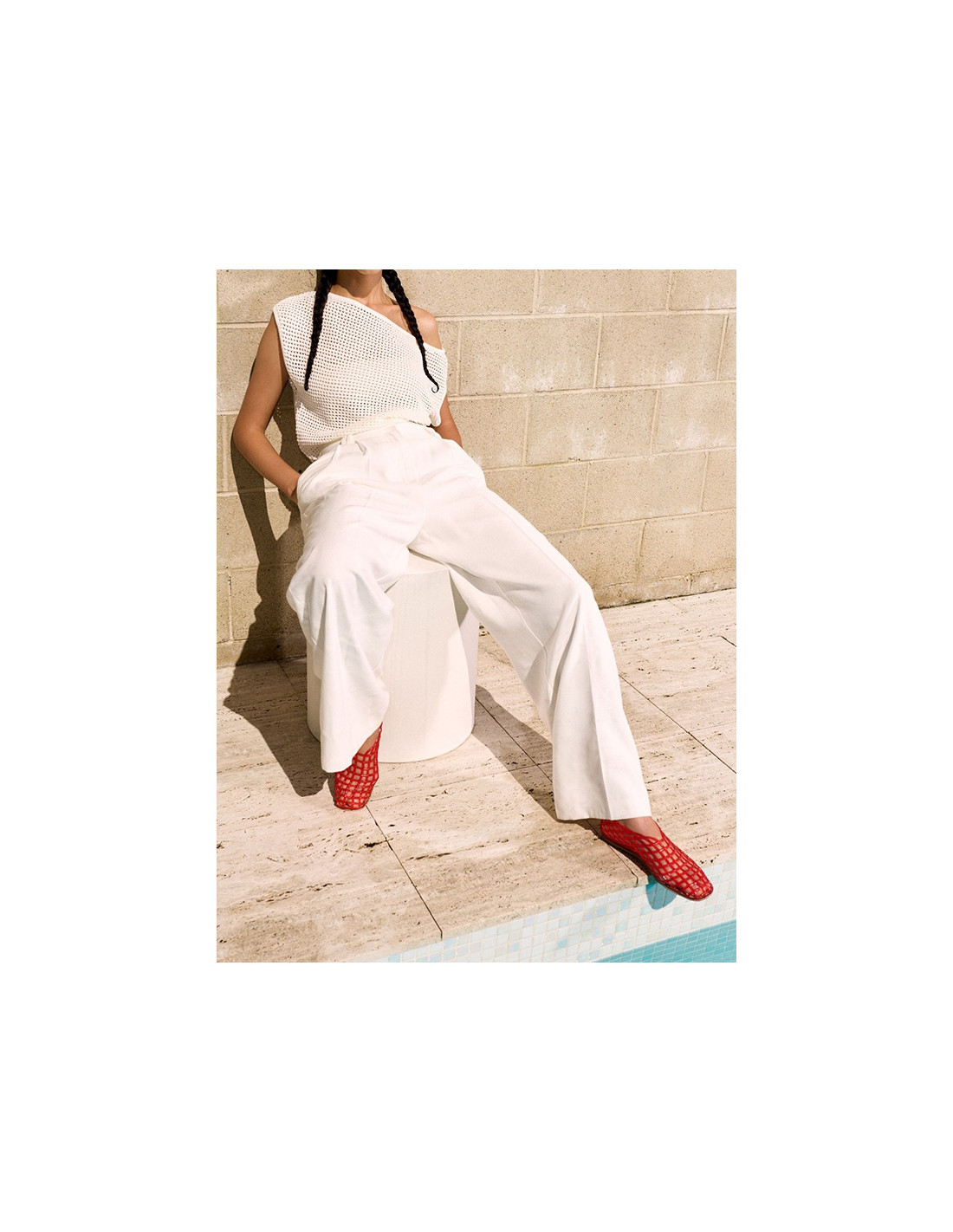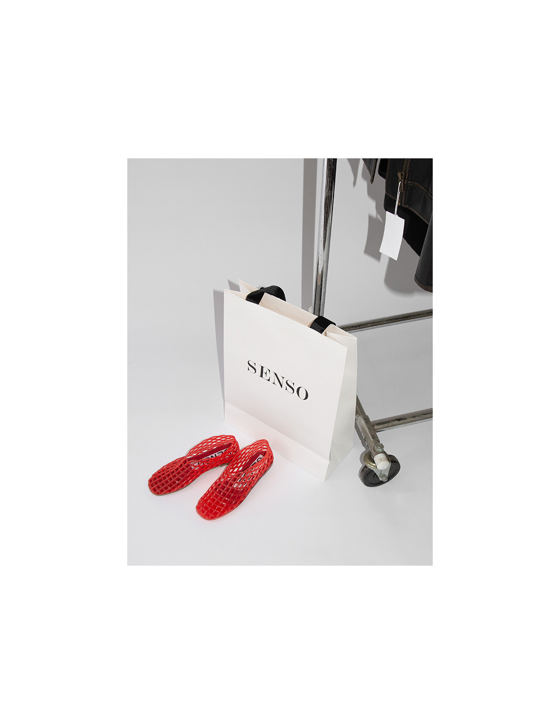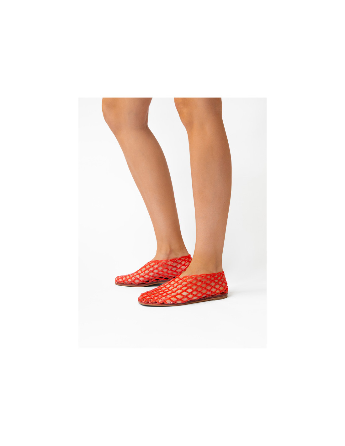 Ballerines en résille de caoutchouc brillant rouge avec semelle intérieure en cuir
