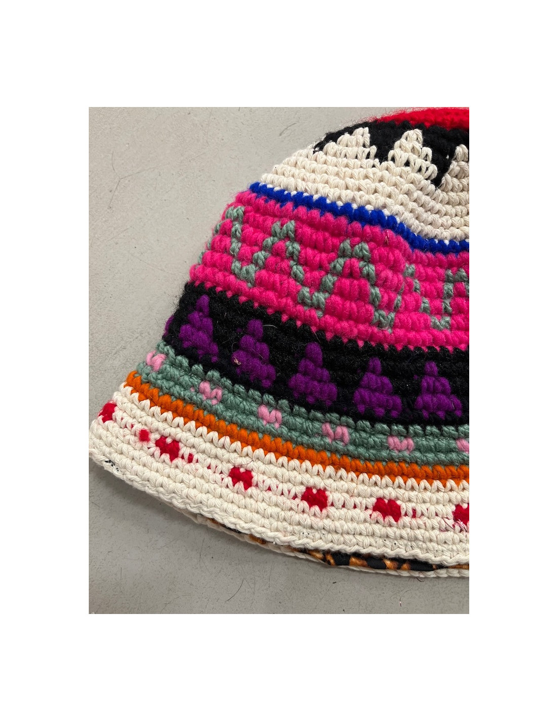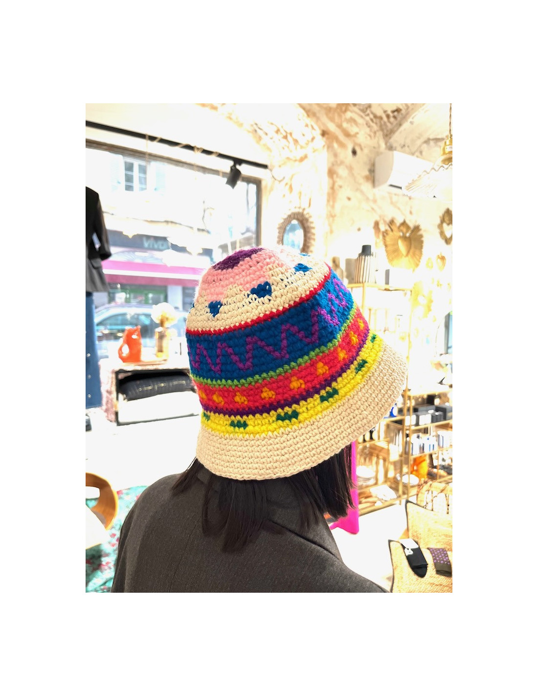 Bob multicolore en crochet entièrement tissé à la main.