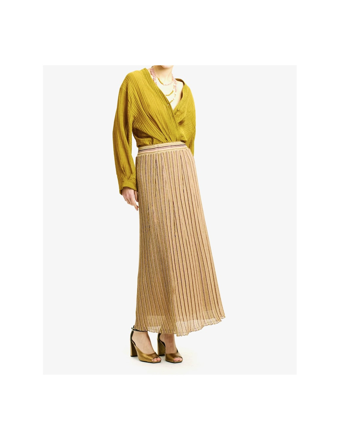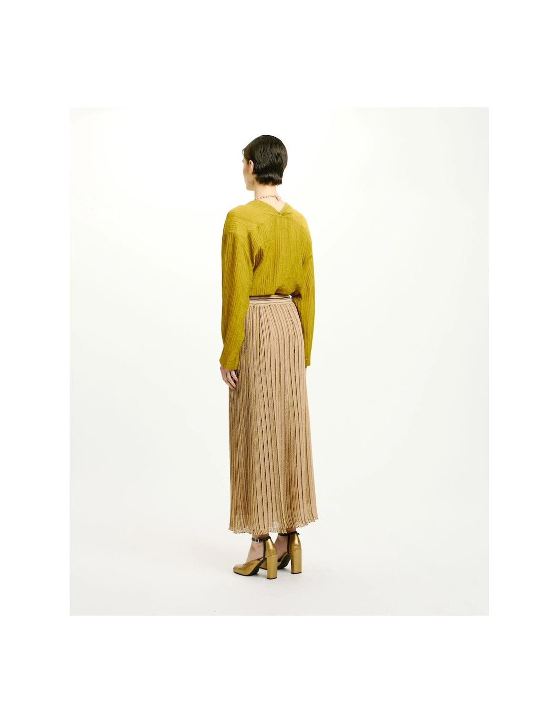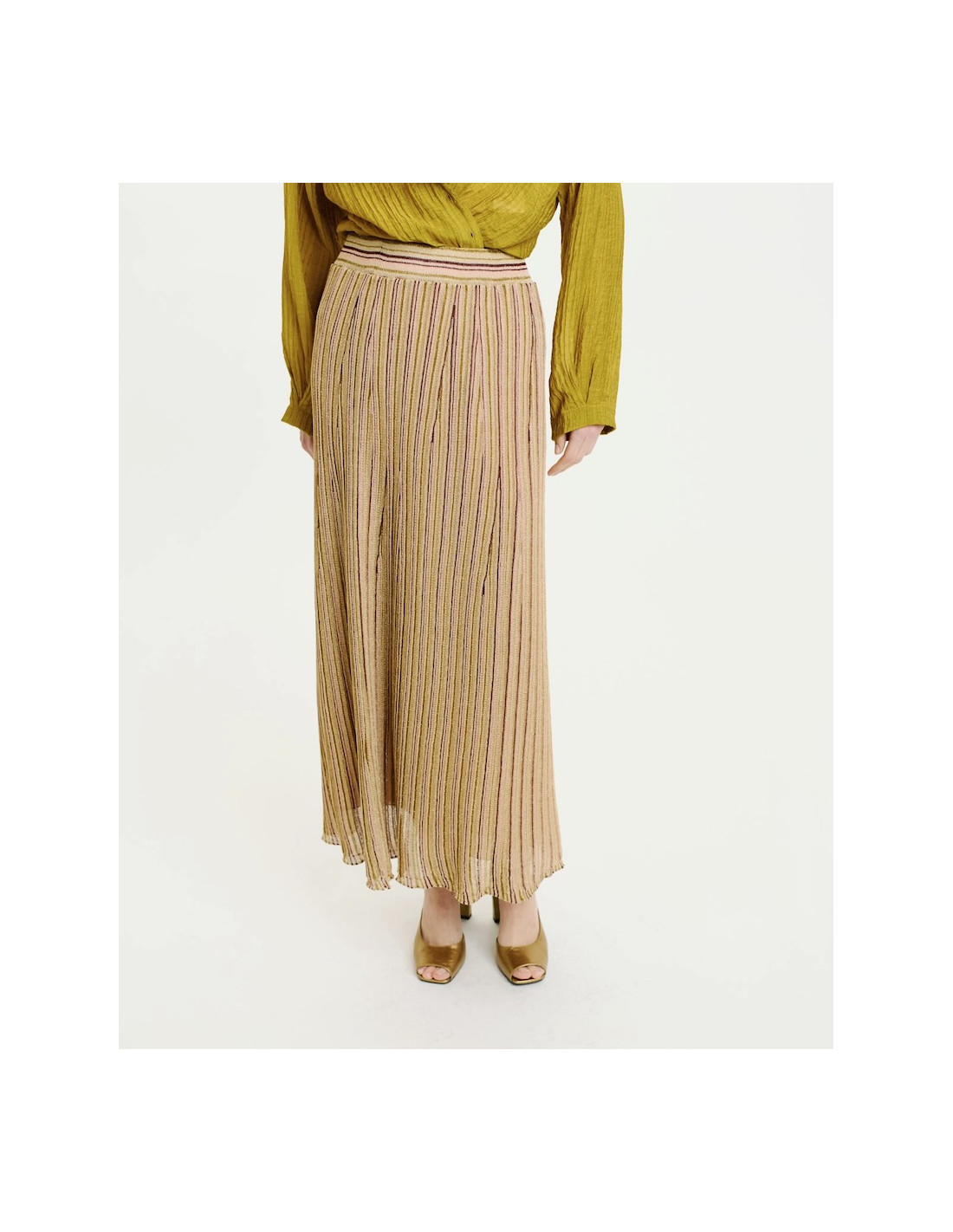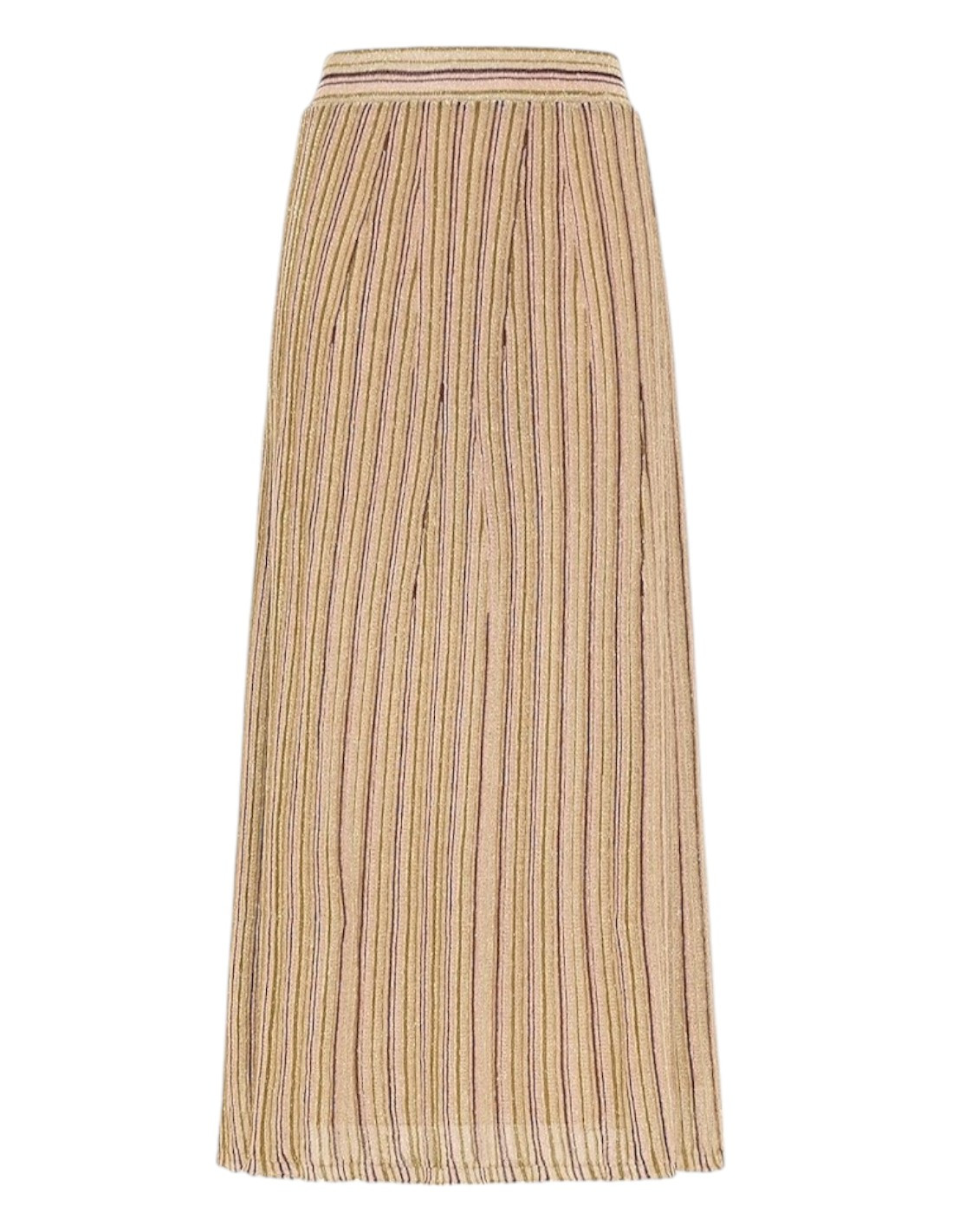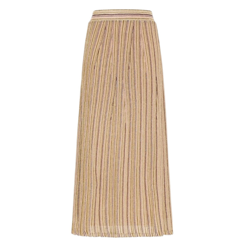 Jupe en tricot côtelé de viscose lurex multirayures.