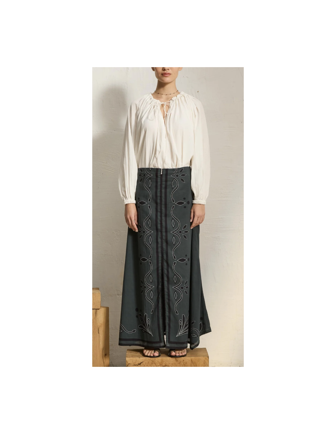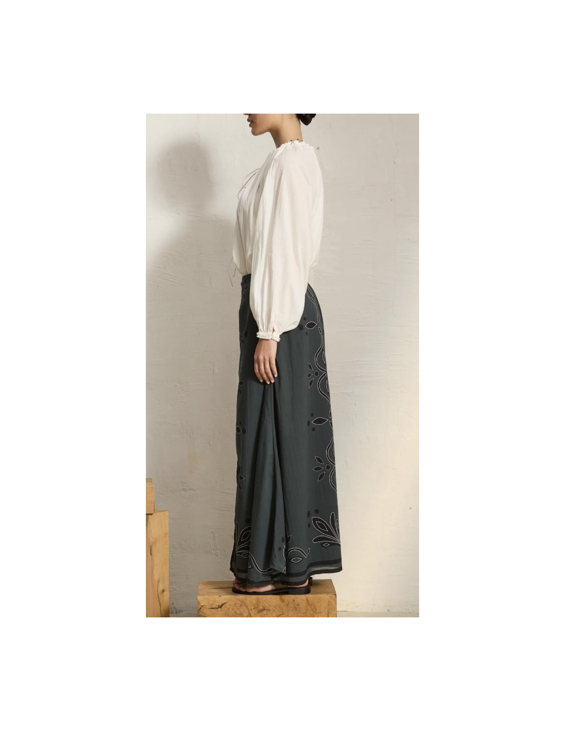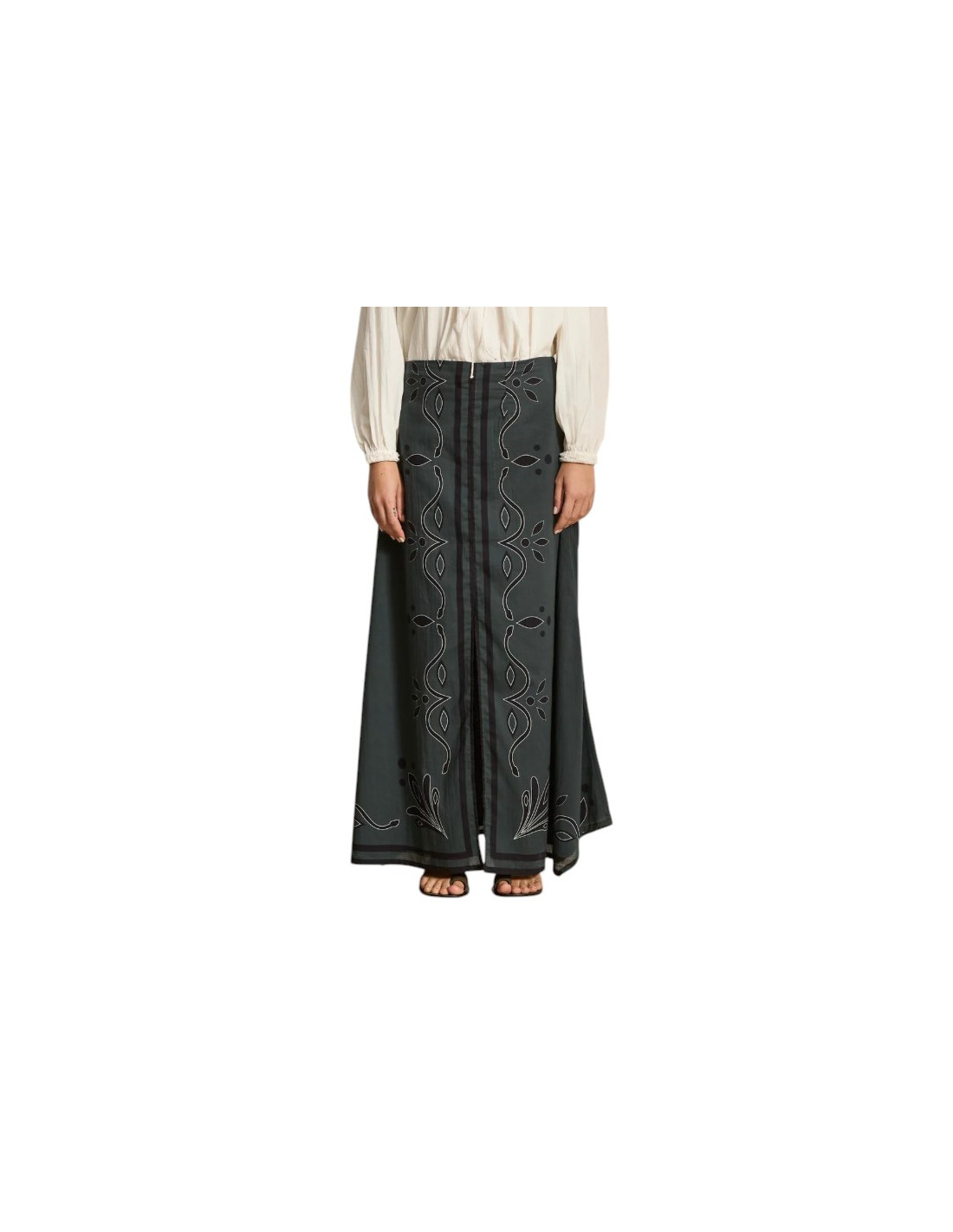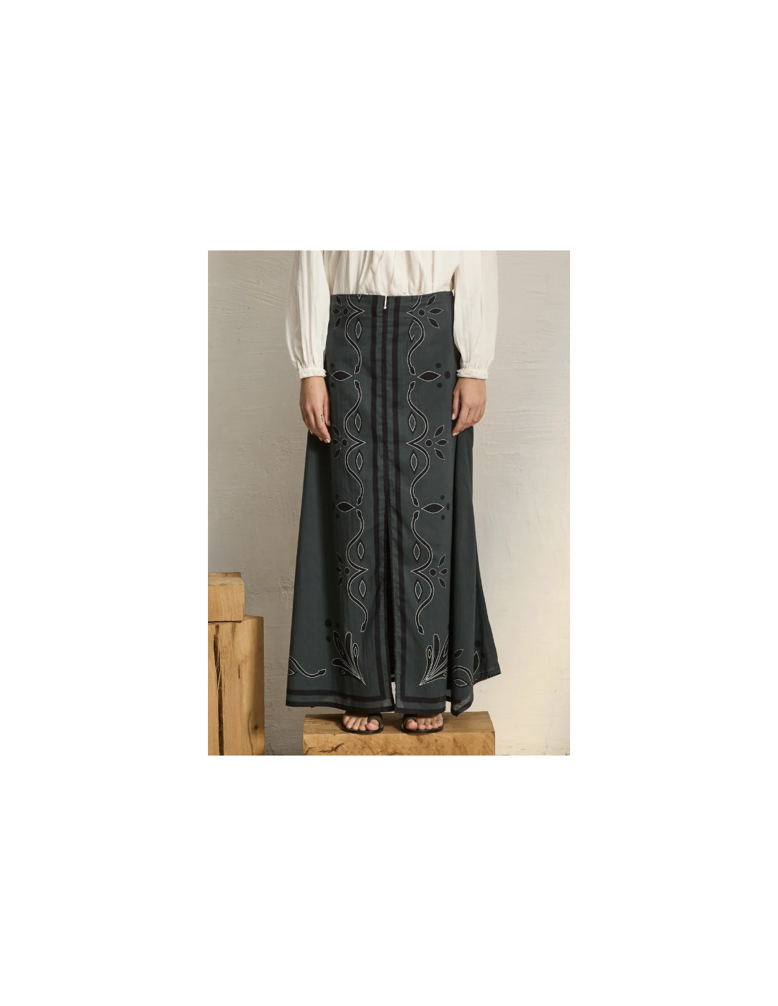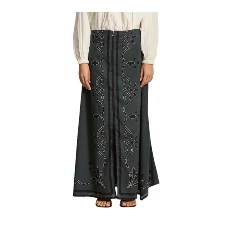 Jupe longue en voile de coton ardoise imprimé