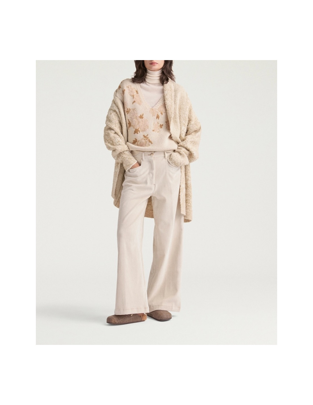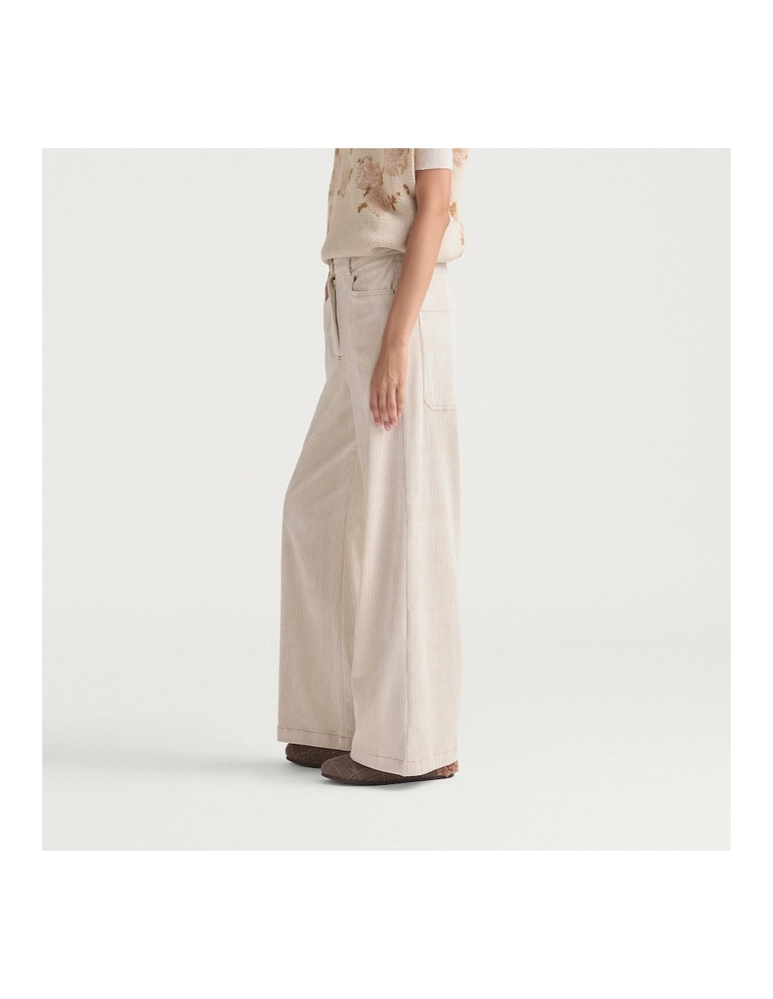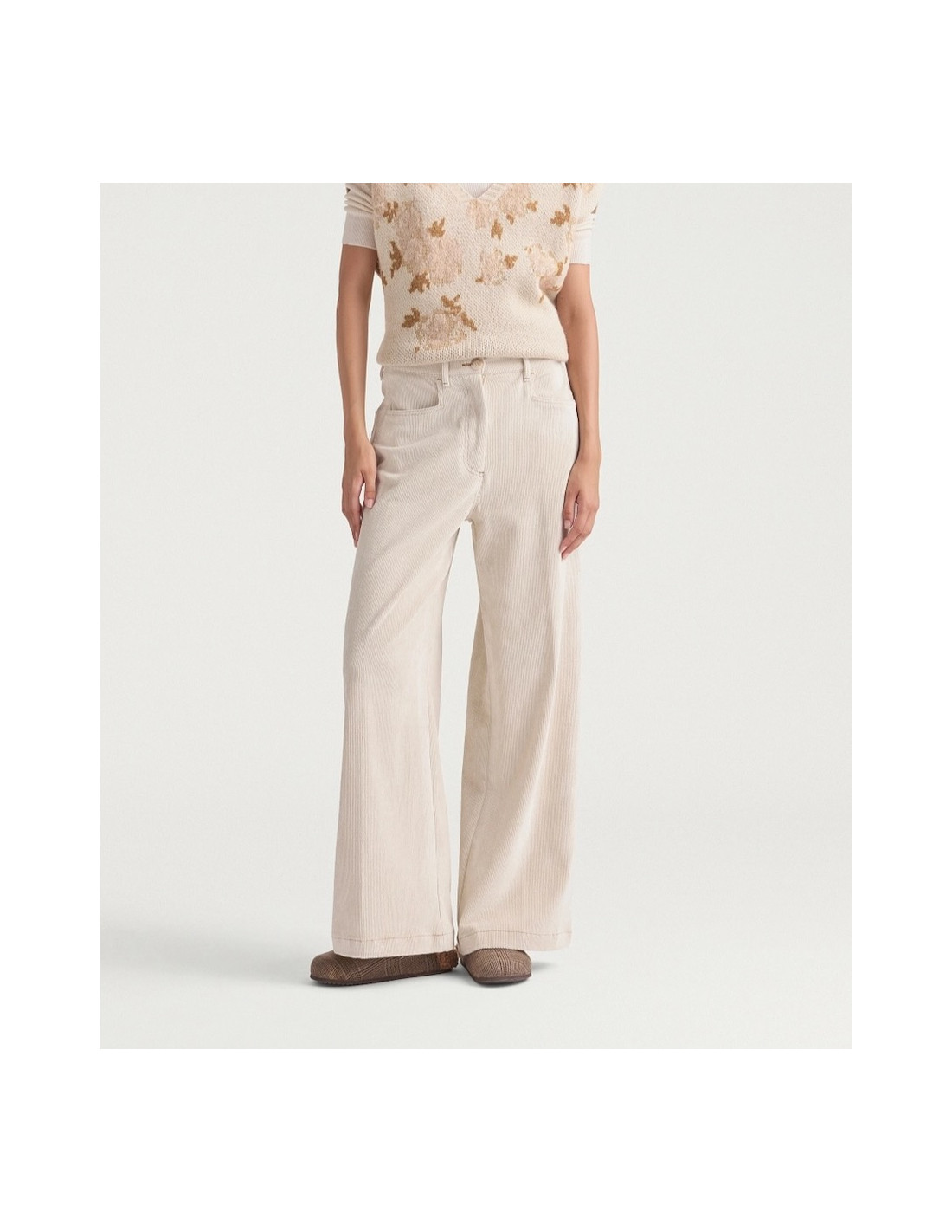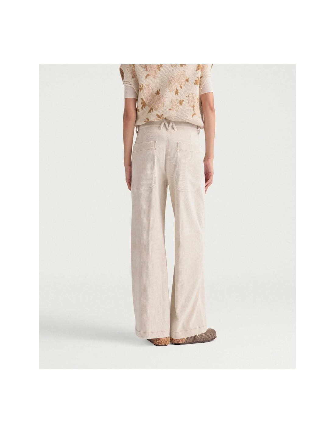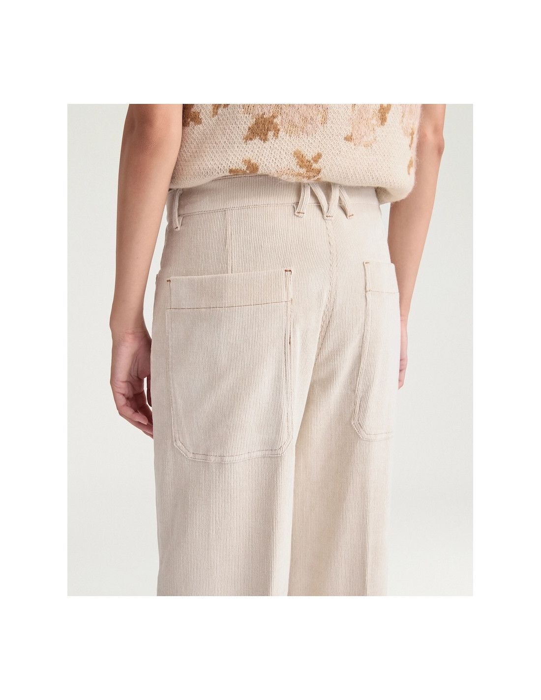 Pantalon crème en velours côtelé