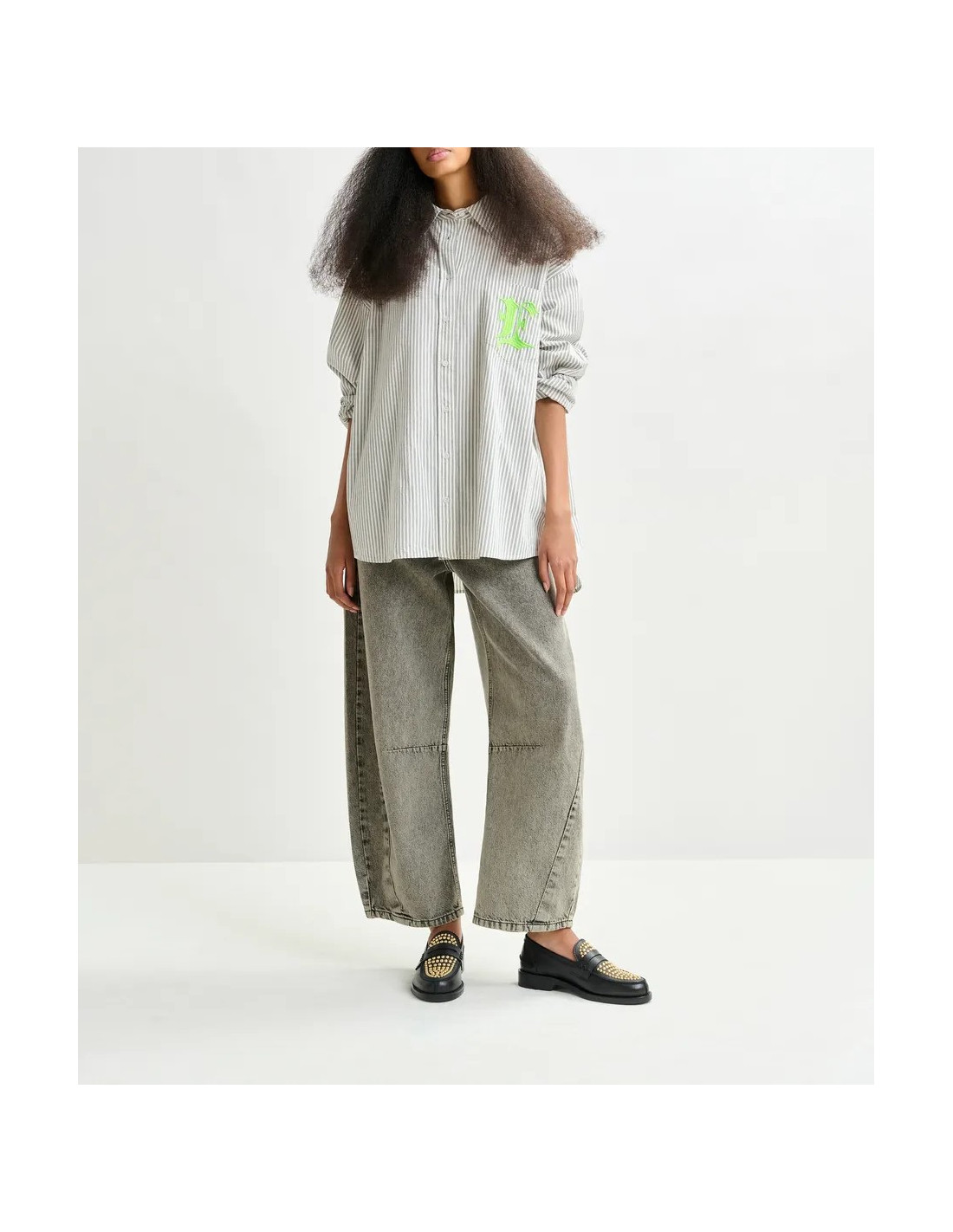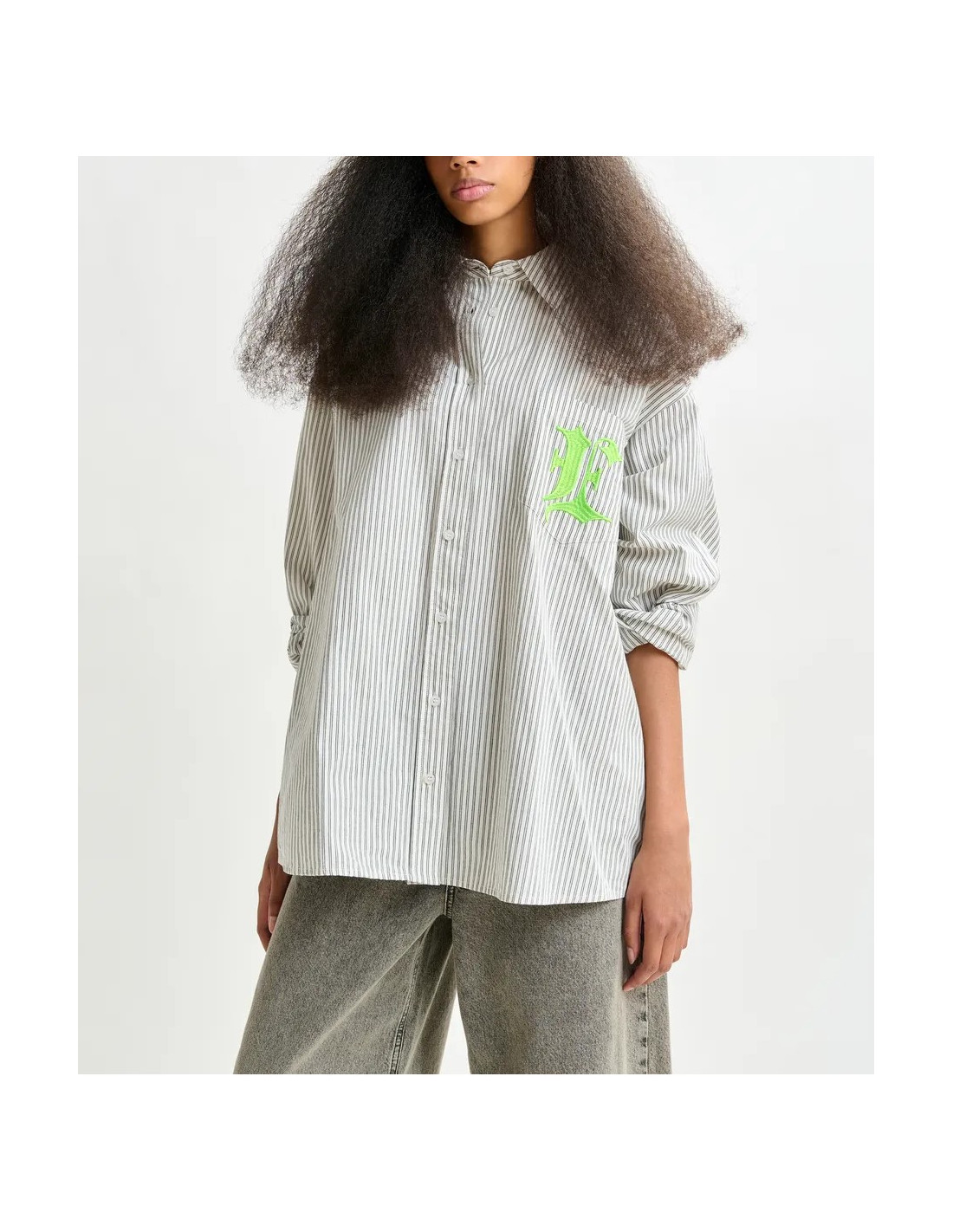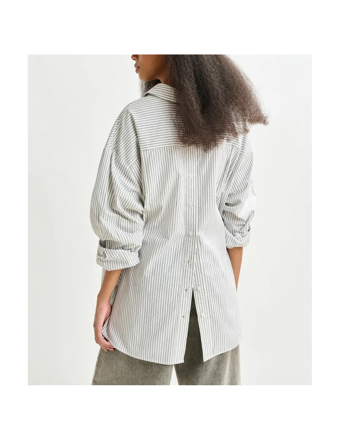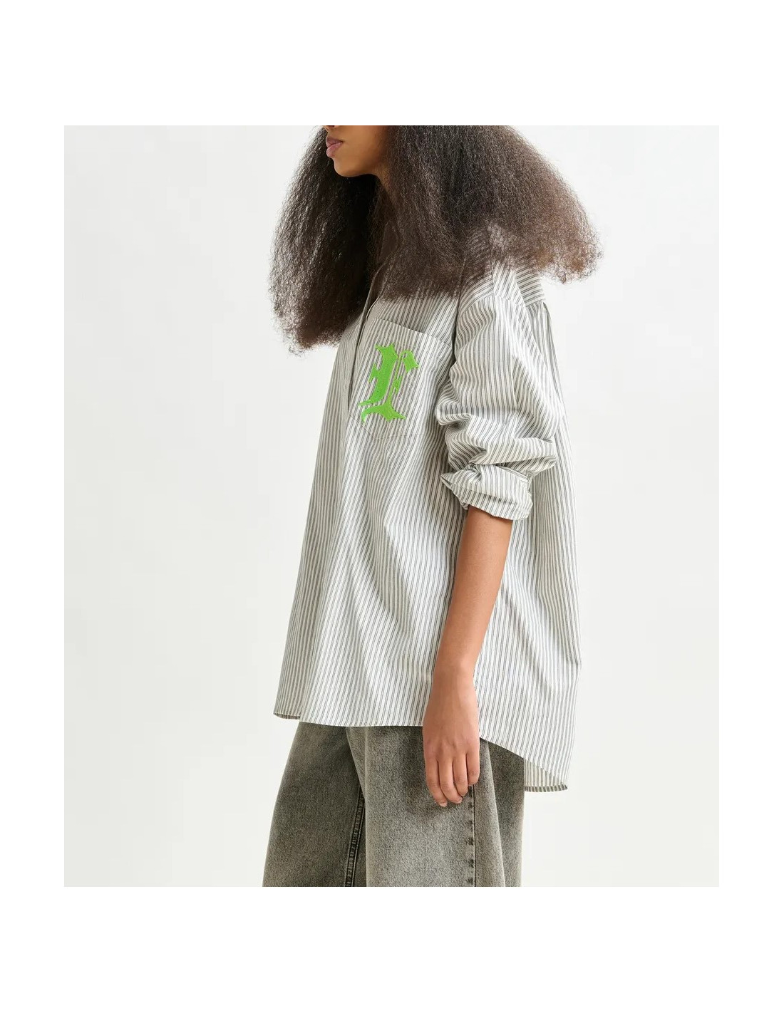 Chemise en popeline de coton oversize à rayures grises, blanches et vertes