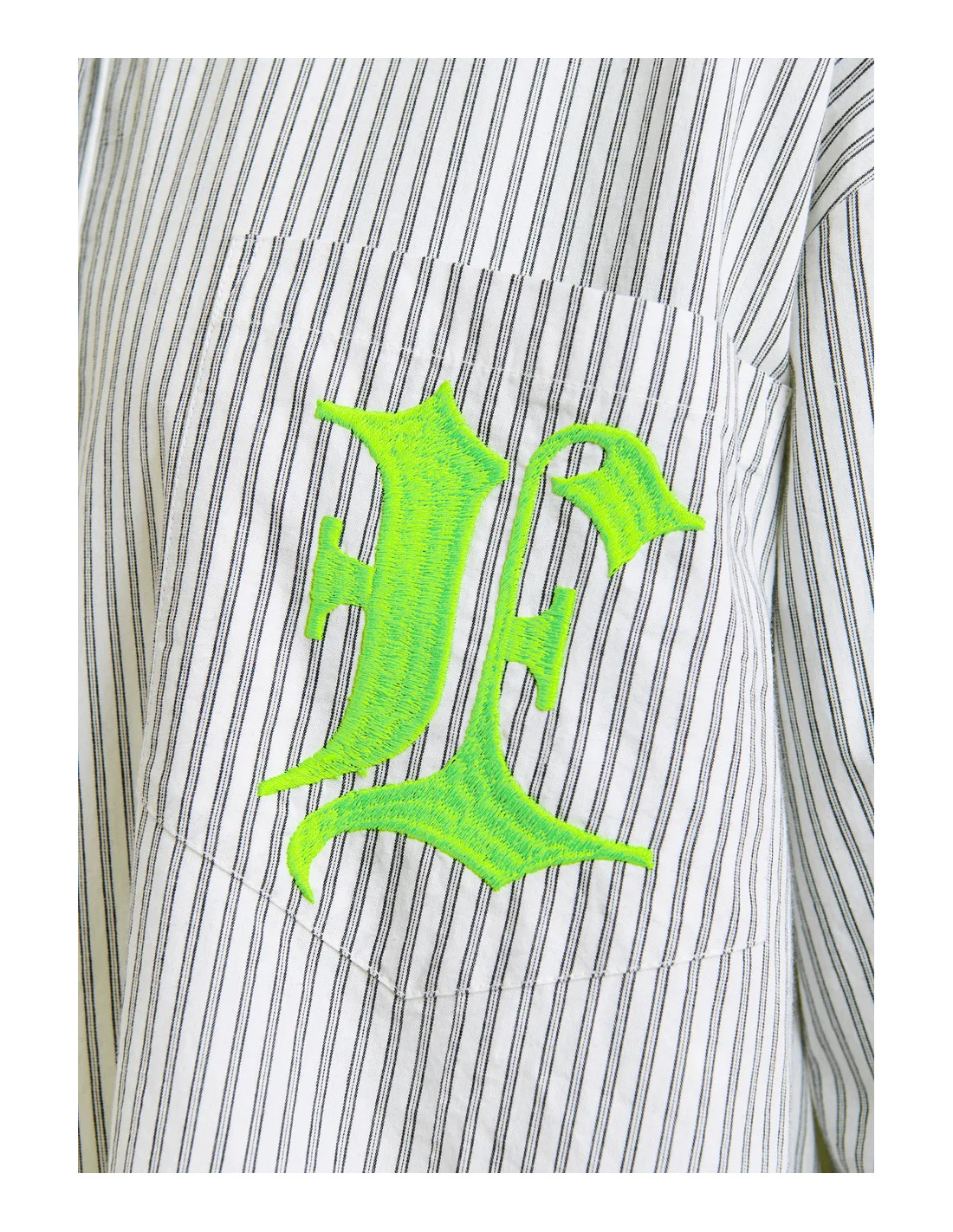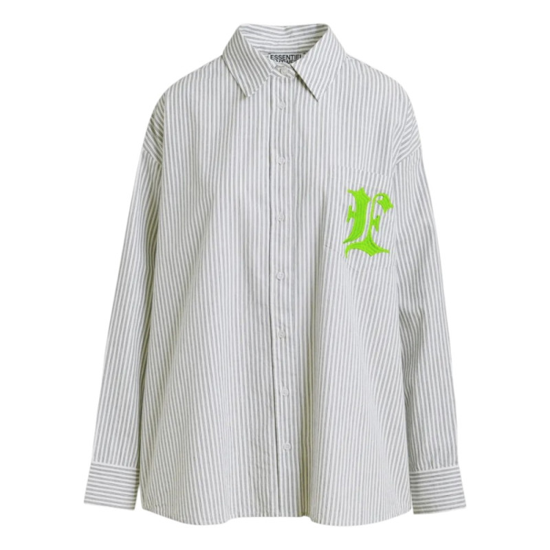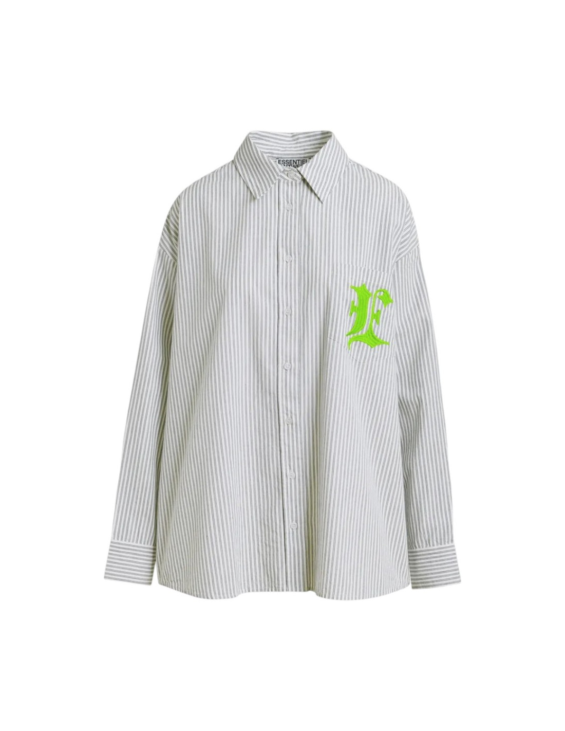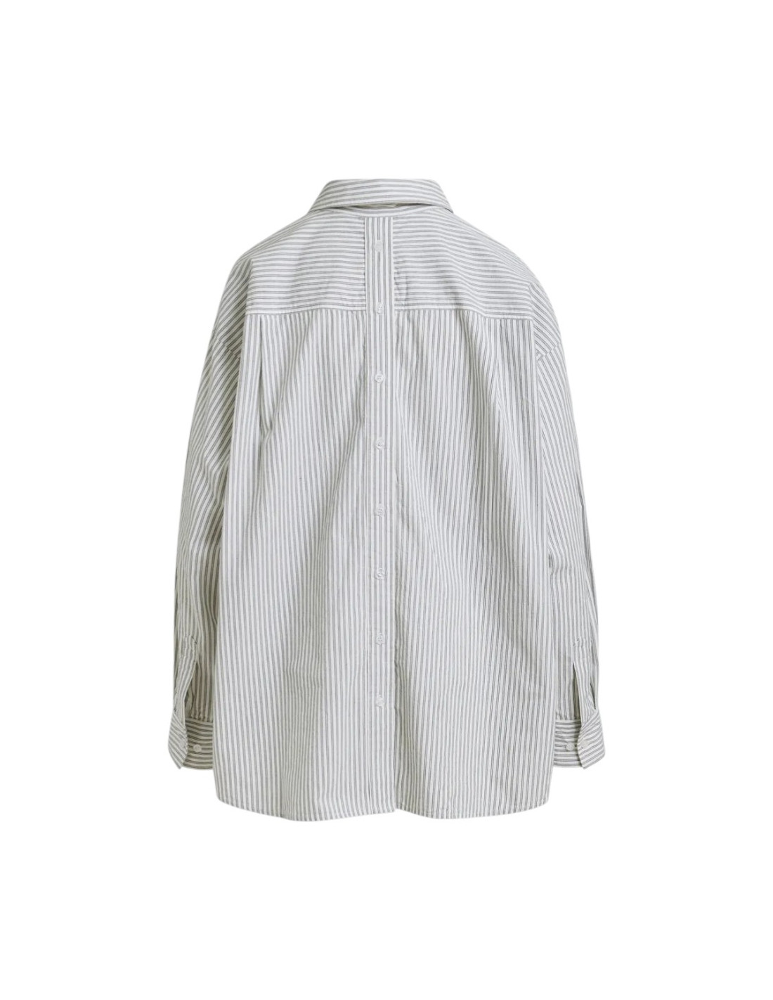 Chemise en popeline de coton oversize à rayures grises, blanches et vertes
