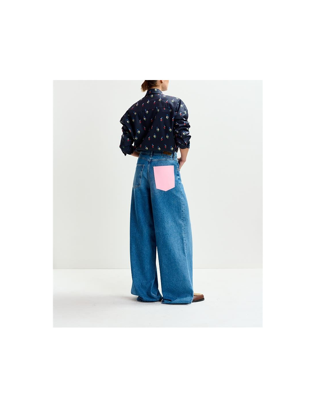 Modèle classique à 5 poches avec poche arrière enduite rose