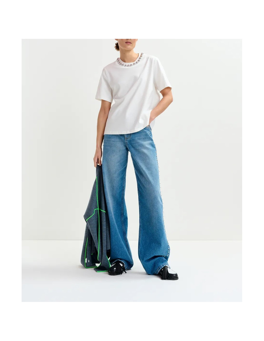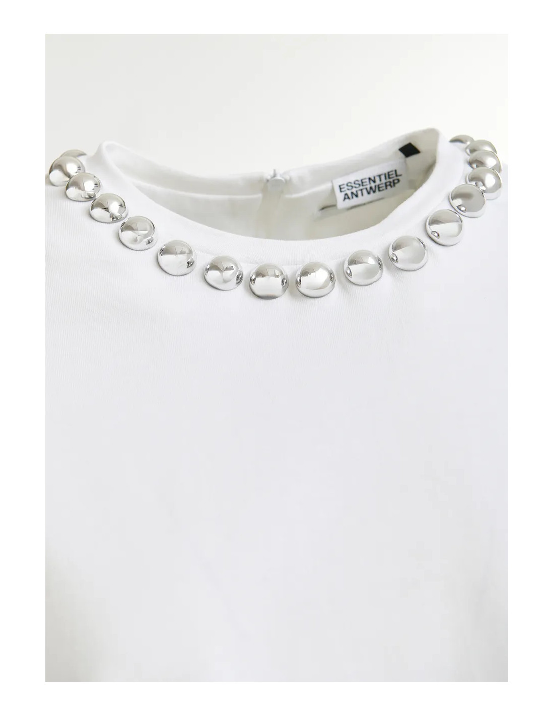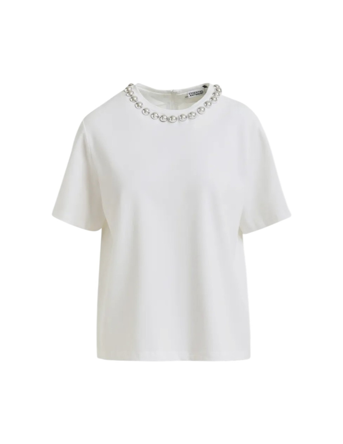T-shirt blanc col bijou perles argentées