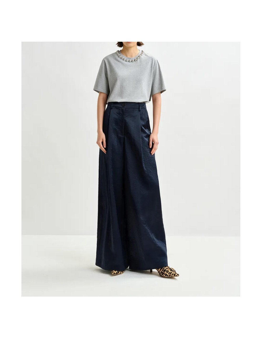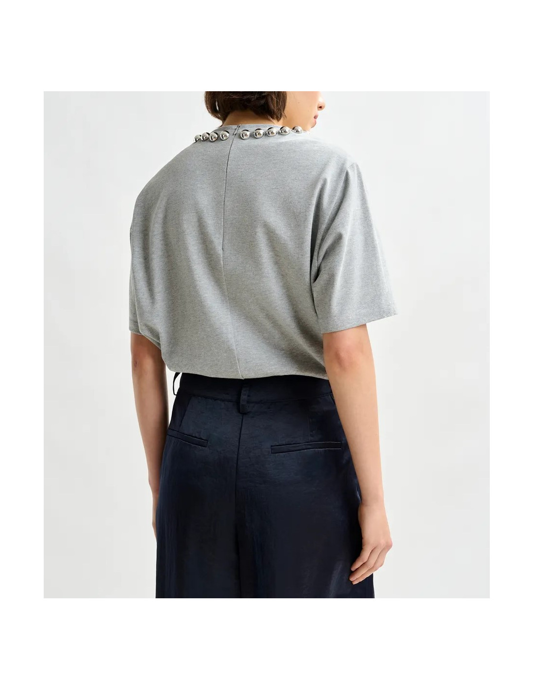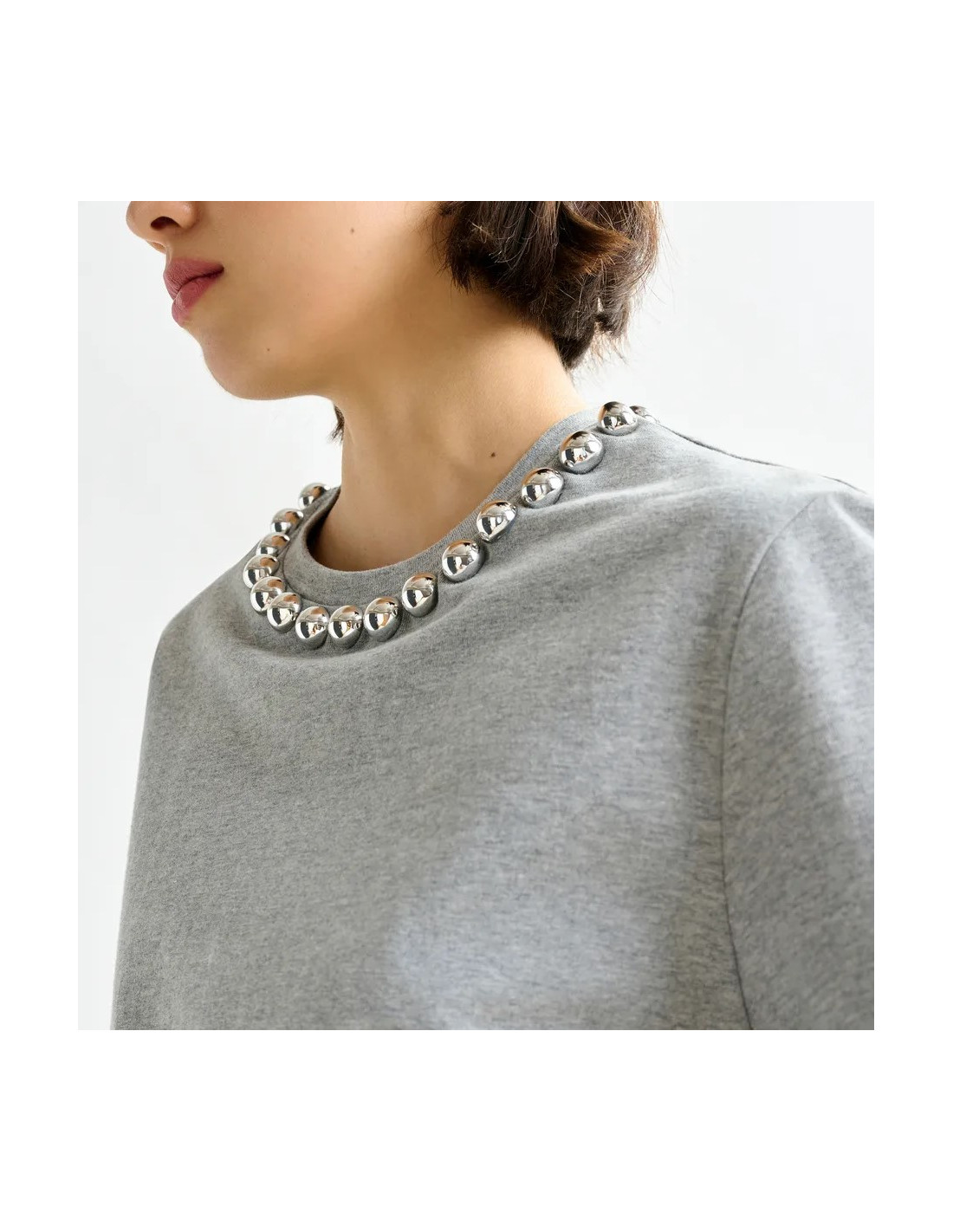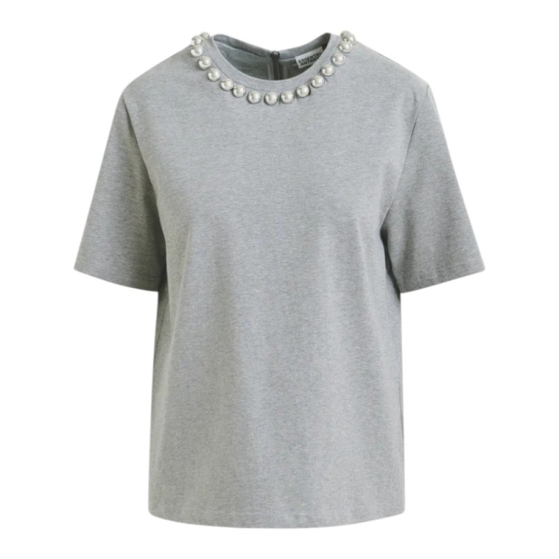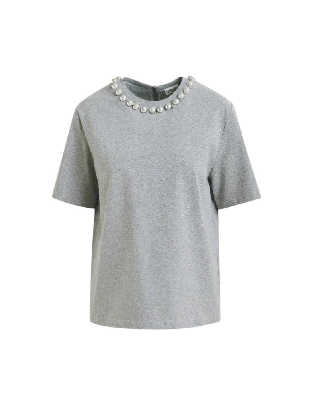 Manches courtes et encolure ronde agrémentée de perles argentées