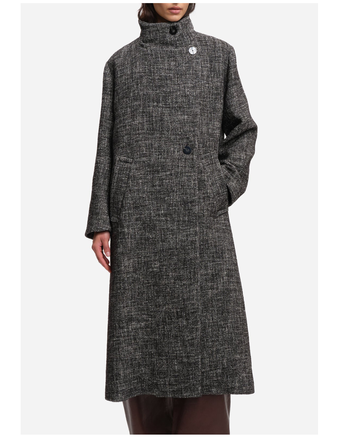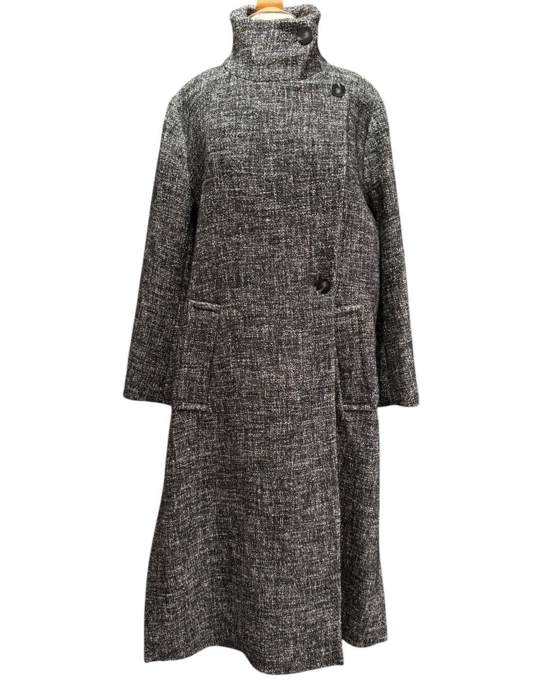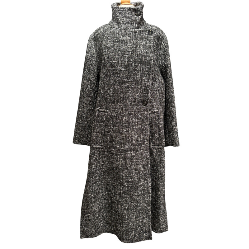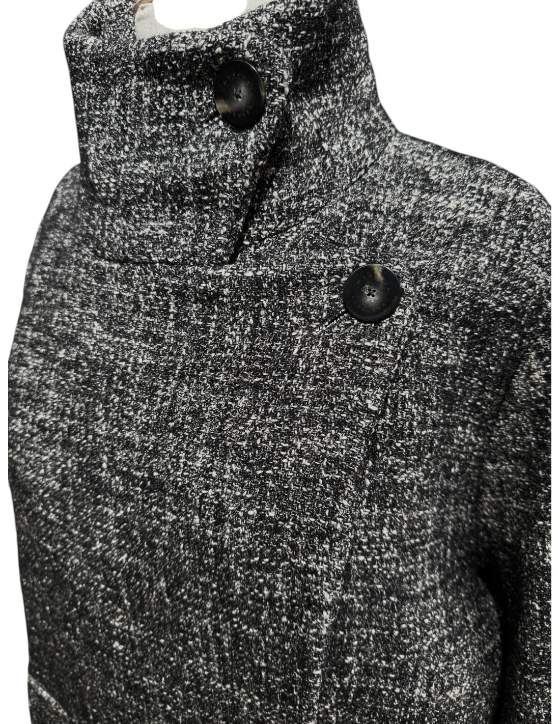 Manteau chiné noir et blanc en laine