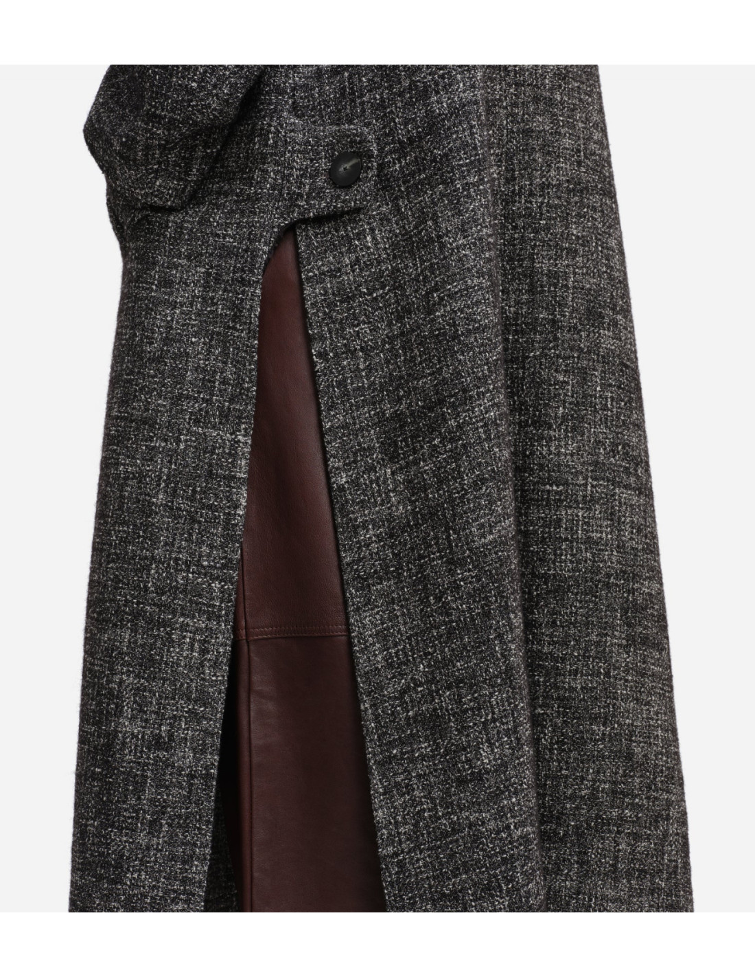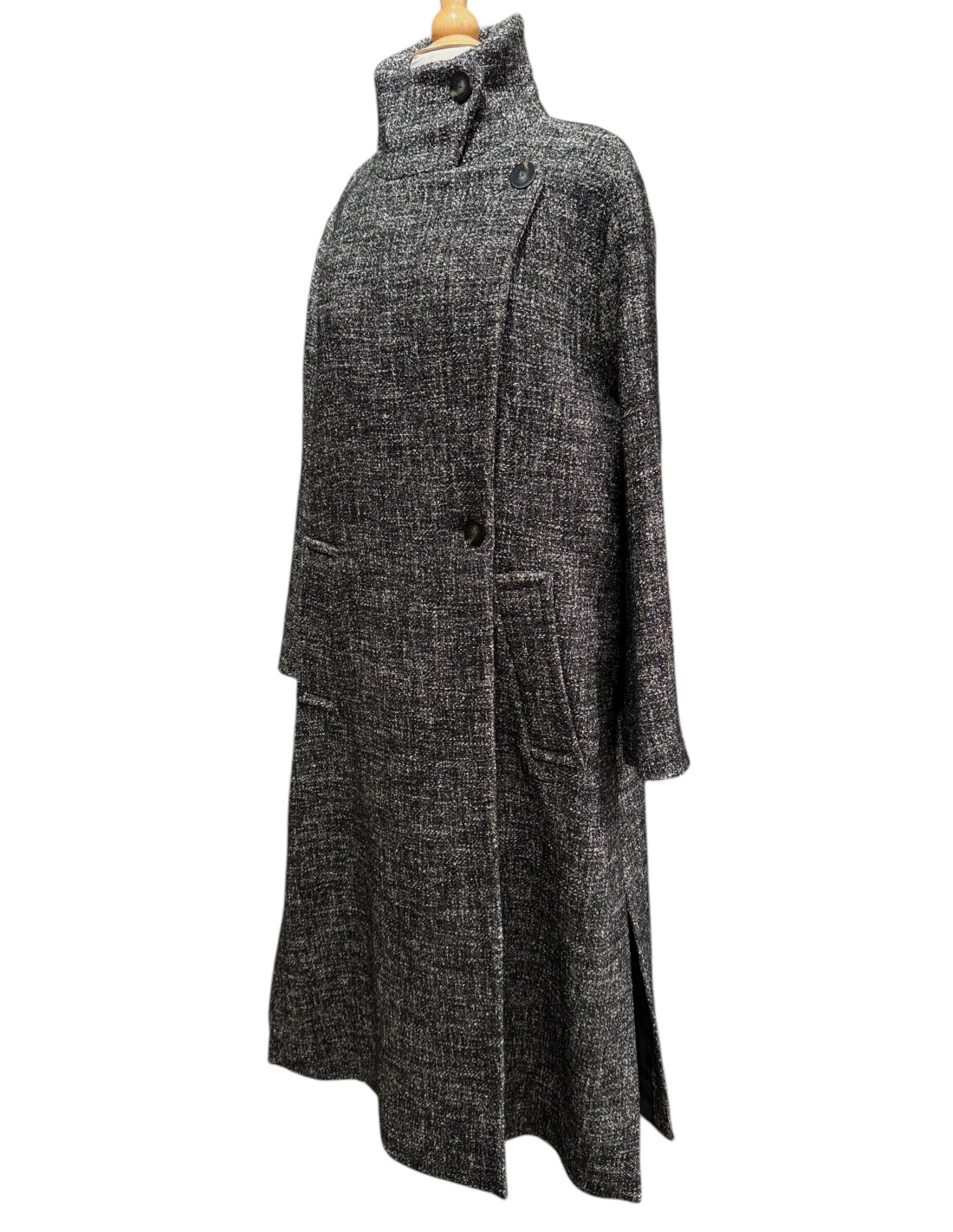 Manteau long chiné noir & gris avec fentes latérales