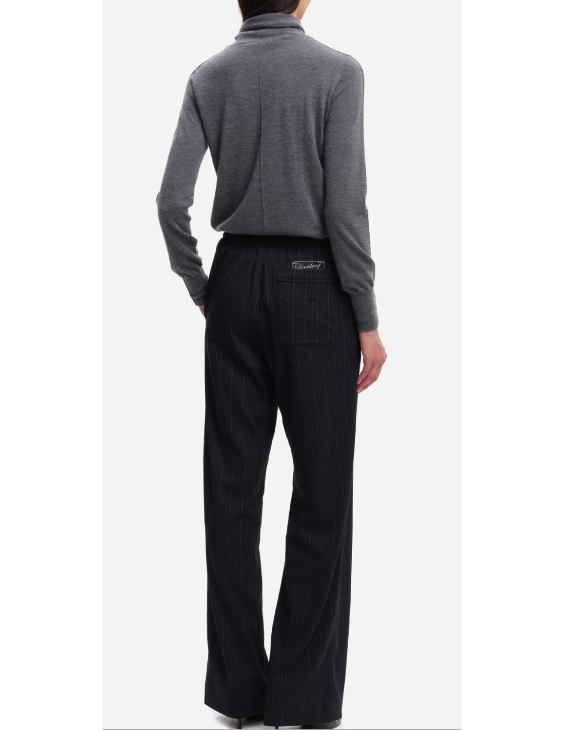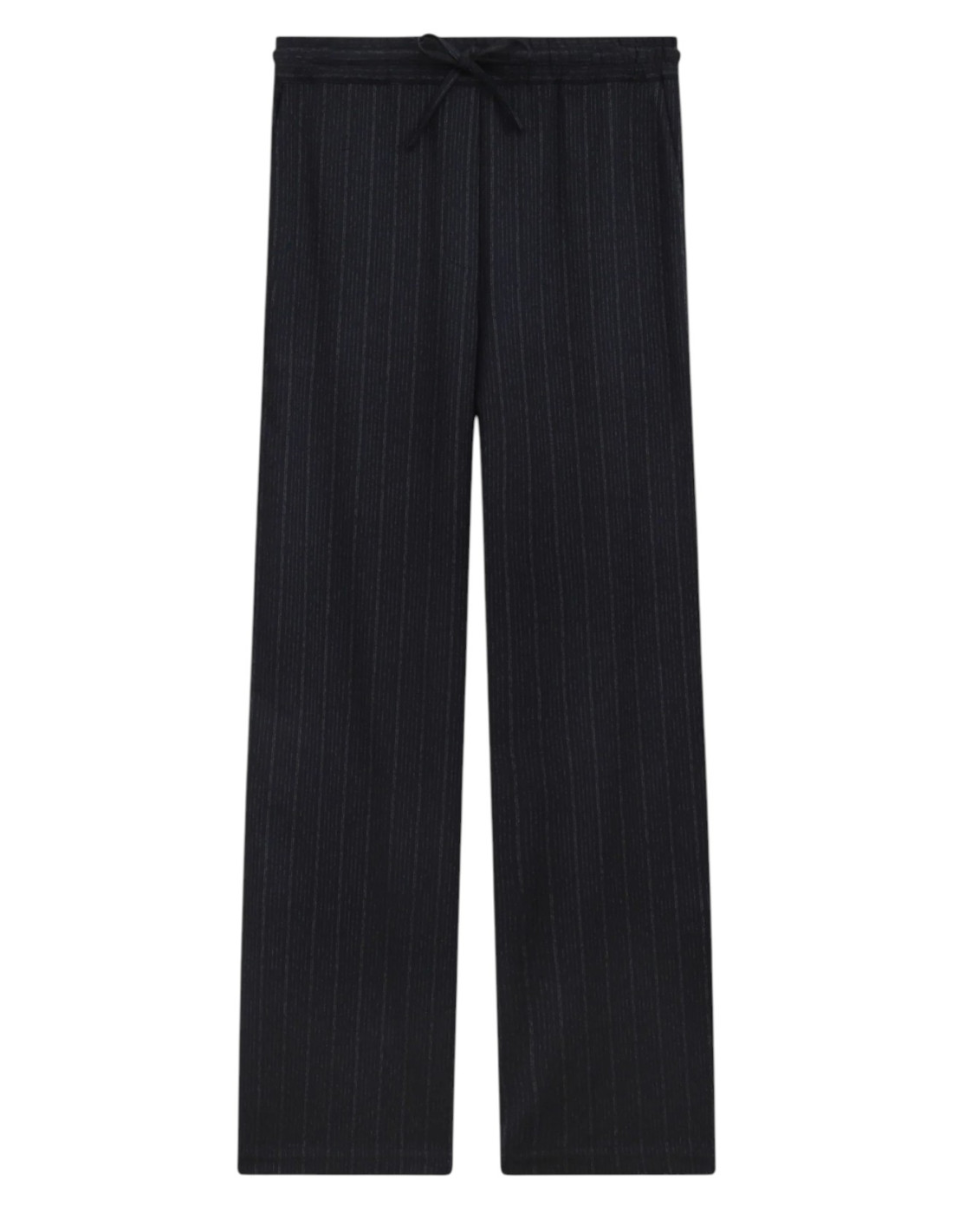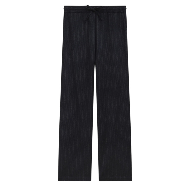 Pantalon bleu marine à rayures fines, taille haute, coupe droite et large