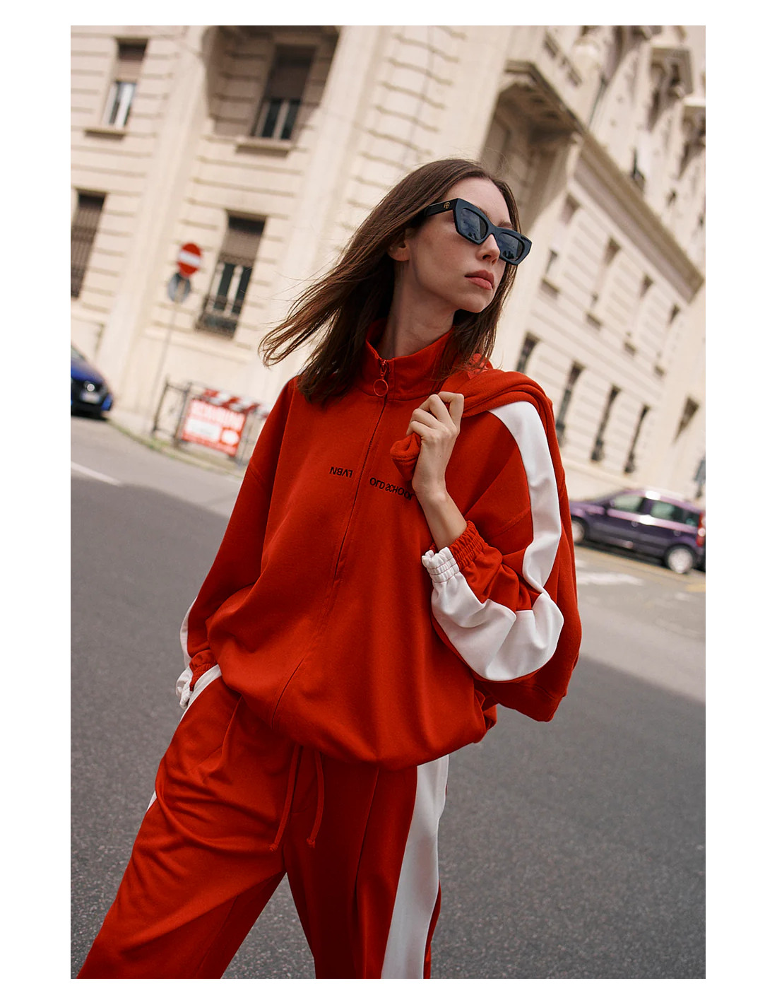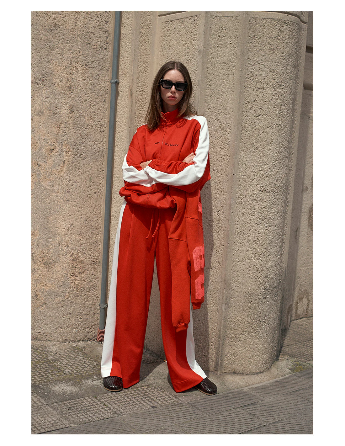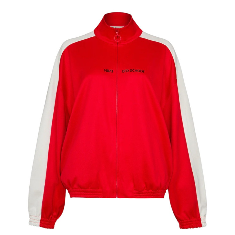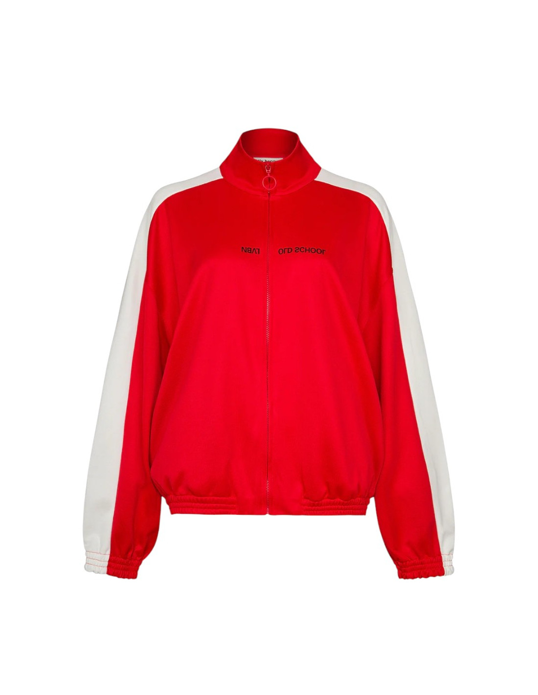 Veste de survêtement en coton mélangé rouge avec bandes blanches sur les manches