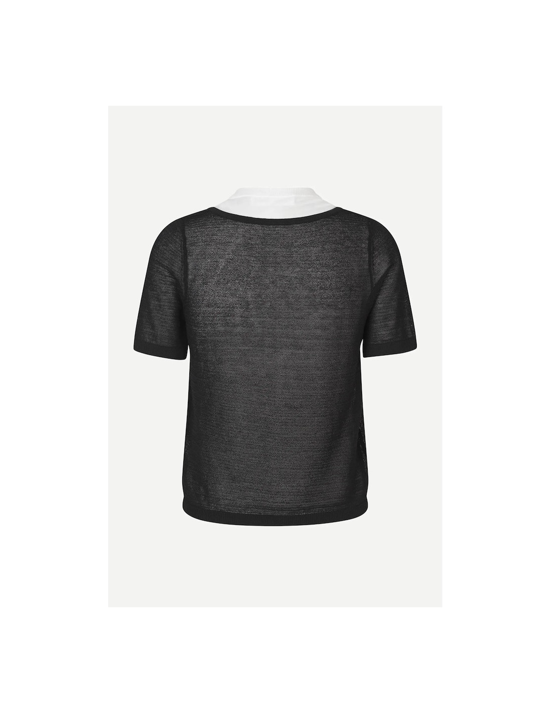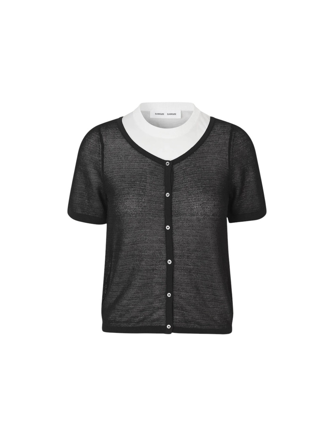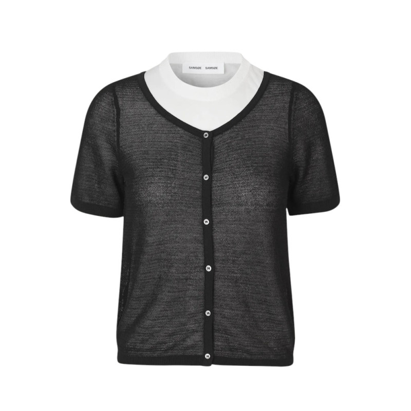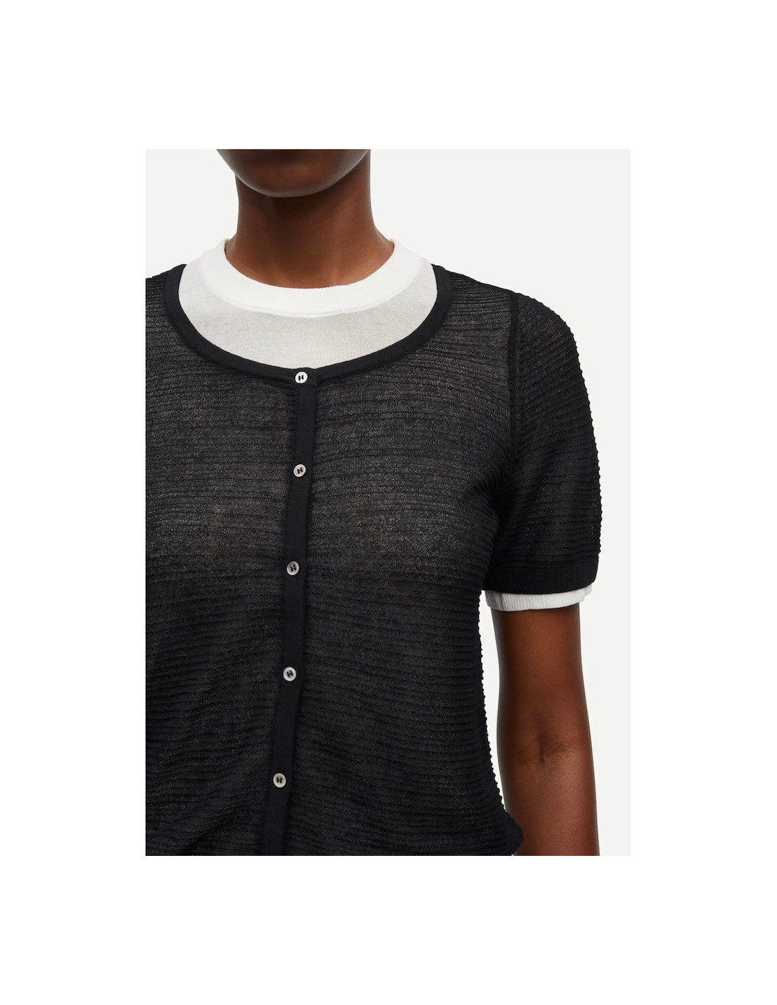 Cardigan semi-transparent à manches courtes et t-shirt à manches courtes et coupe cintrée.