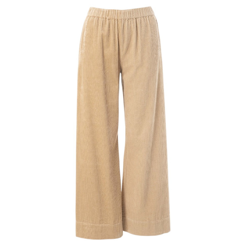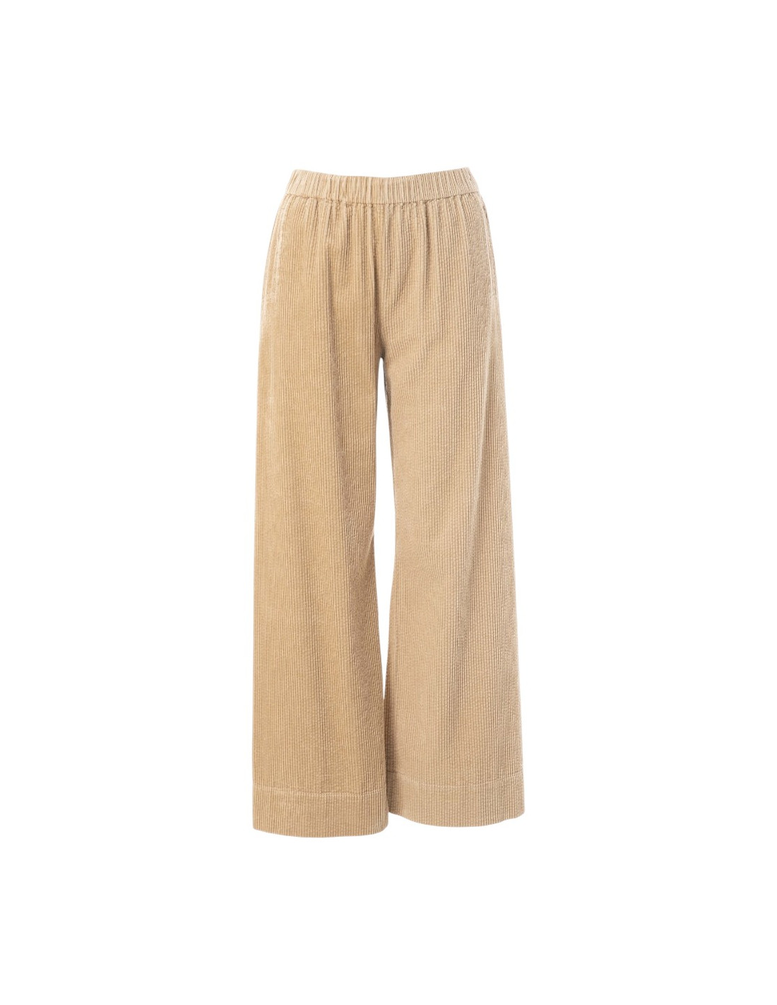 Pantalon coupe large, jambe évasée et effet velours côtélé