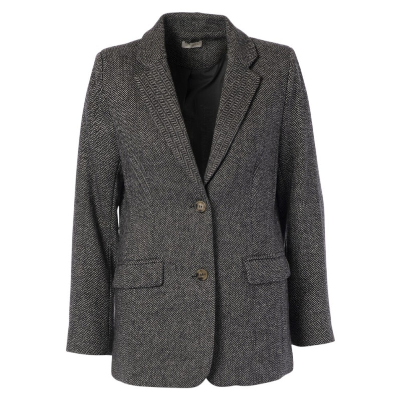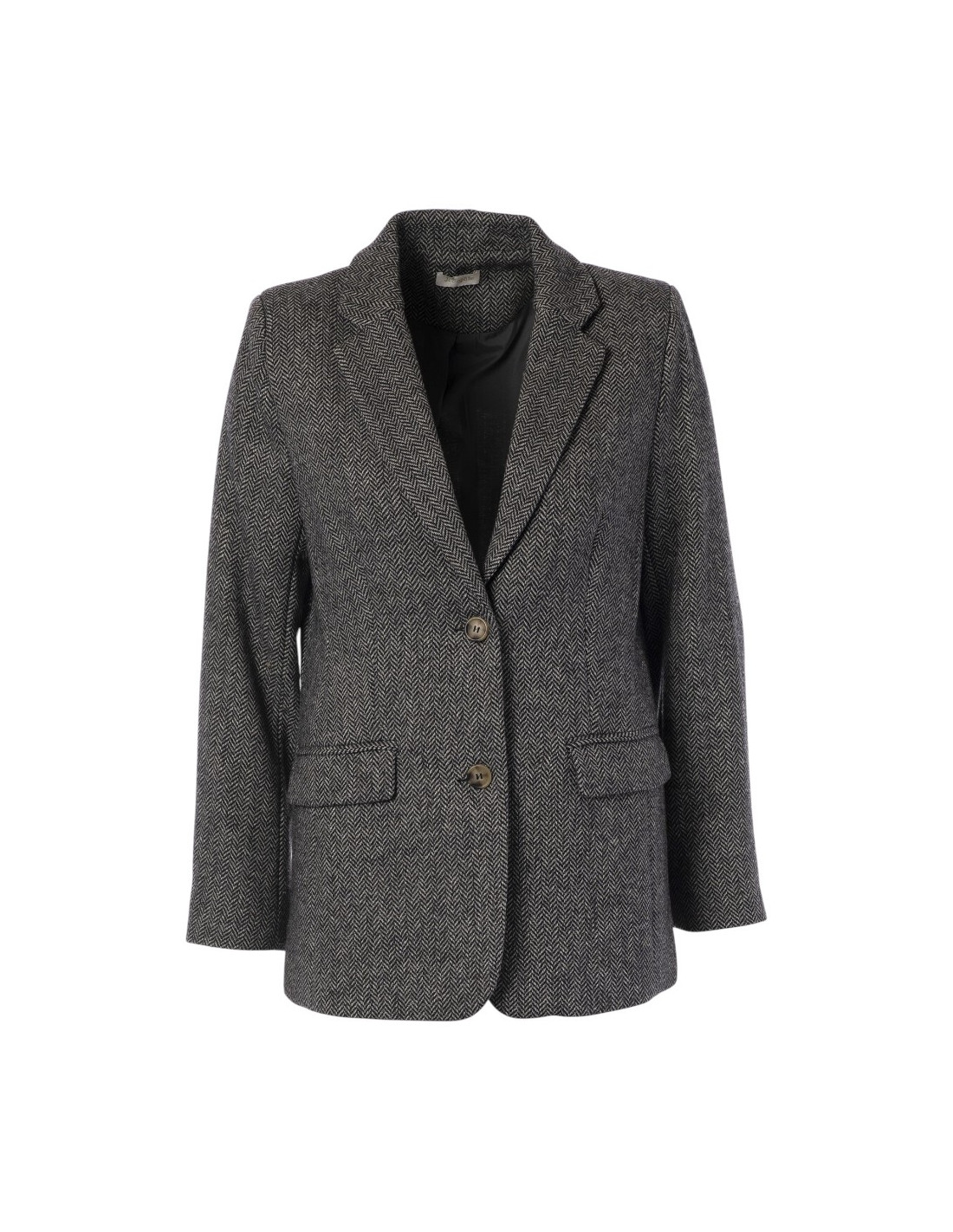 Blazer en laine mélangée confectionné en tissu à chevrons gris foncé